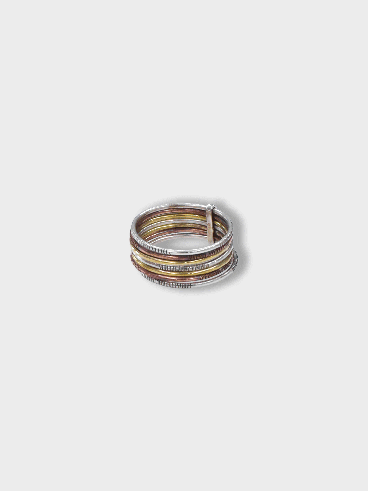 本来のトゥアレグ族が使用しているリングは7つがバラバラになりますが、こちらはつけやすさを重視して一つに纏めたデザインとなっています。