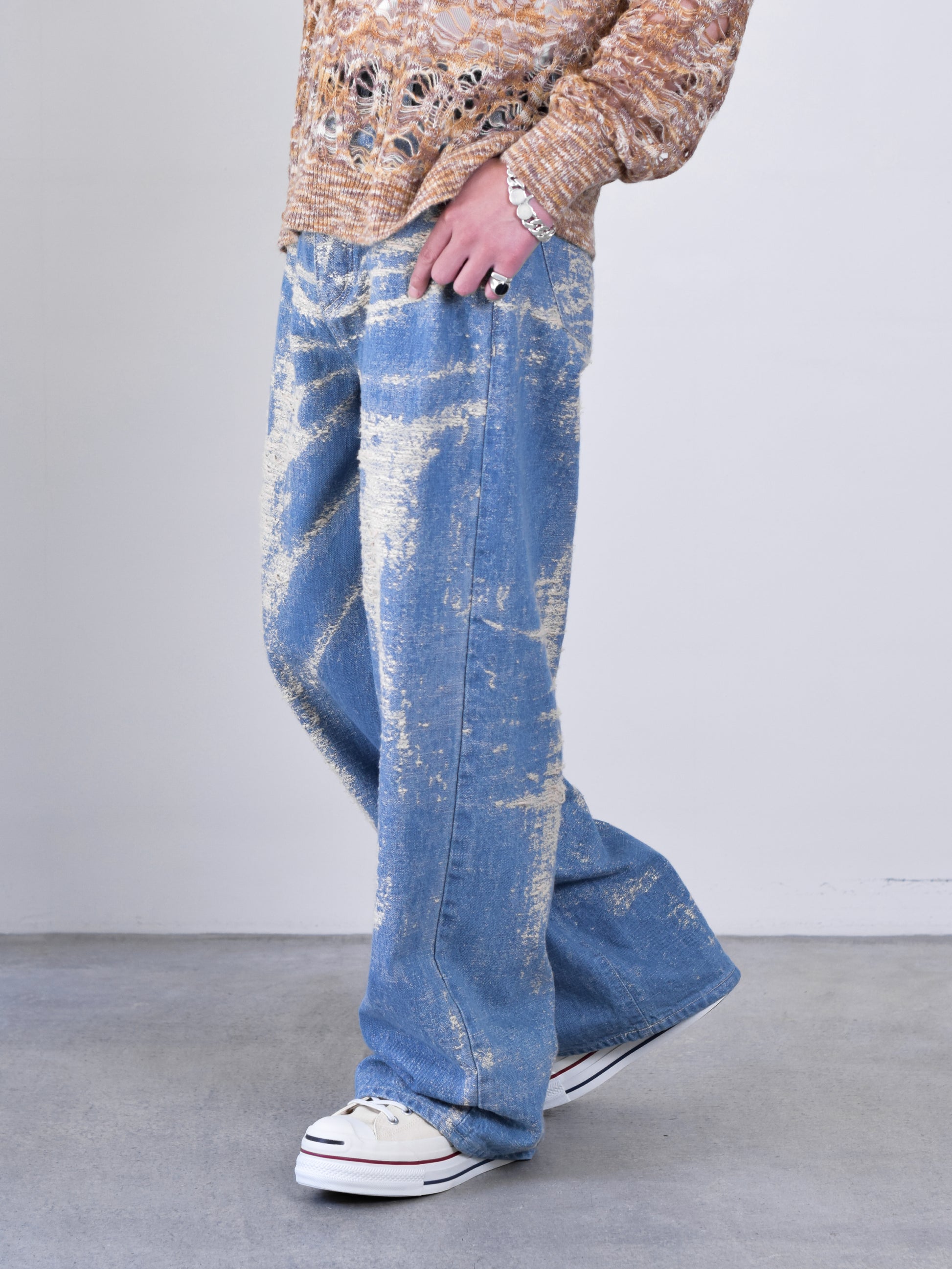 TAAKK / WIDE DENIM PANTS (INDIGO BLEACH)