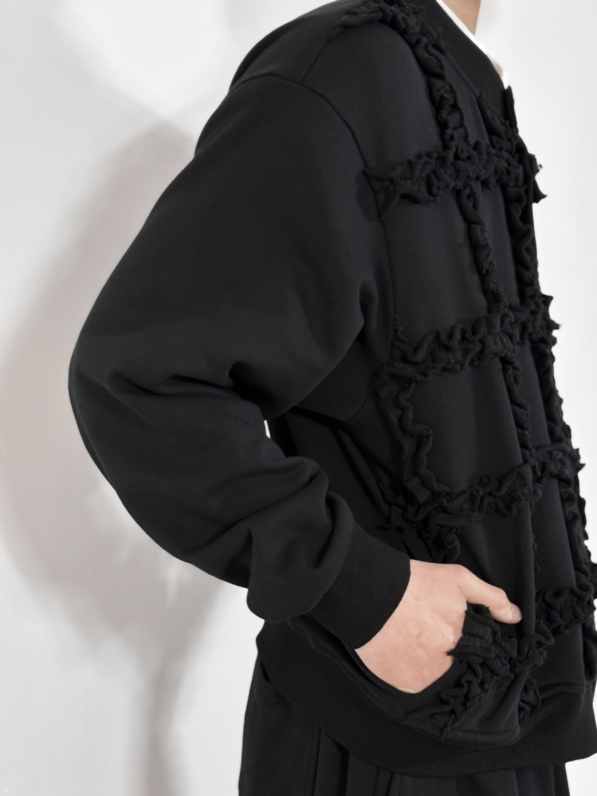 VIVIANO / RUFFLE JERSEY CARDIGAN (BLACK)