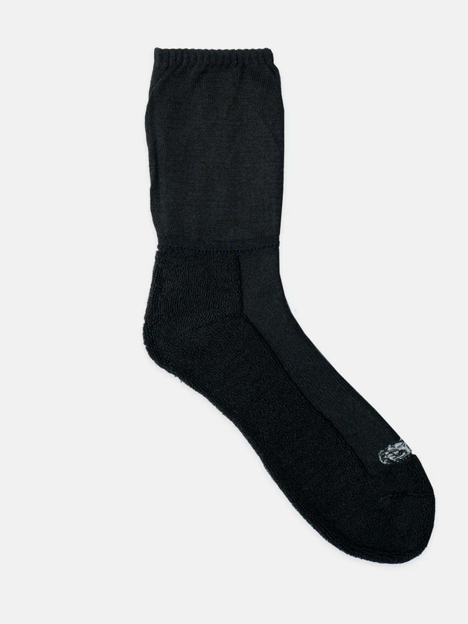 裏側はガーゼ素材を使用し肌に優しく、つま先・足底・踵はタオル生地(パイル仕様)でクッション性があり、フカフカの履き心地です。