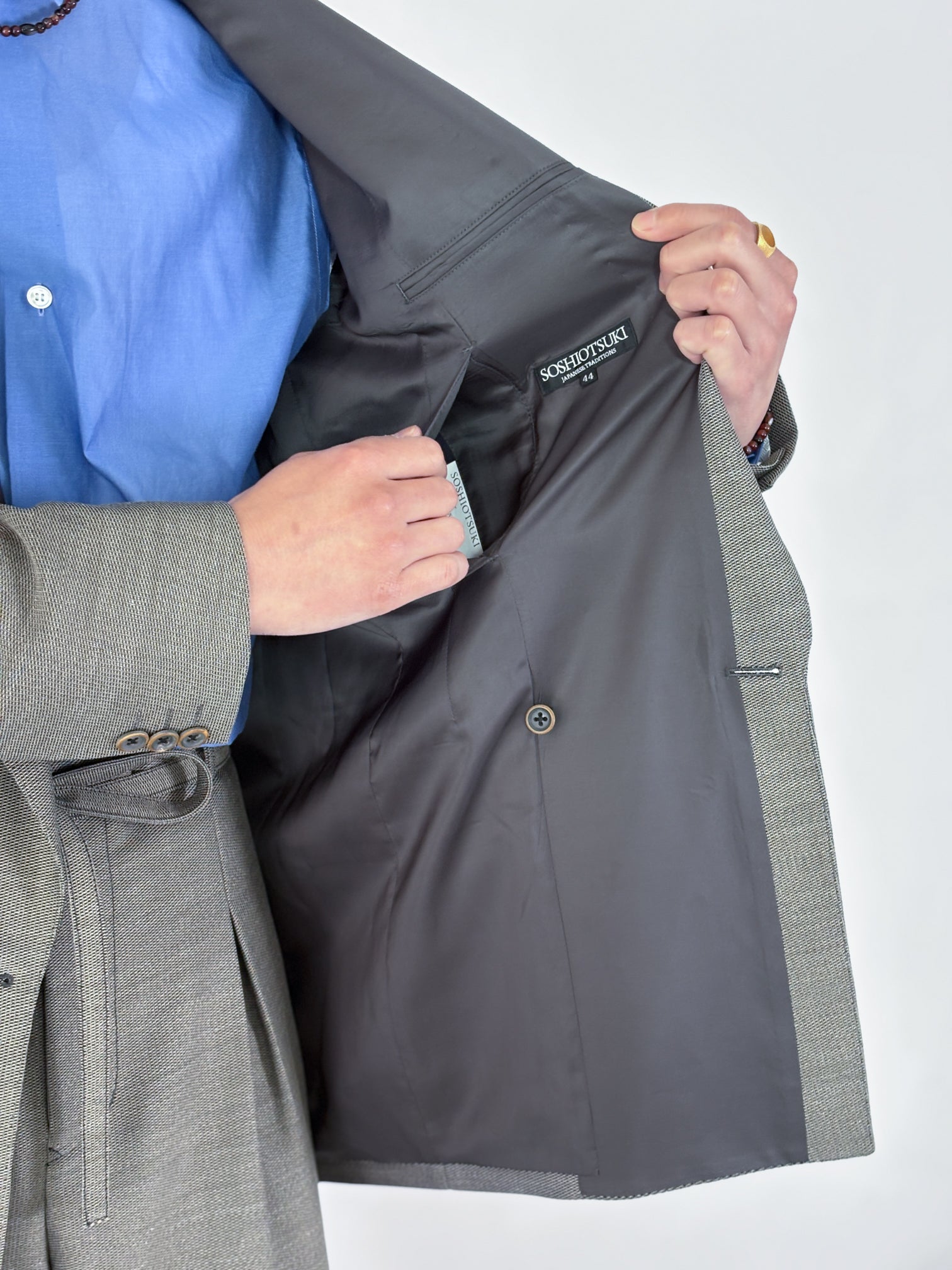 【4月25日(土)12:00販売開始】SOSHIOTSUKI / INSIDE LAPEL JACKET (GREY)