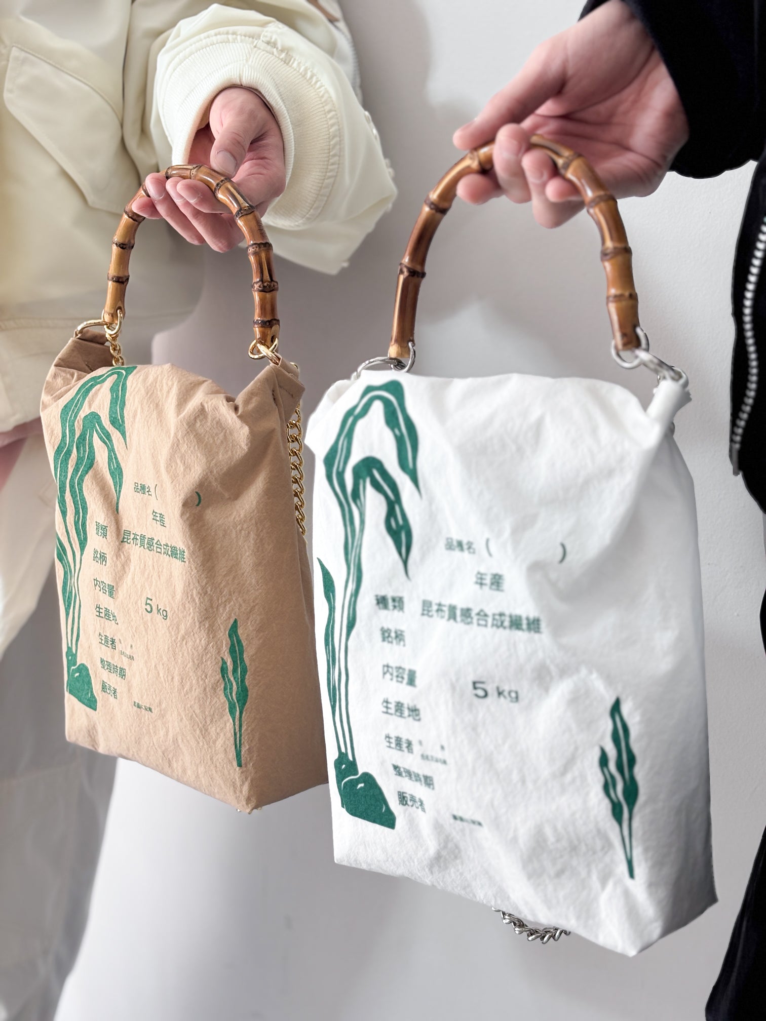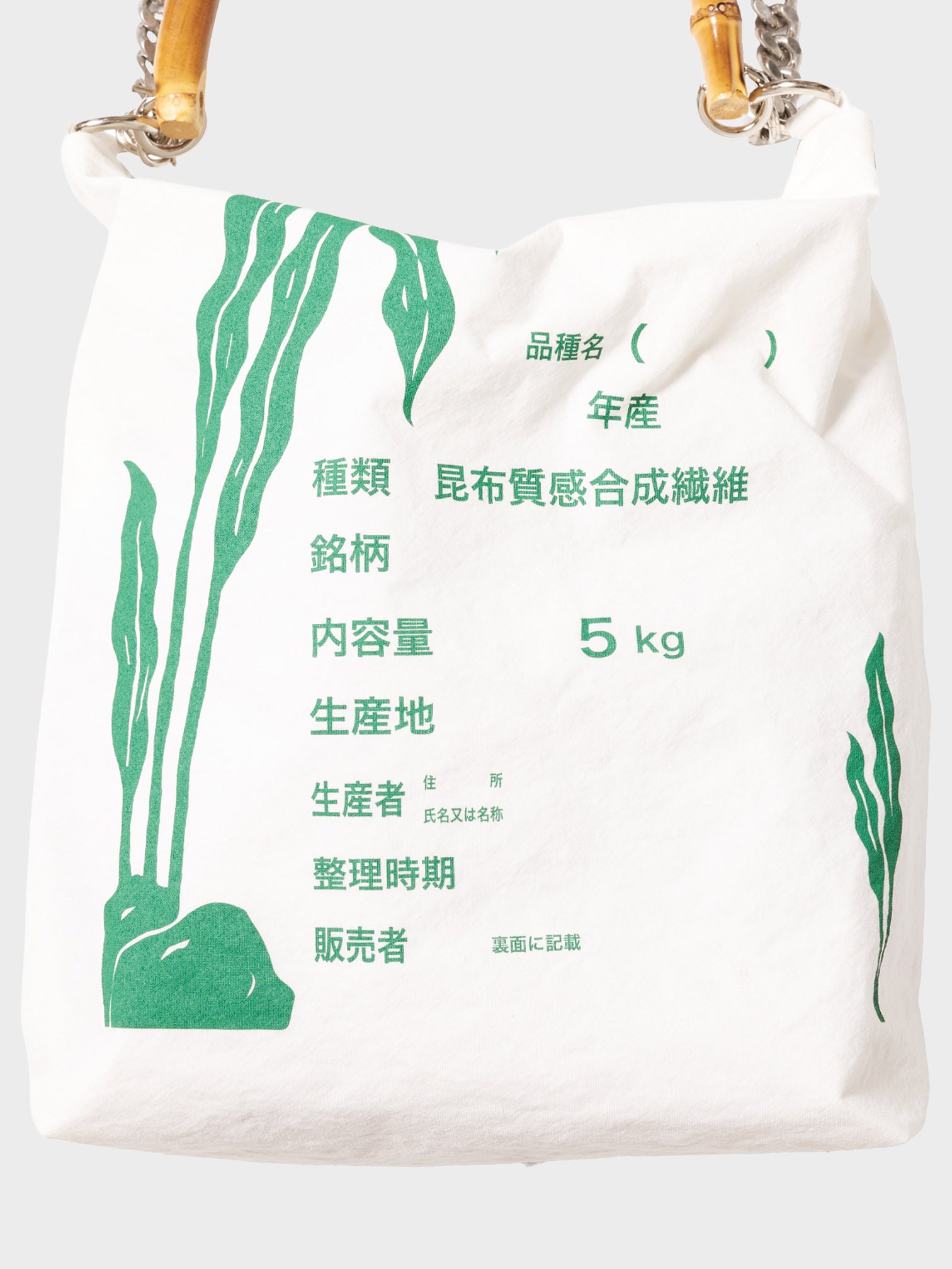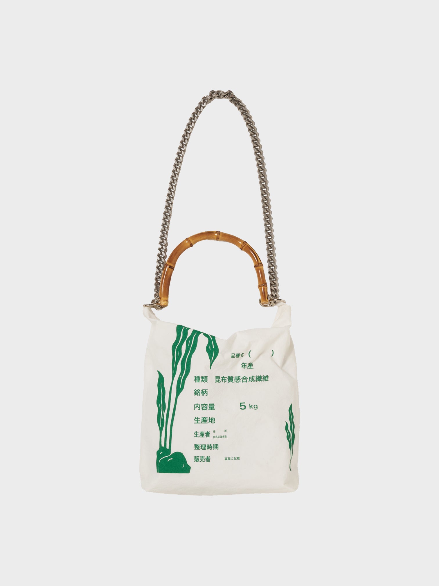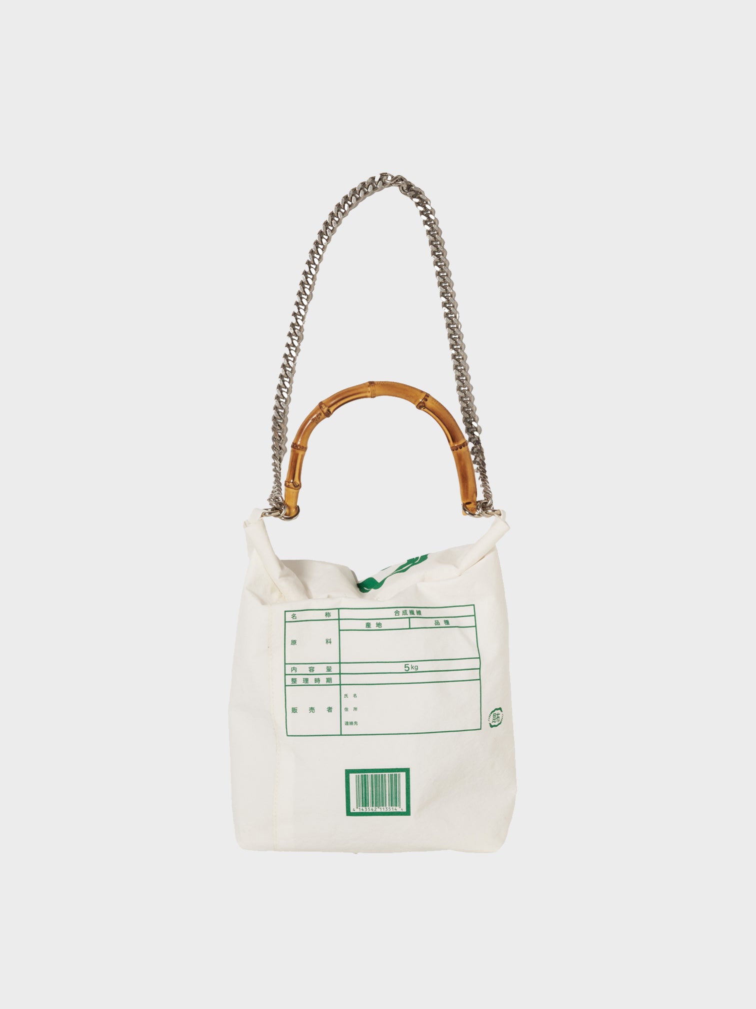 A BAG DESIGNED TO RESEMBLE A RICE SACK, TRANSLATED DIRECTLY INTO A WEARABLE FORM. THE PRACTICAL, UNADORNED SHAPE IS PAIRED WITH A BAMBOO HANDLE THAT EVOKES ICONIC LUXURY BAGS, CREATING A BALANCE BETWEEN MODESTY AND ELEGANCE. LIGHTWEIGHT AND EASY TO CARRY, IT COMBINES EVERYDAY FUNCTION WITH A DISTINCT PRESENCE.