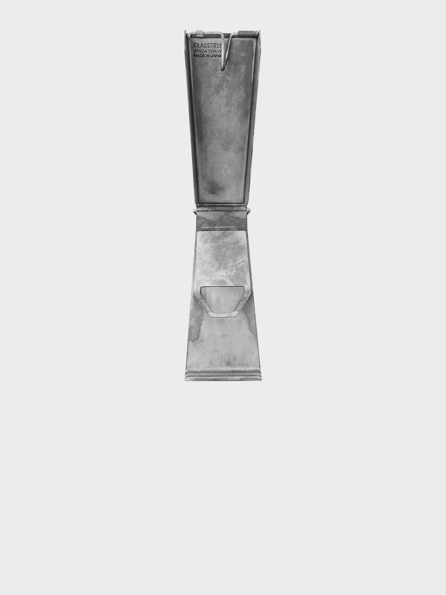 CLAUSTRUM is an innovative metal product from founder and designer Kenshi Endo, who has a workshop in Ginza. CLAUSTRUM is equipped with one-of-a-kind functions, such as smart one-handed operation and a series of movements. The functionality of the product is explored not only from the physical aspect, but also from the aesthetic, intellectual, social, and economic aspects, and prototypes, experiments, and trials are repeated over and over until the result is realized in the simplest possible manner. Through the accumulation of this experience, we create new mechanisms, construction methods, and surface finishes that cannot be found anywhere else.