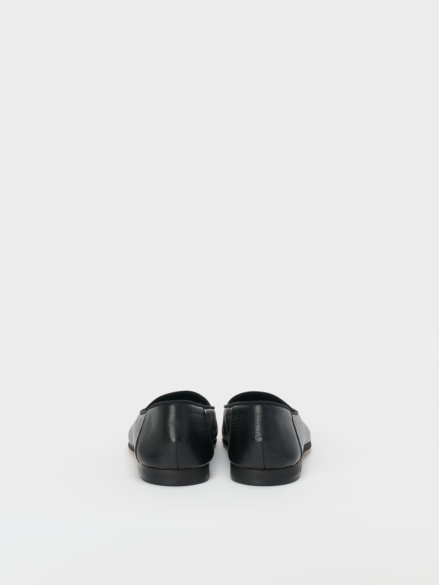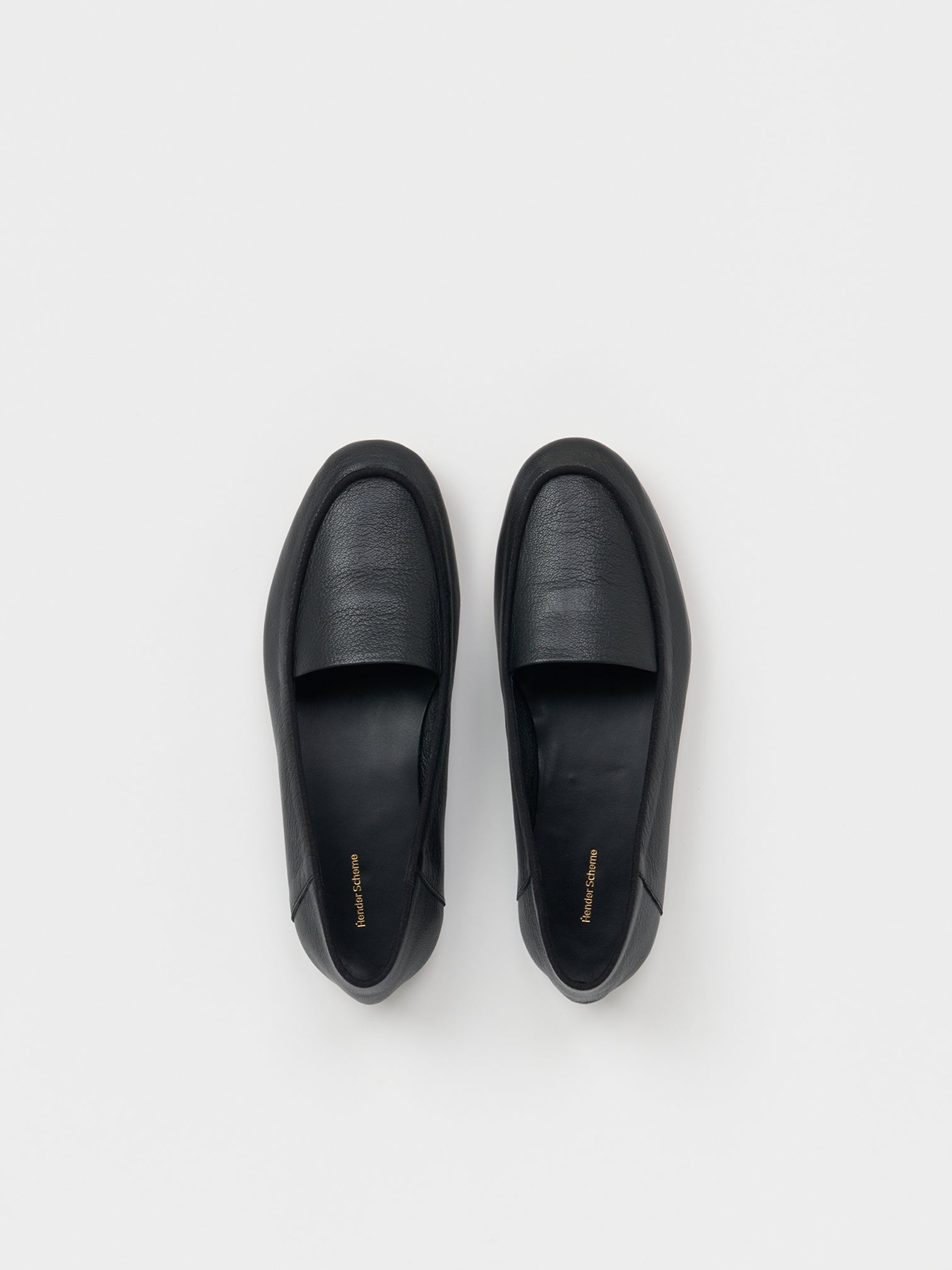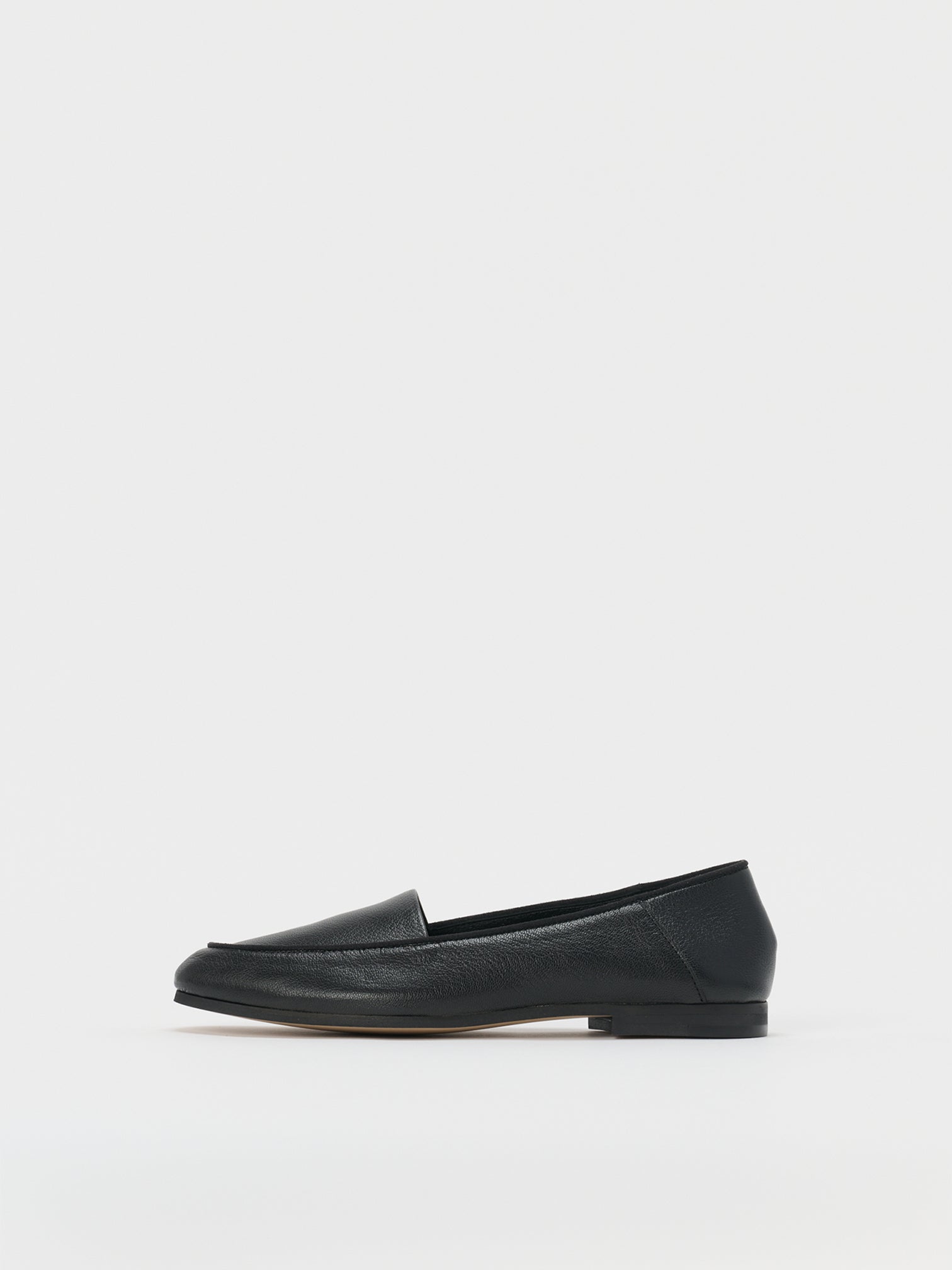 モカパーツは袋仕立てとし、できる限りステッチを見せない構造にすることで、上品で滑らかな印象に仕上げました。また、モカラインとトップラインを同一線上に揃えることで、ミニマルながらも造形的な美しさを際立たせています。