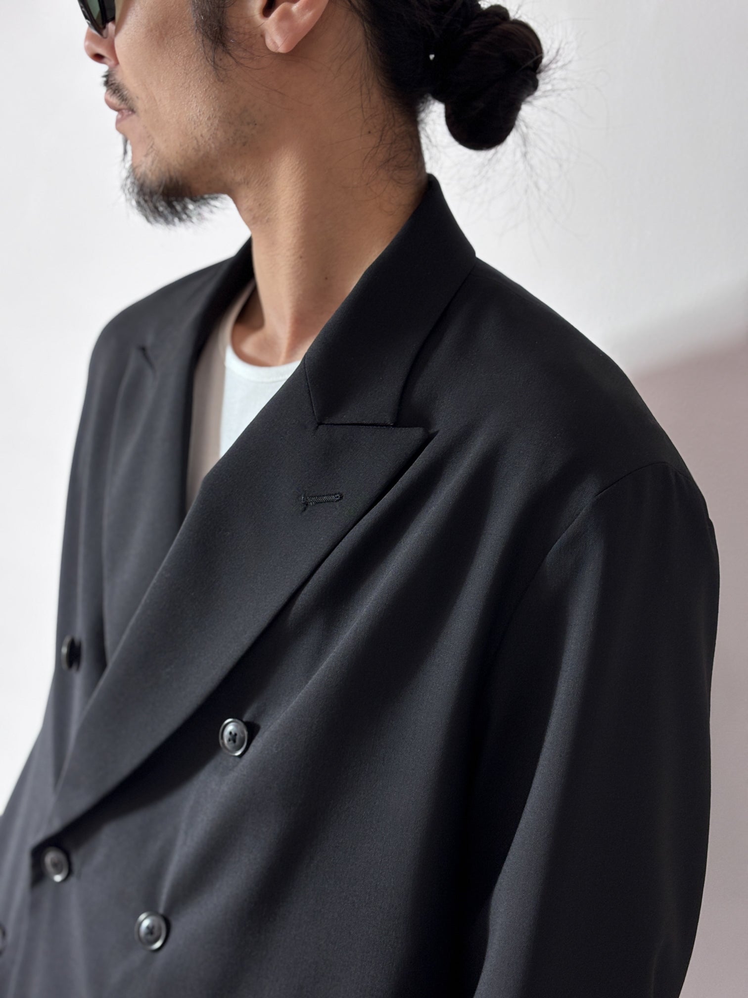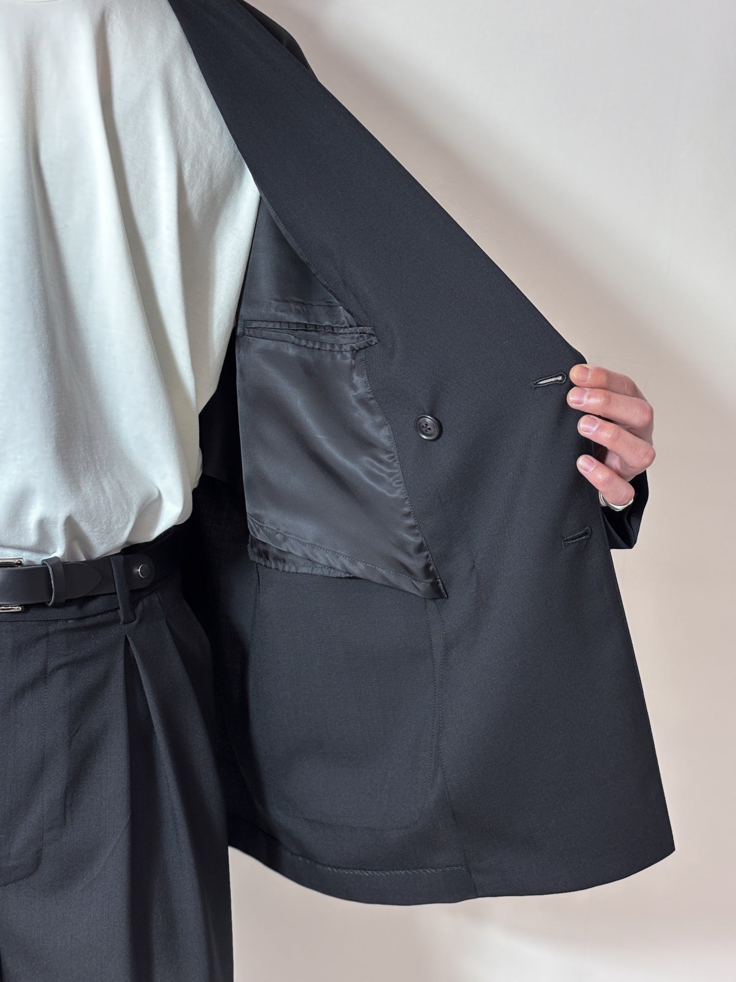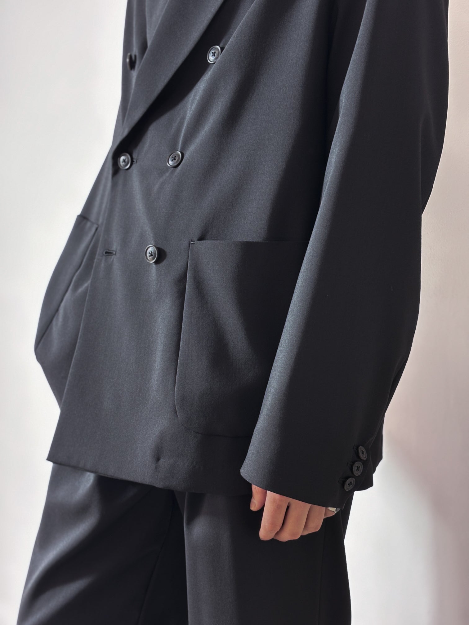 This double-breasted jacket is a set-up that URU is known for.