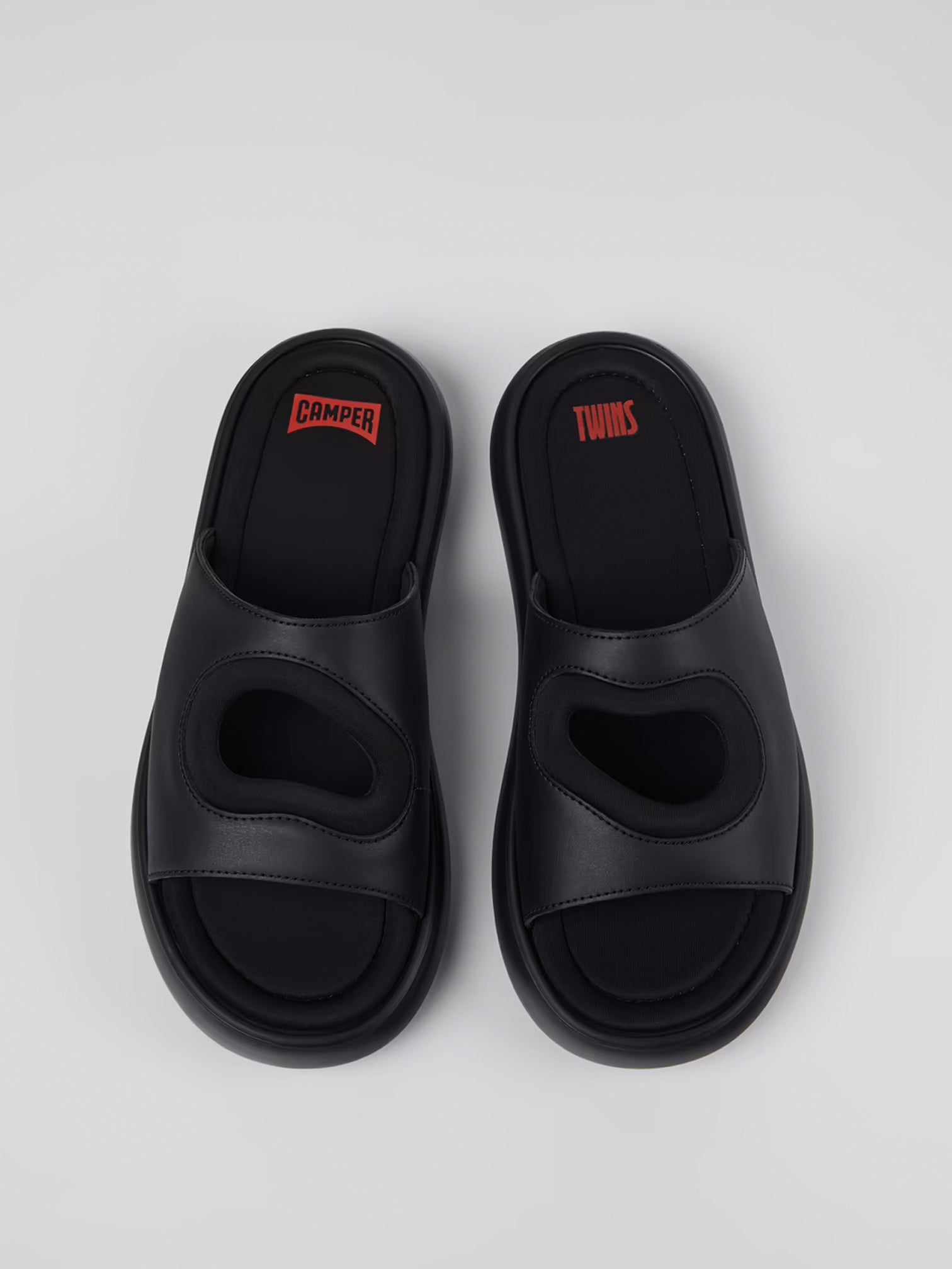 The "TWINS" series, created in 1988, is based on the concept that "the right foot and the left foot each have their own individuality, but together they make a perfect pair" and Camper continues to challenge innovative design. The series is a unique design that appears season after season.