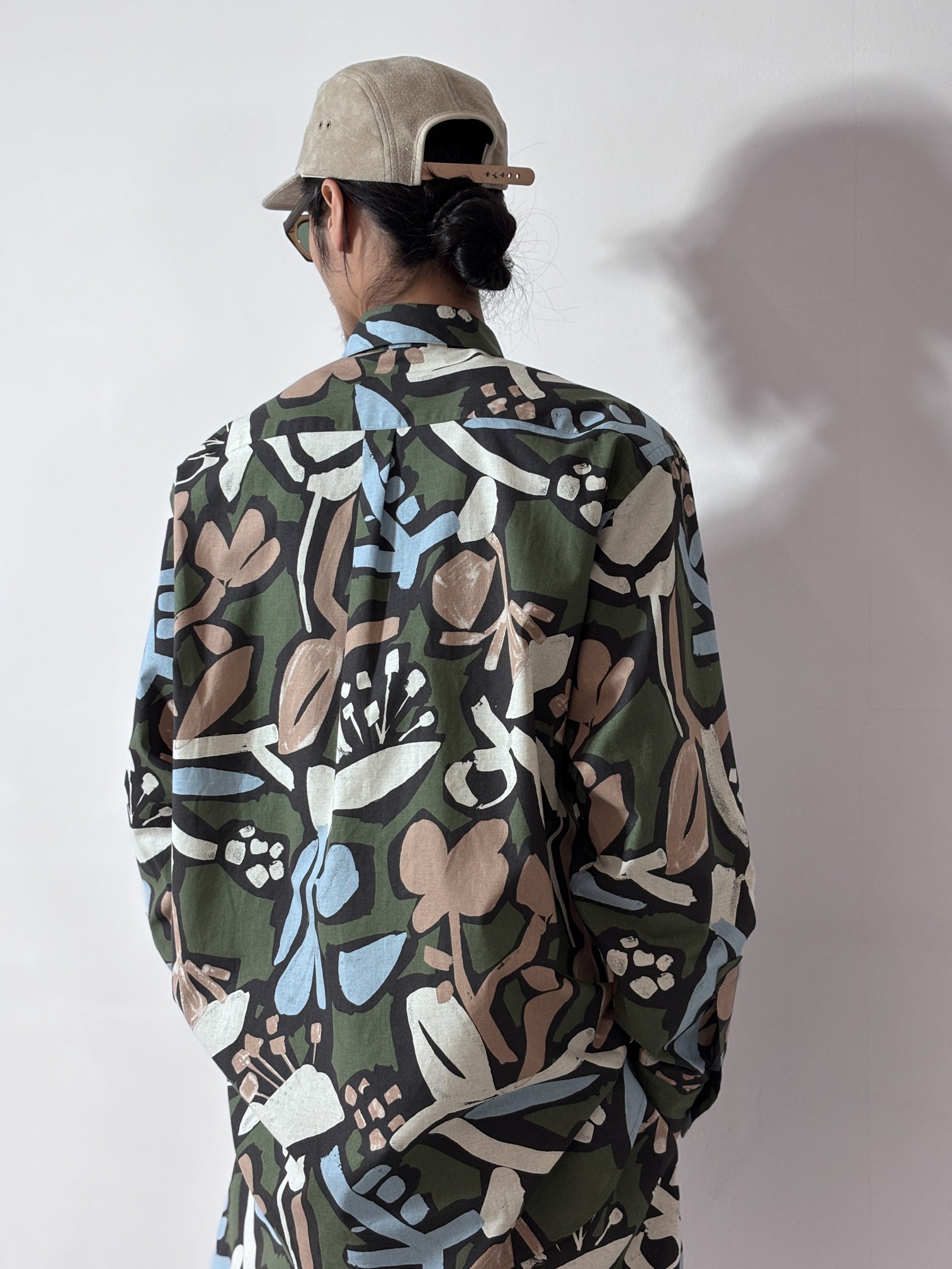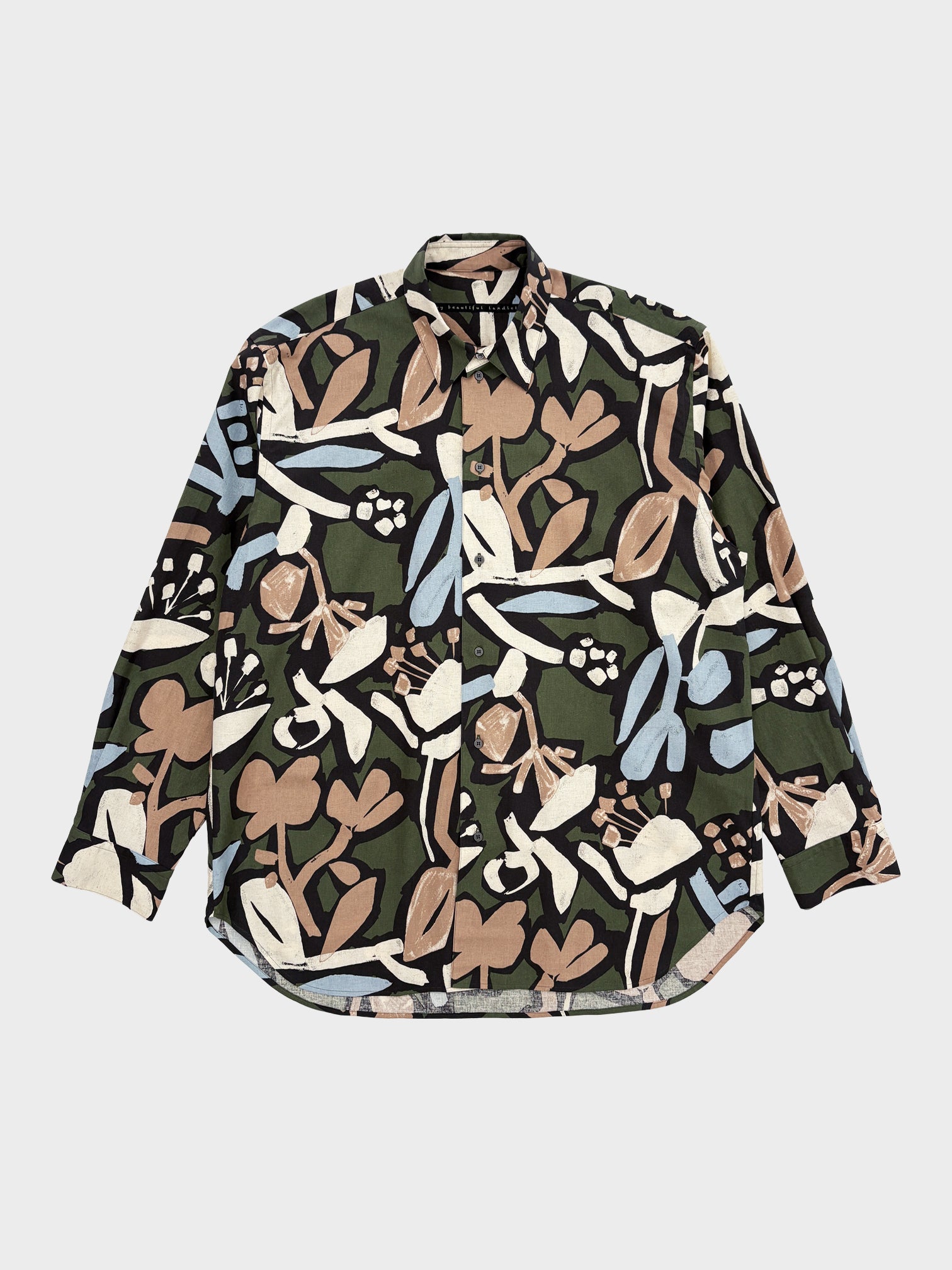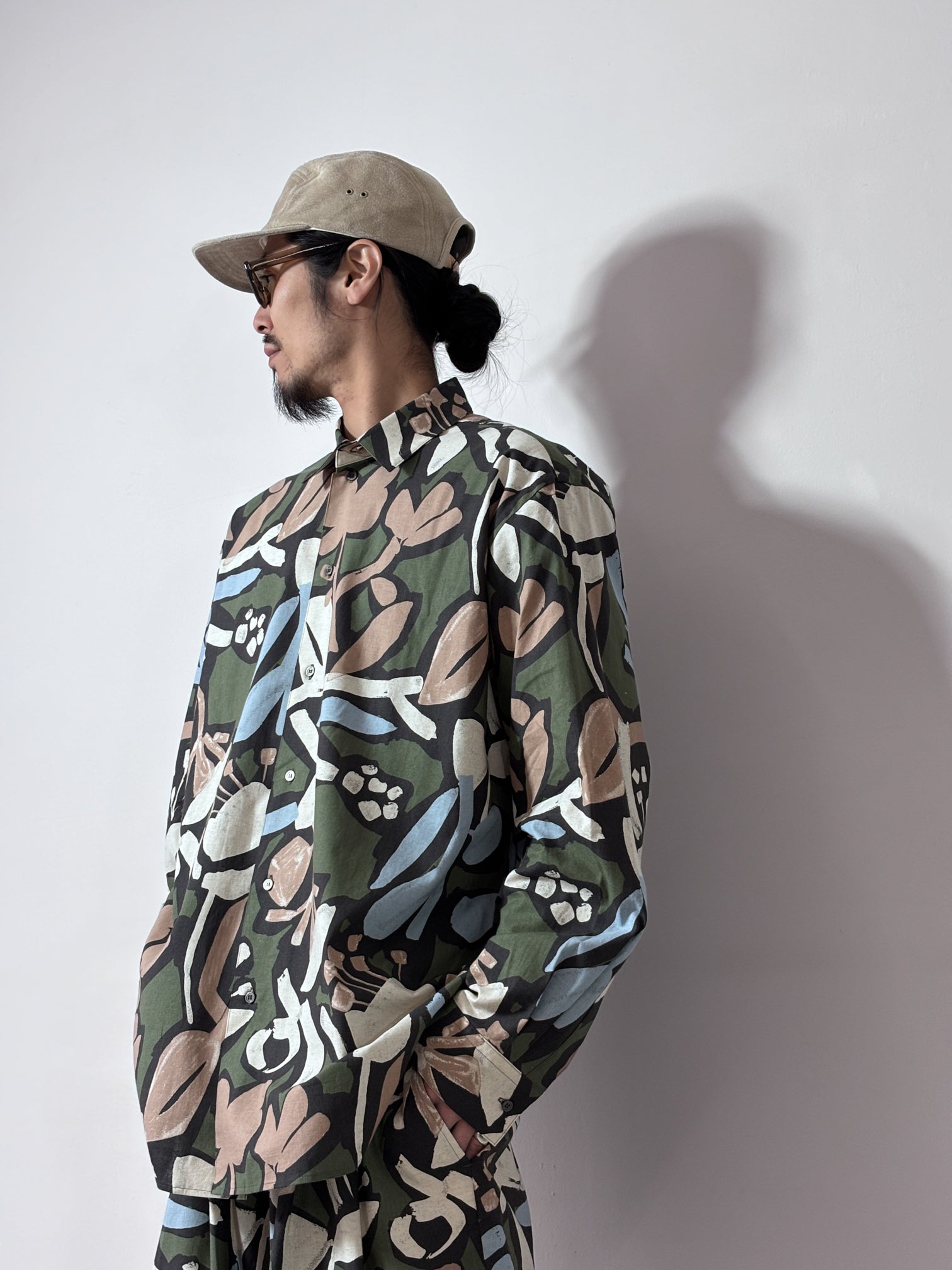 my beautiful landlet / FLORAL PIGMENT PRINT OVERSIZE SHIRT (GREEN)