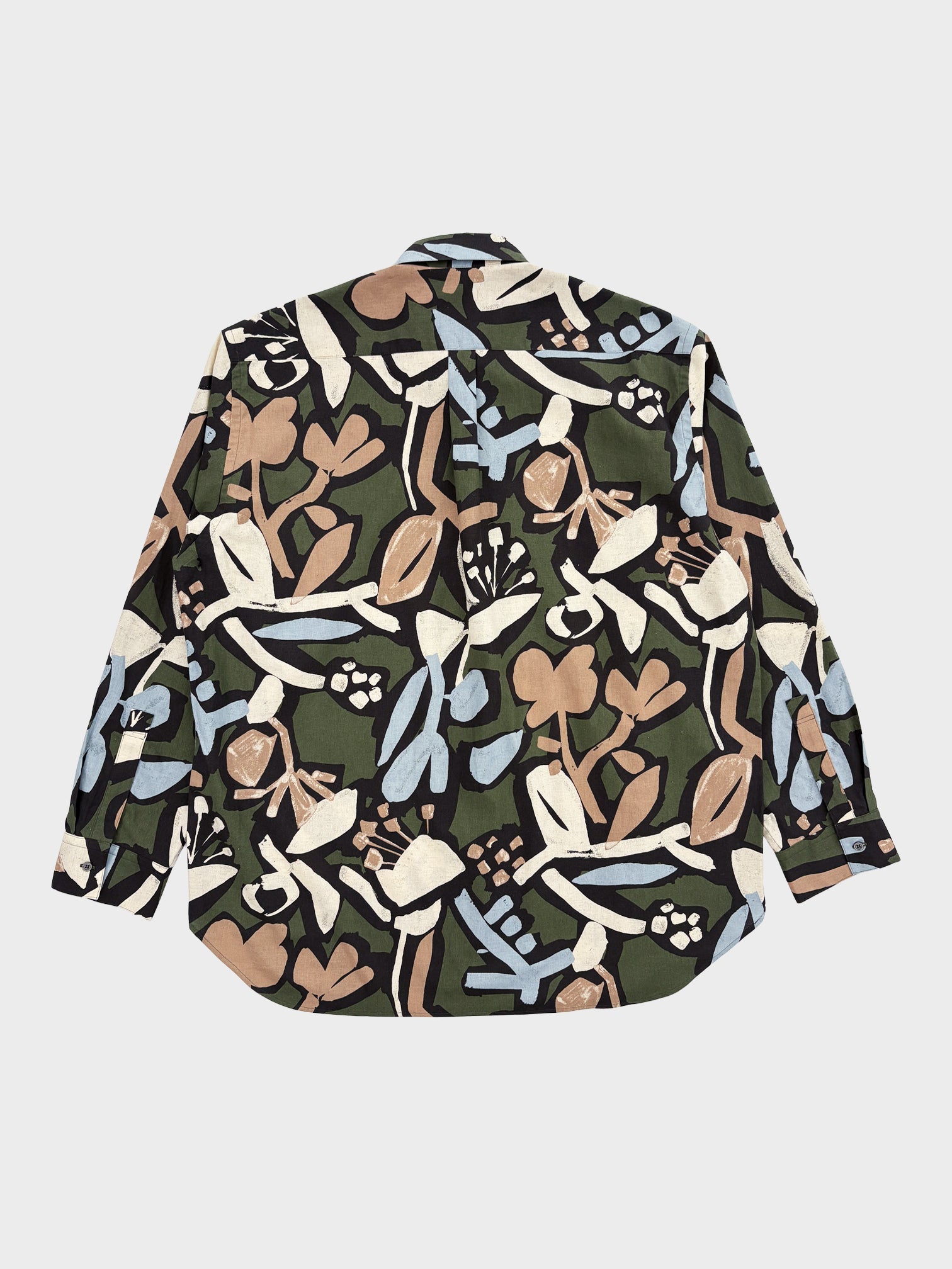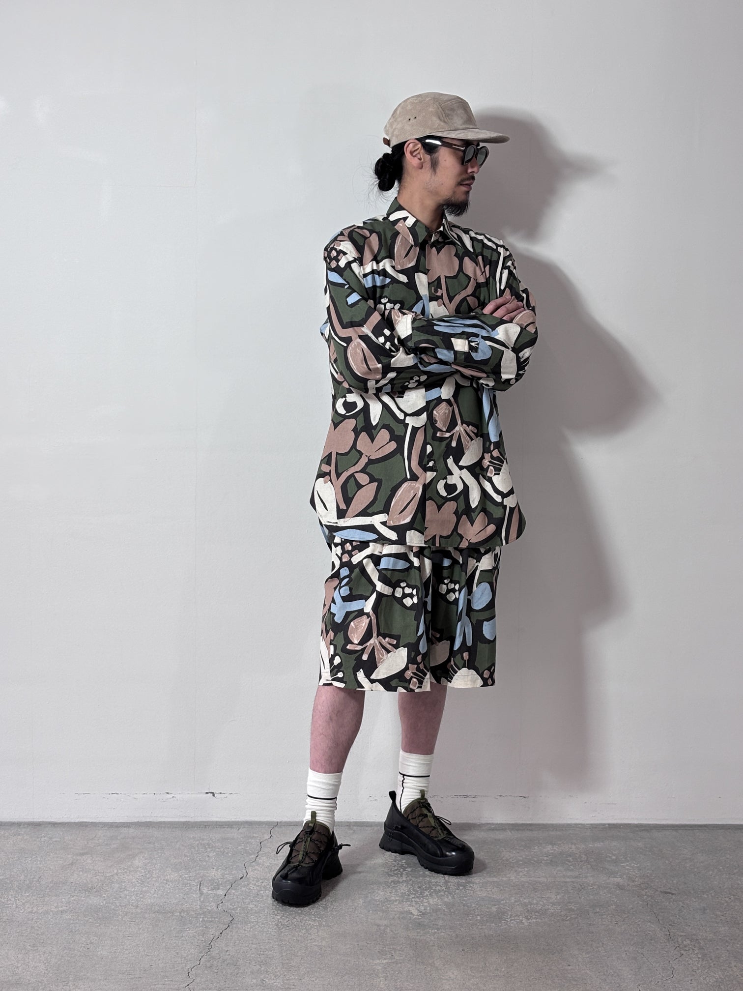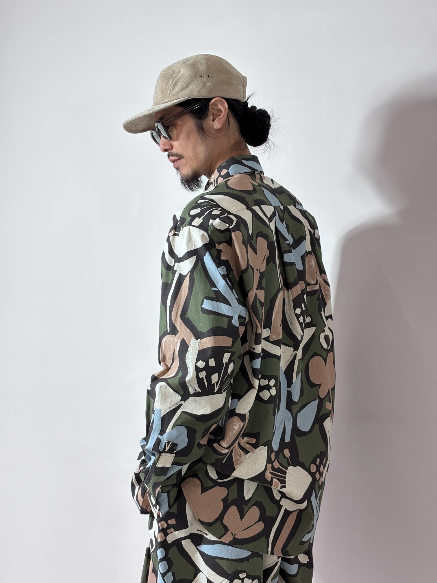 my beautiful landlet / FLORAL PIGMENT PRINT OVERSIZE SHIRT (GREEN)