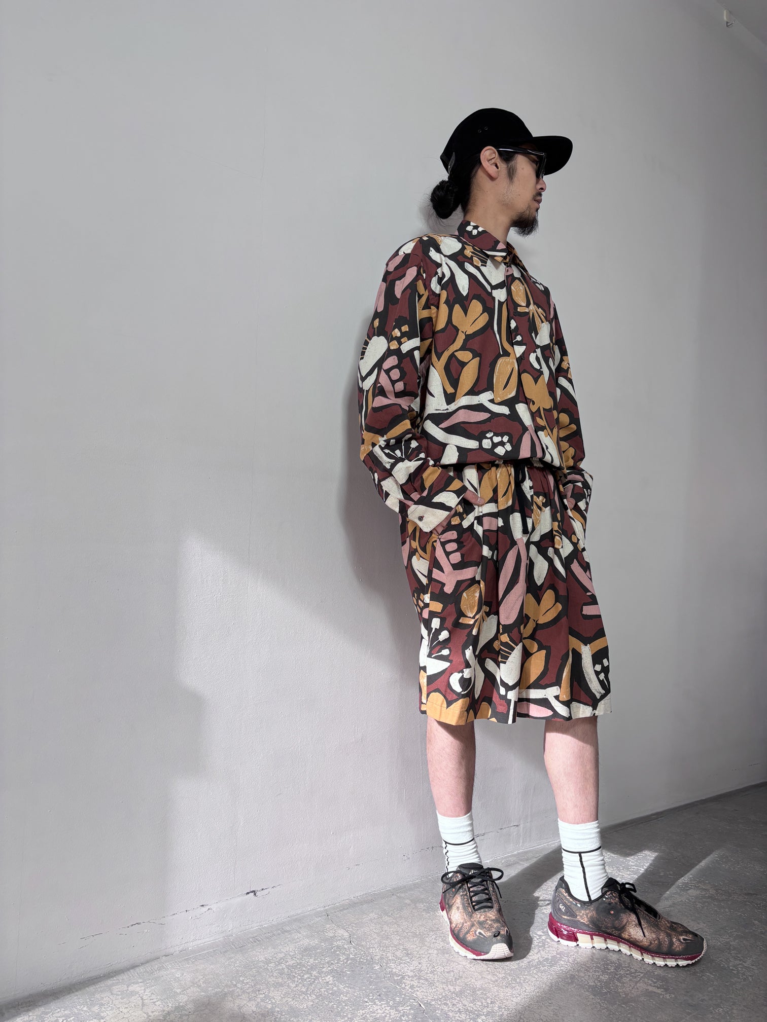 FLORAL PIGMENT PRINT WIDE SHORT PANTS