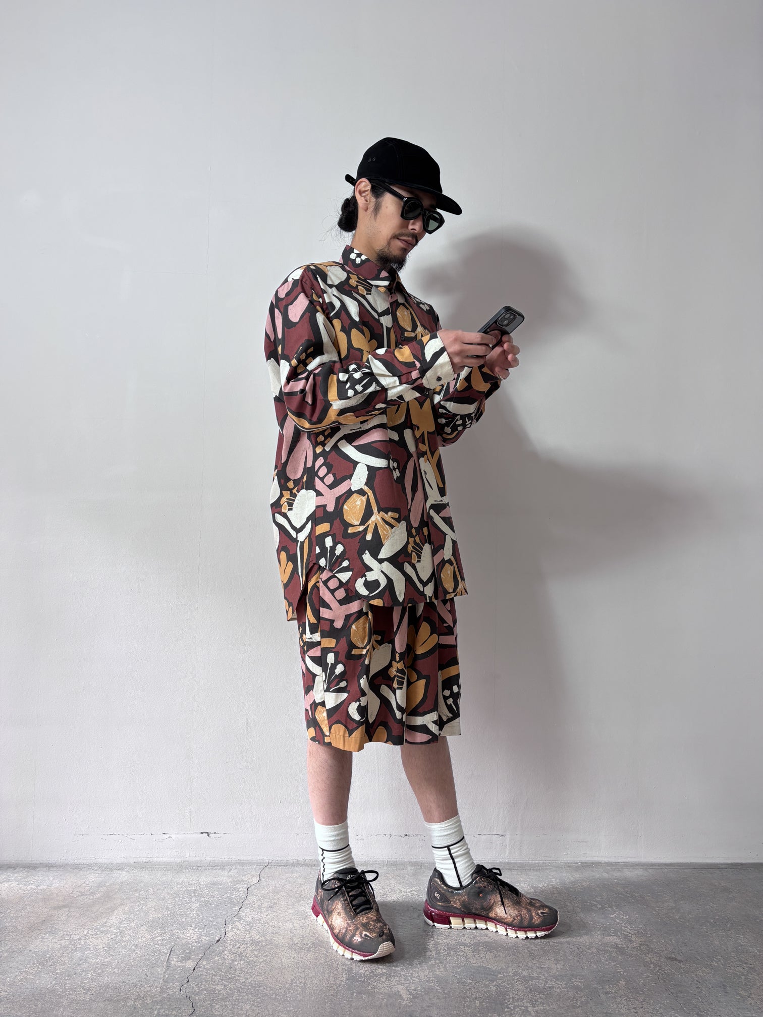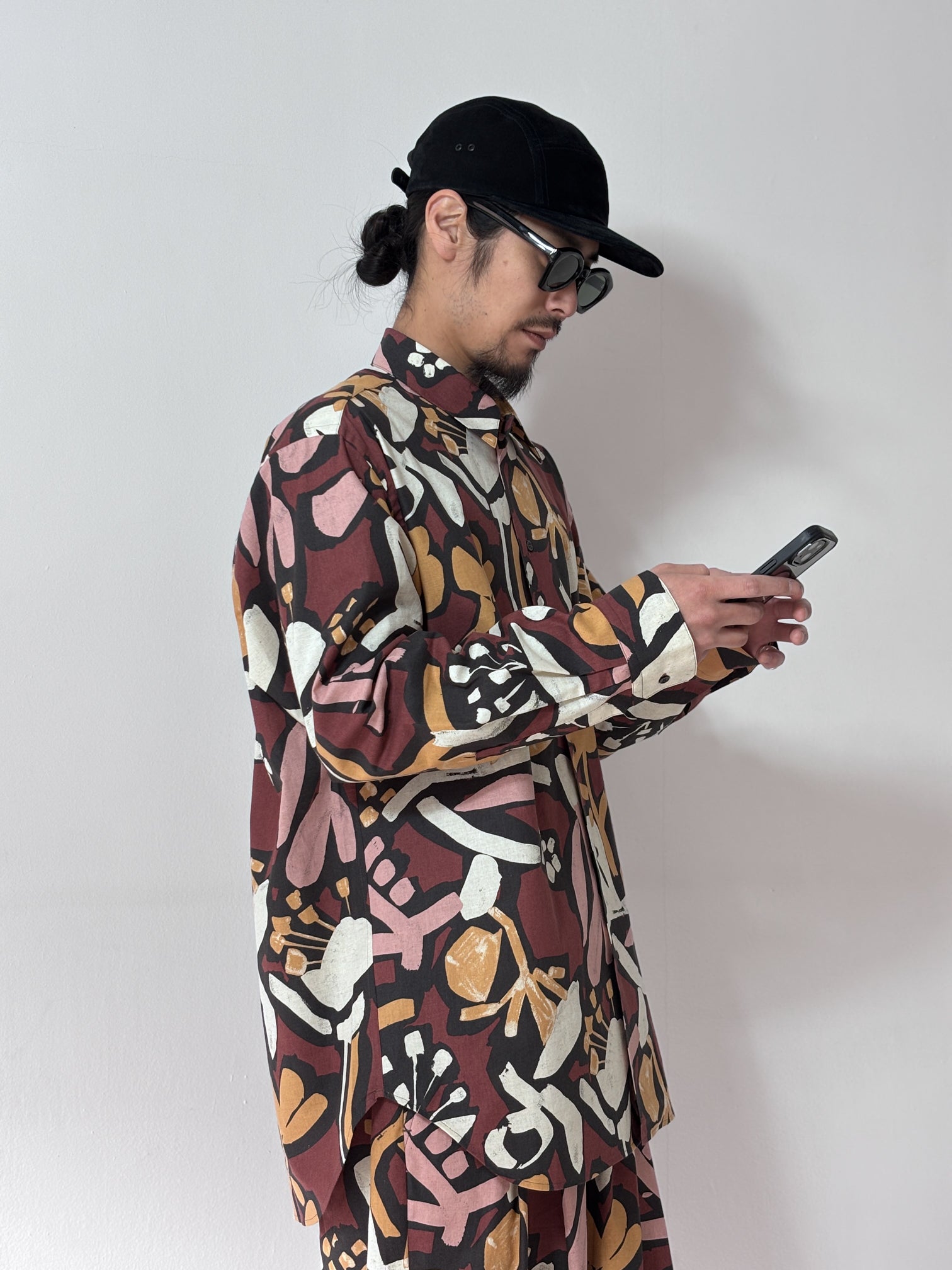 my beautiful landlet / FLORAL PIGMENT PRINT OVERSIZE SHIRT (PINK)