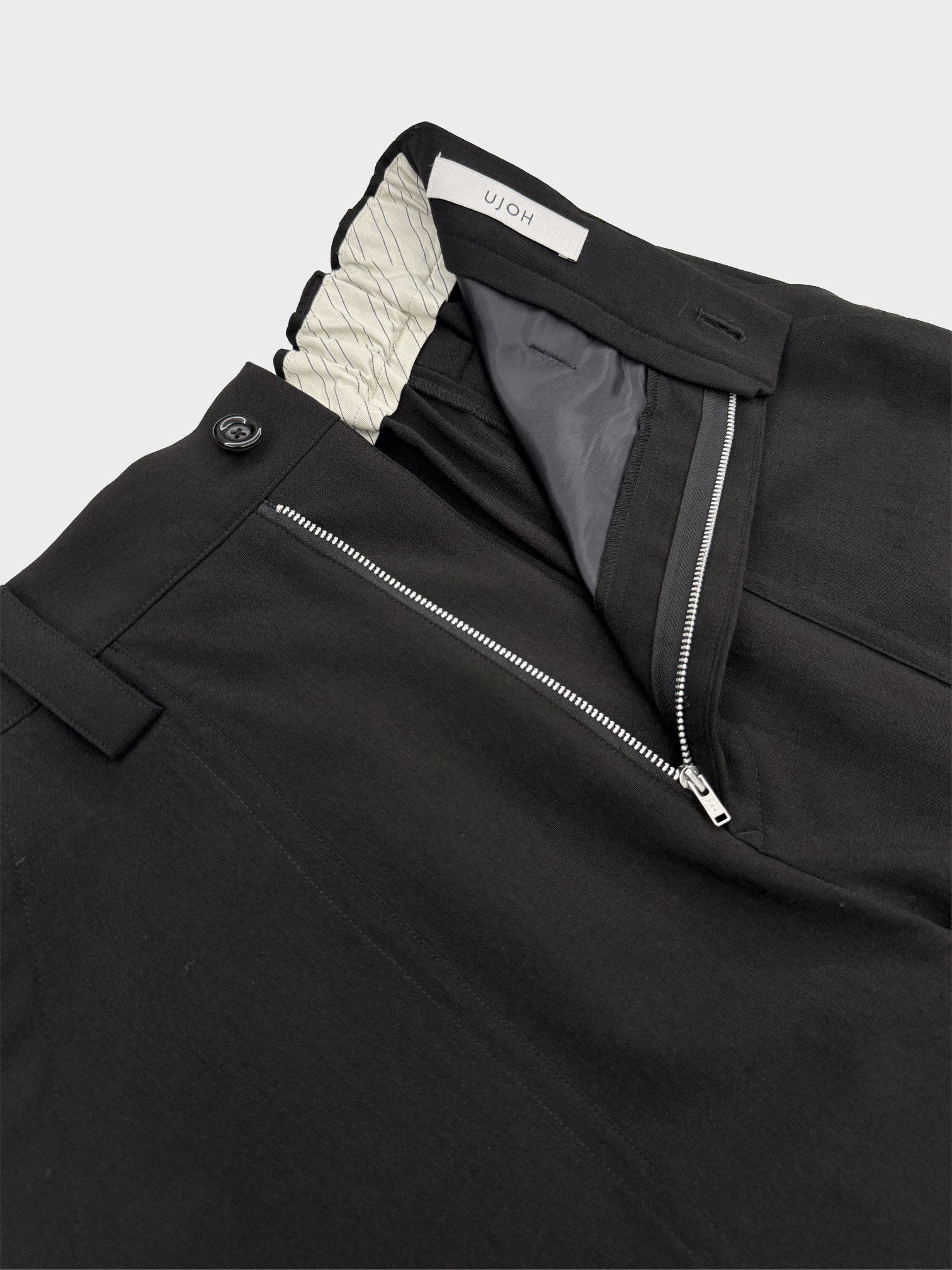 The detailing with tucks around the waist and the short length make it a piece that you can feel UJOH's character everywhere.