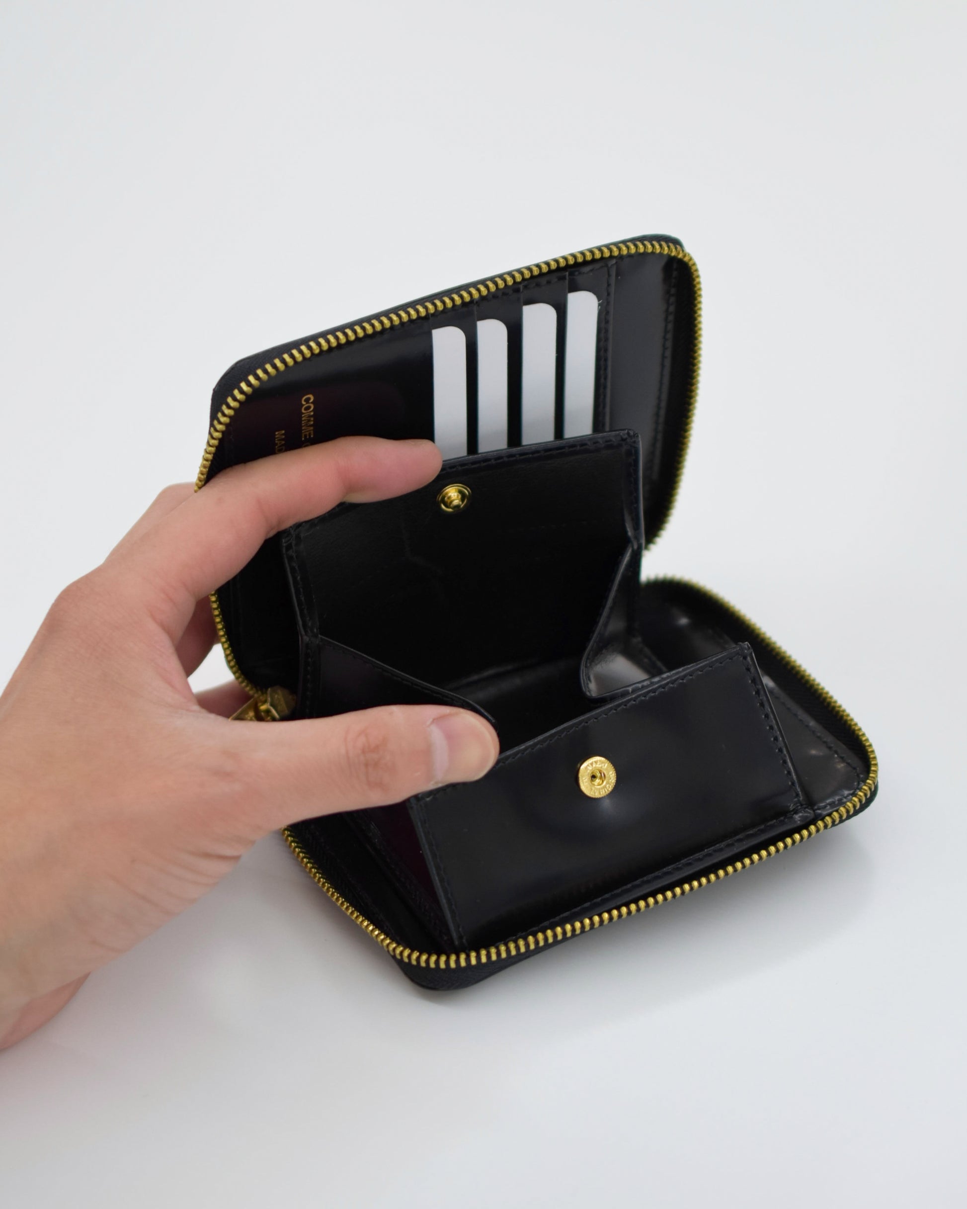 CdG Wallet / DOT EMBOSSED LEATHER LINE WALLET (BLACK)