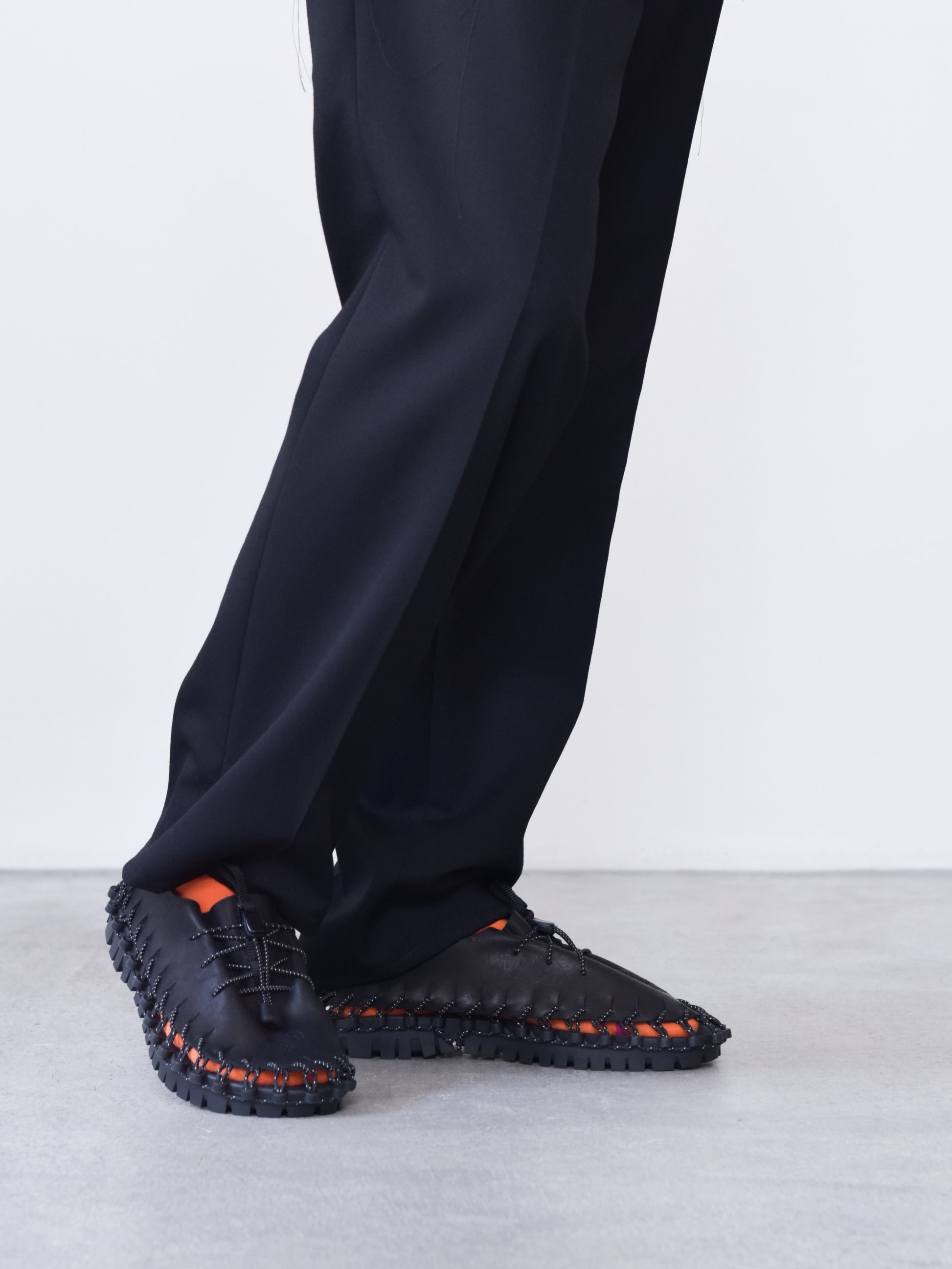 カウレザーのアッパーやアッセンブルの方法によって、スポーティな雰囲気とクラフト感をどちらも感じられるハイブリッドなシューズになりました。