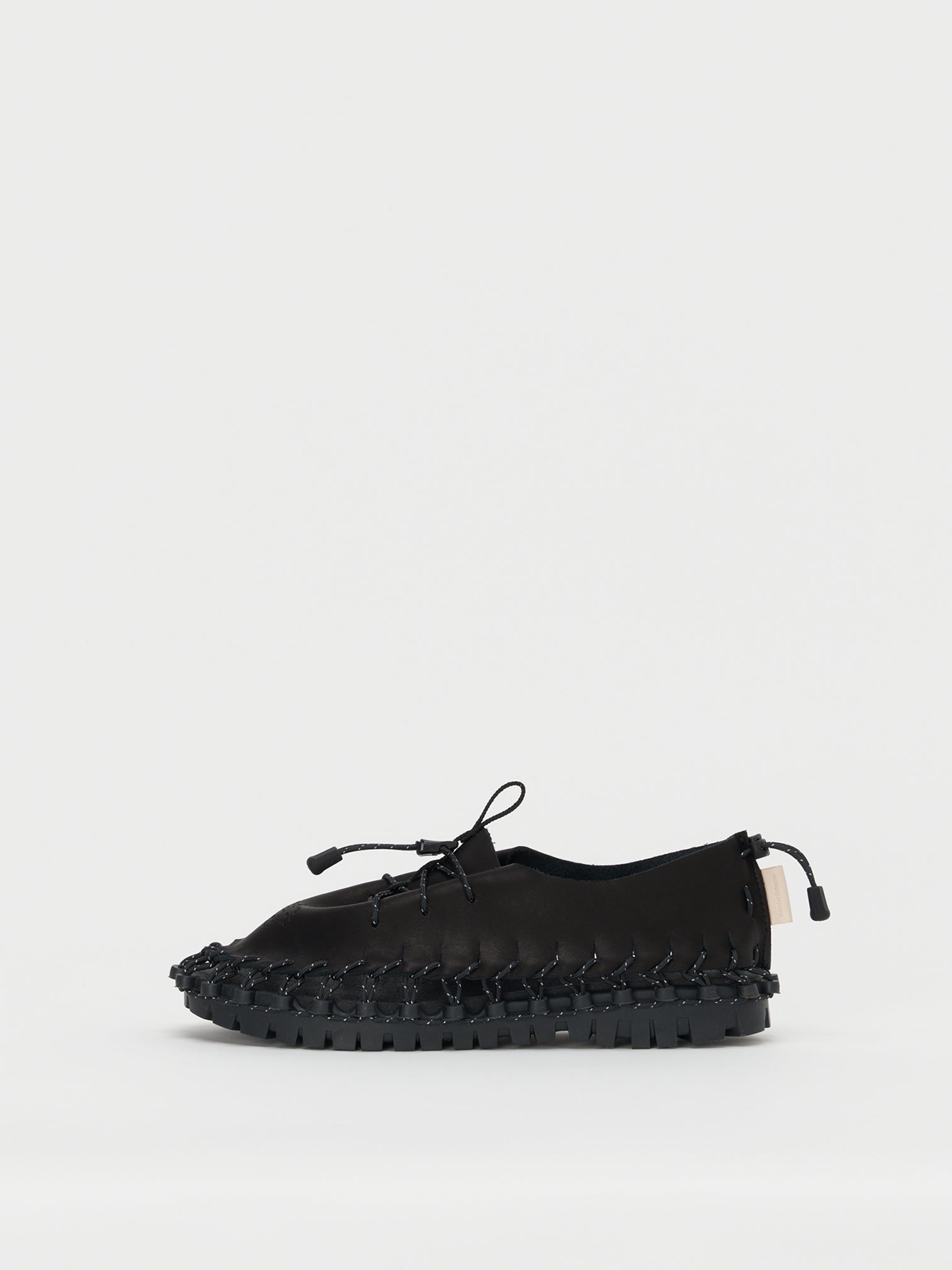 アッパーは変則的なホールカットのワンピースのデザインでアジャスターで甲を絞り込んで履くデザインです。