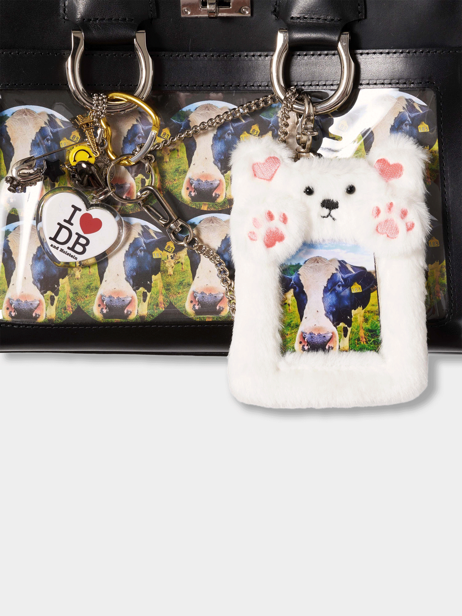 好きなアイドルやキャラクターのキーホルダーや缶バッジをたくさん飾り付けた「痛い」バッグ、通称“痛バッグ”をモチーフにしているレザーバッグです。