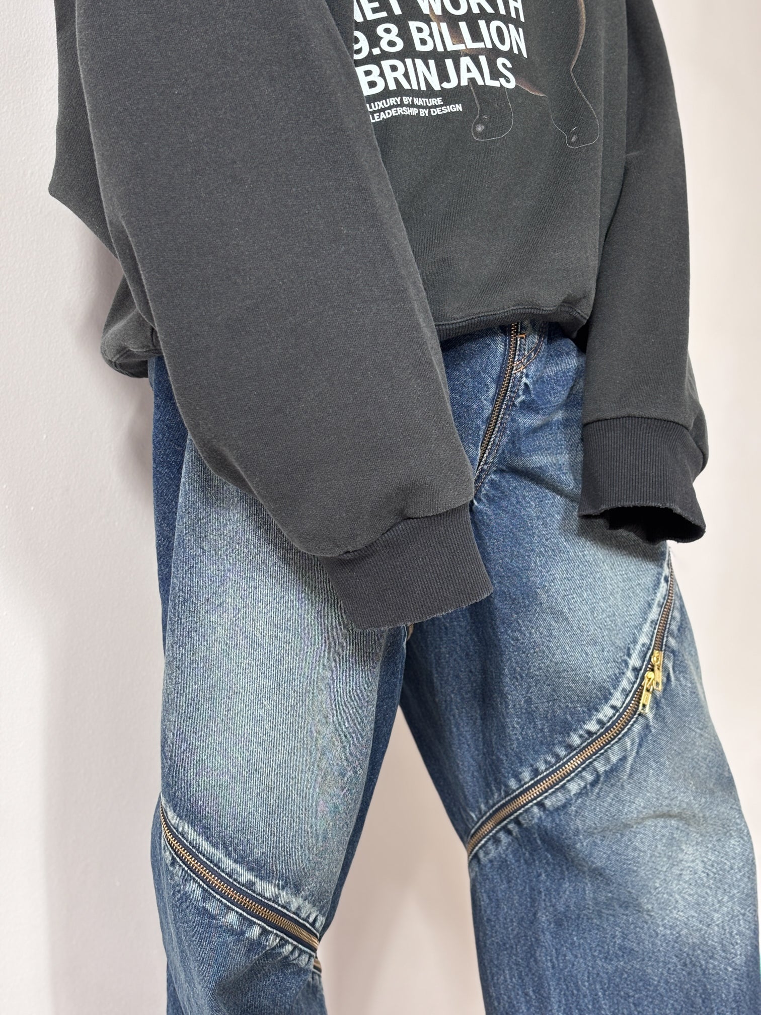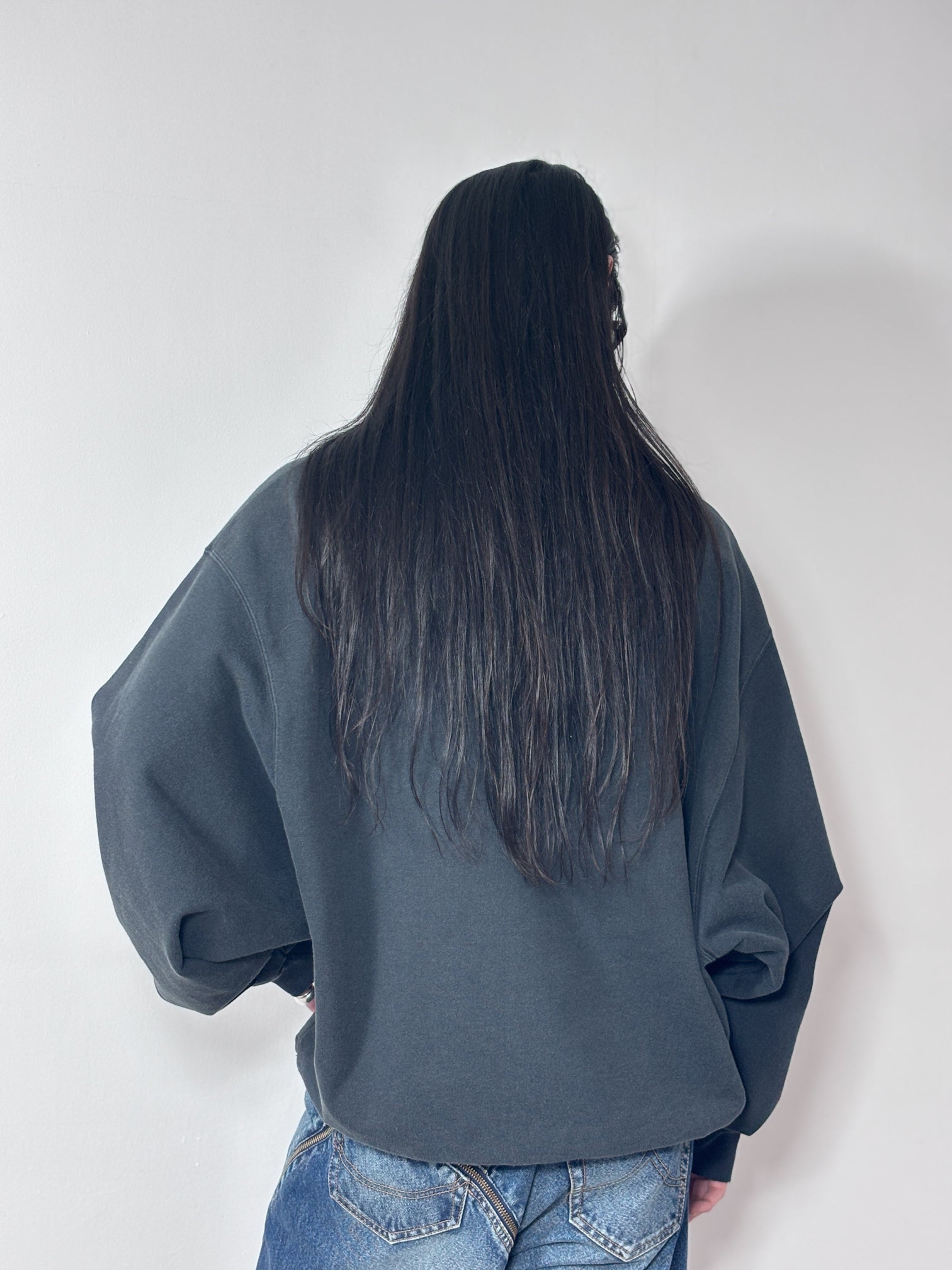 人のように擬人化された野菜たちが表紙を飾る、架空のビジネス誌をモチーフにしたスウェット。働く野菜たちの言葉を添えて、彼らを称えるグラフィックを胸元に大胆にプリント。アームホール広めの、ゆったりとしたシルエットです。