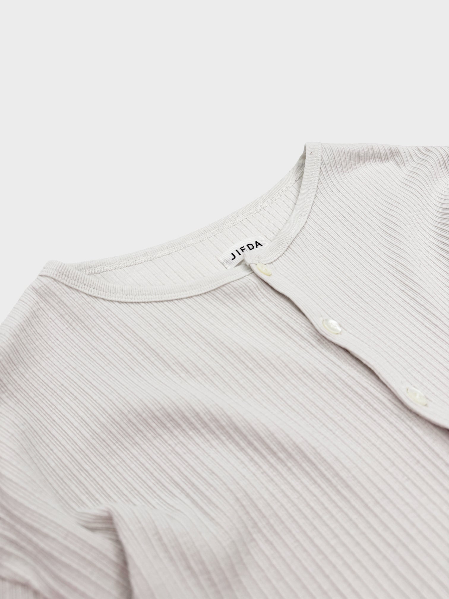 JIEDA / VINTAGE LIGHT RIB HENRY NECK L/S (OFF WHITE)