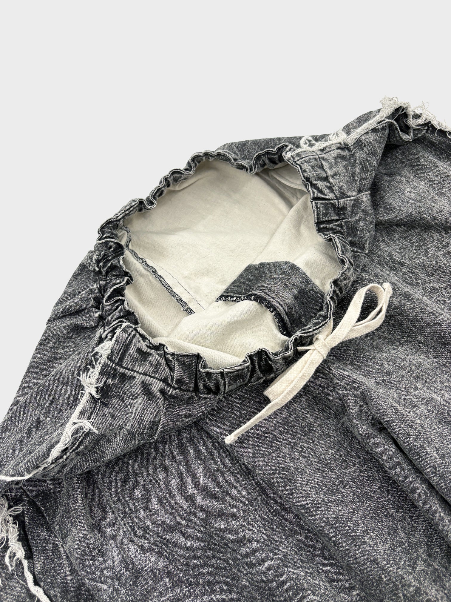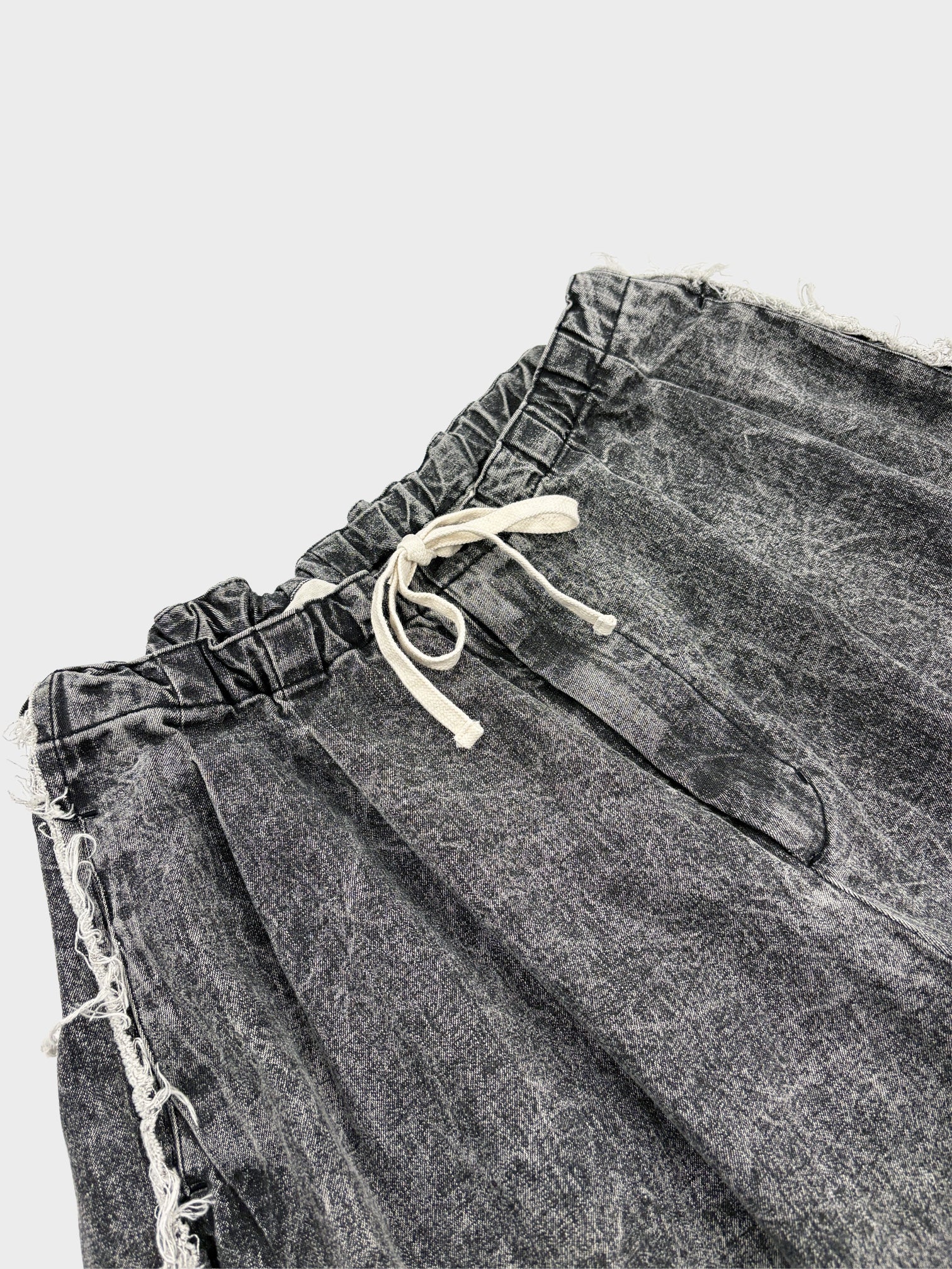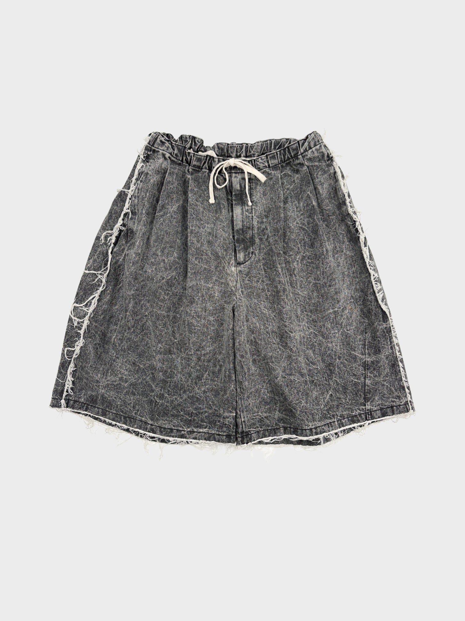 my beautiful landlet / PIGMENT PRINT WASHED DENIM SHORTS (BLACK)