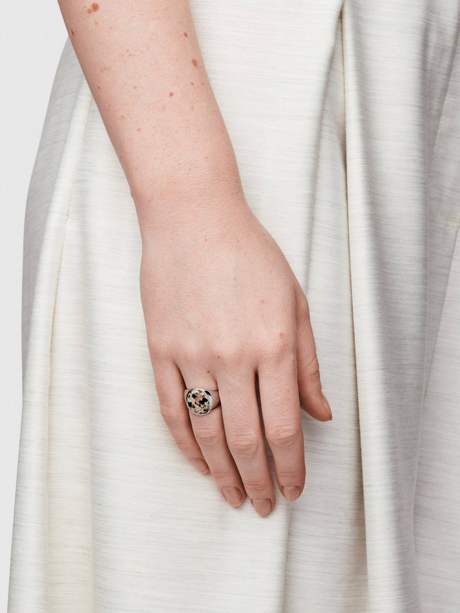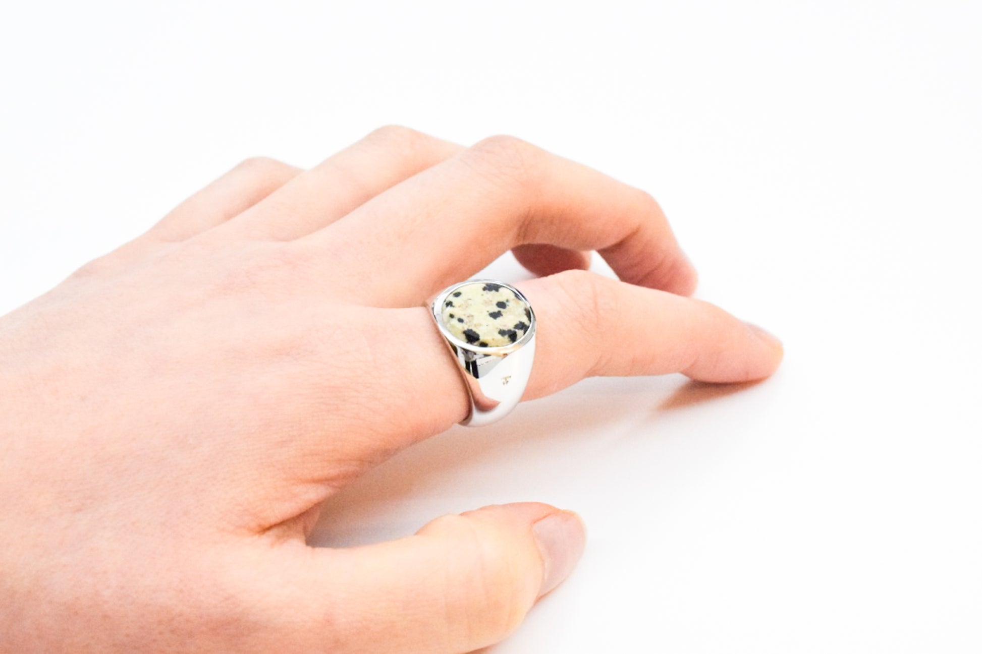 The rings are handmade by craftsmen, and are designed to make the most of the materials themselves, without mixing different materials or plating, etc. The brand logo engraved casually on the side gives an elegant impression.
