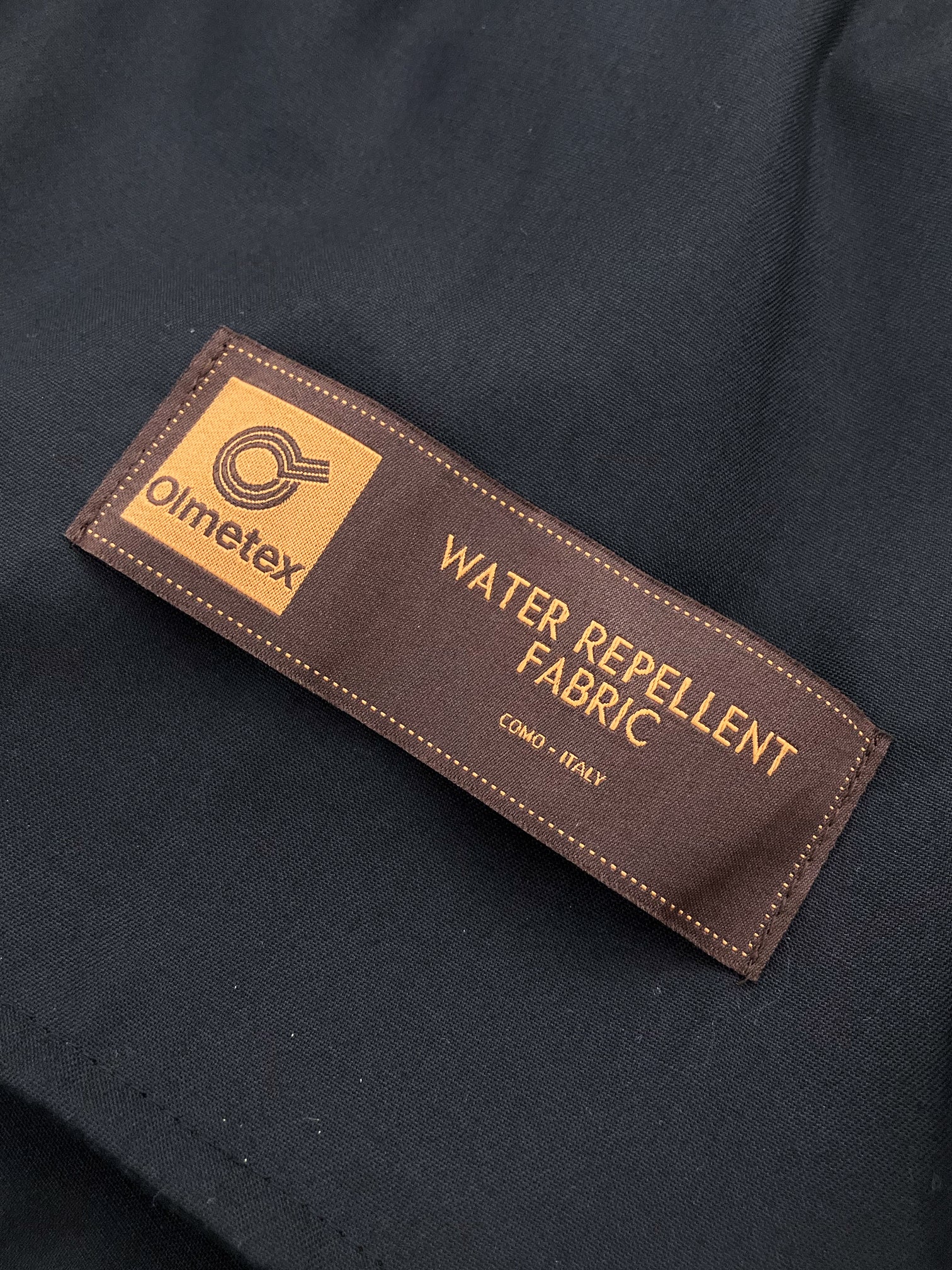 The fabric has water repellency, an elegant sheen, and the natural texture of cotton coexist, and you can feel it adjust to your body every time you wear it.