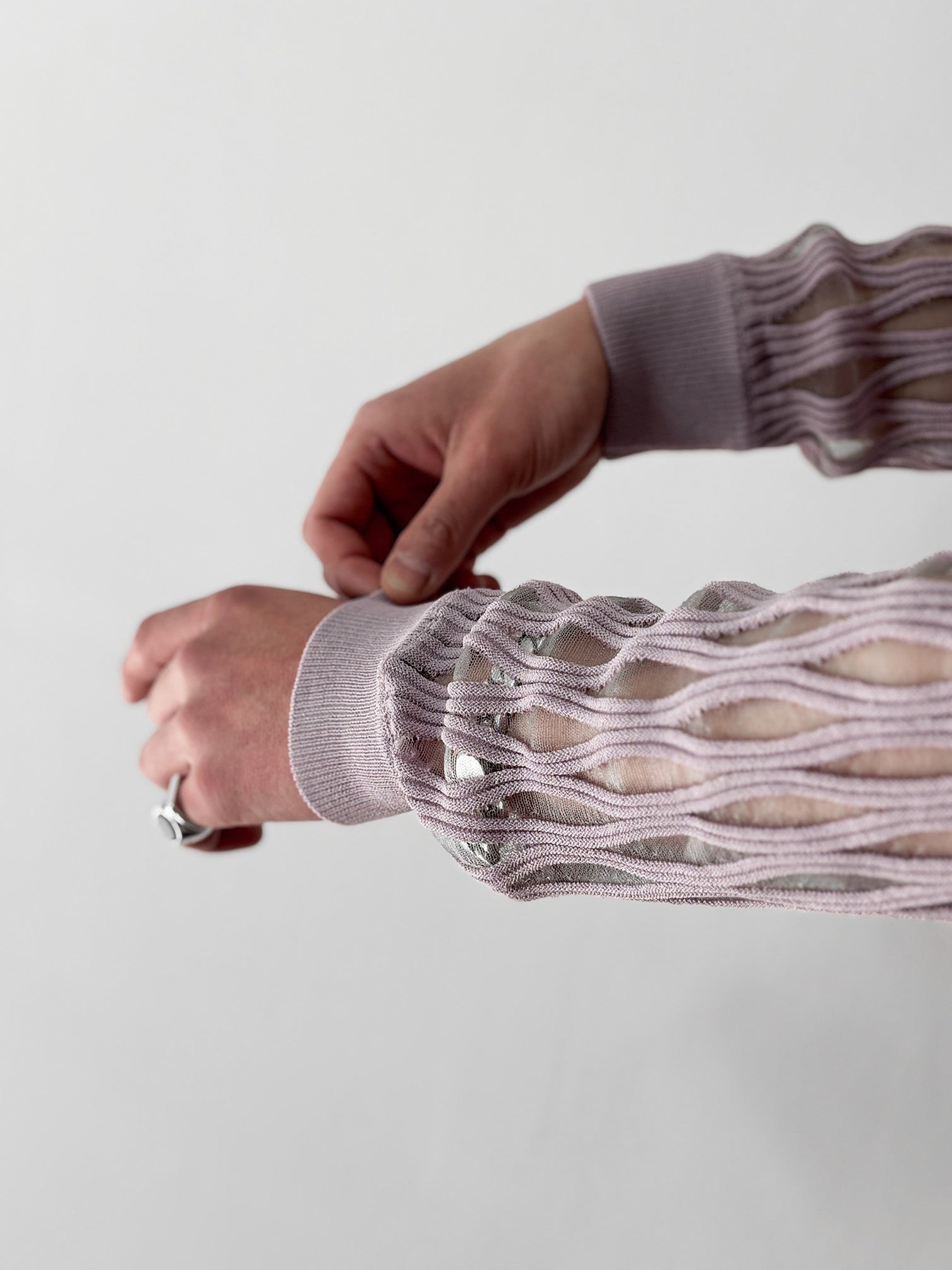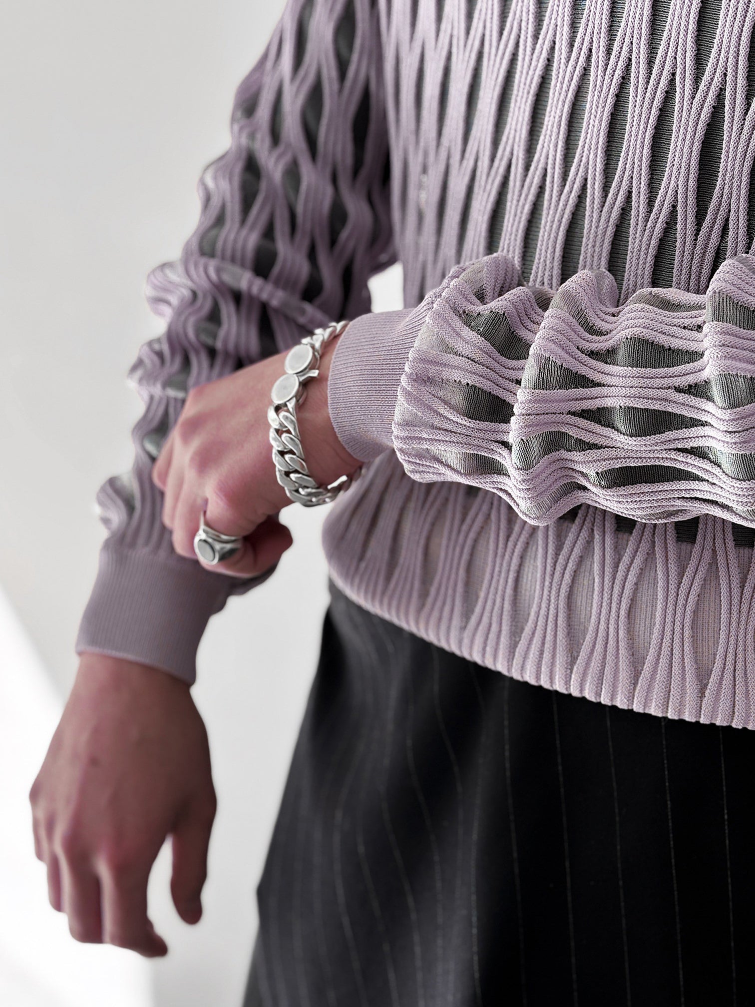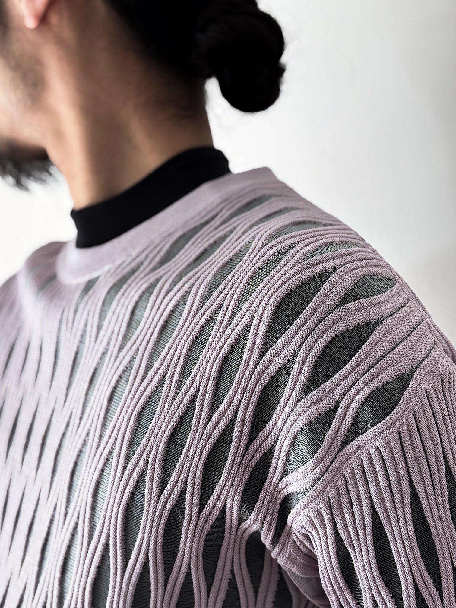肌と空気のあいだに曖昧な境界を描くプルオーバーニット。
