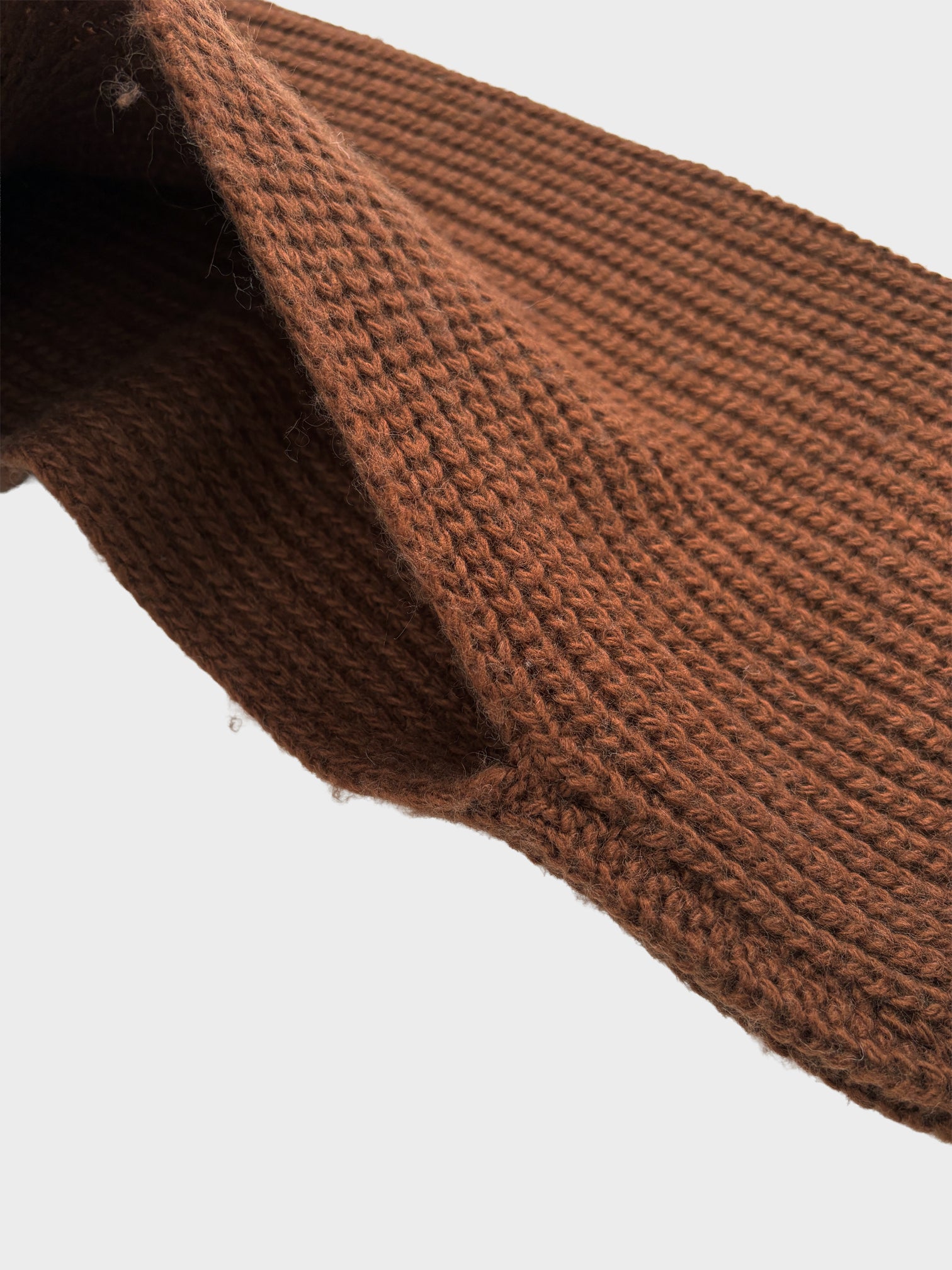 首に巻いても、肩を覆うように掛けても、リブに袖も通して着てもと様々な仕様が楽しめるデザインとなっており、大ぶりに設定されたサイズ感なのでコートやジャケット、厚手のニットやトレーナーと様々なアイテムと組み合わせていただけます。