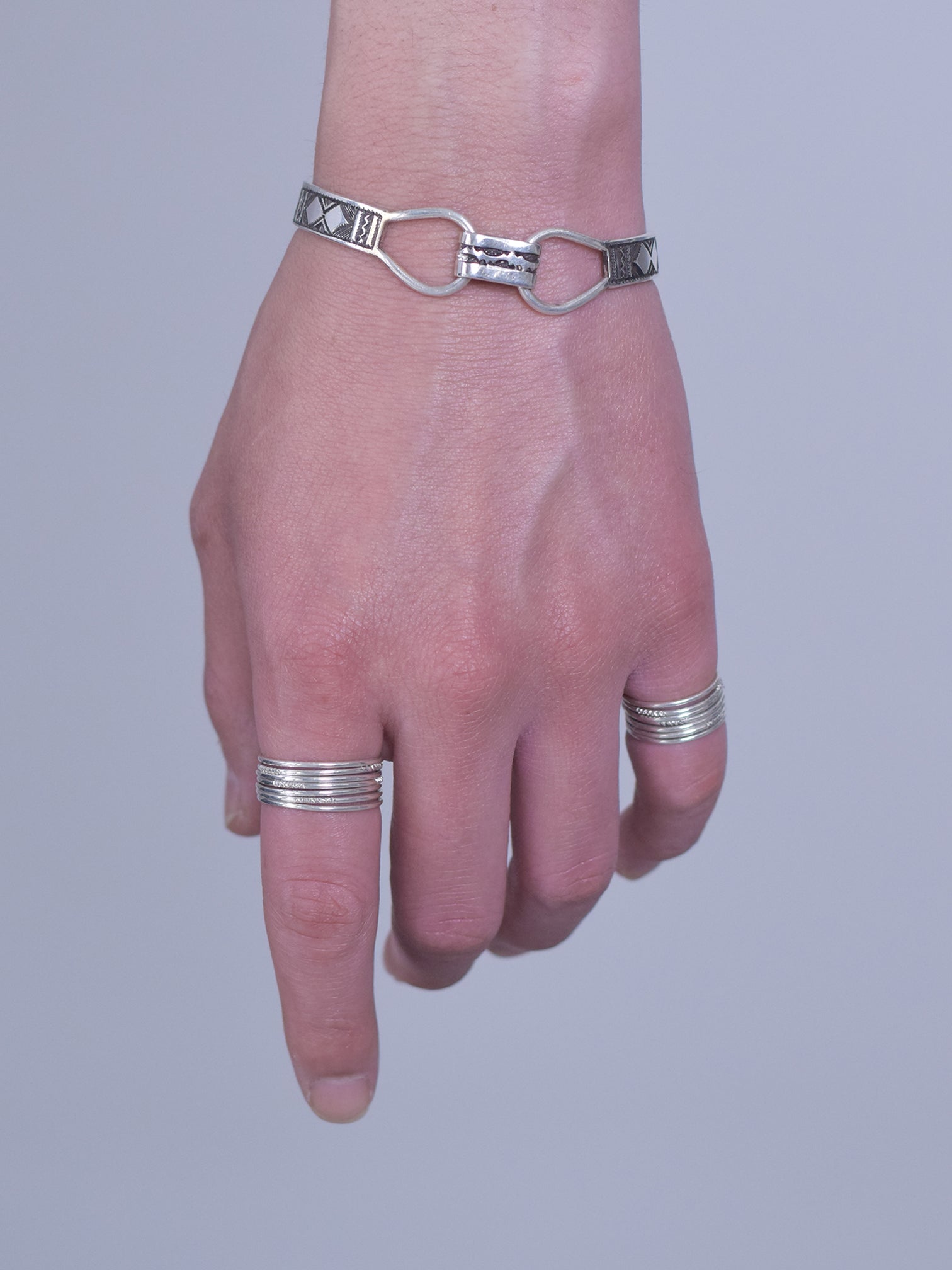 The Tuareg are a nomadic people living in North Africa, also known as the "Blue People" or "Warriors of the Desert. They make silver jewelry with traditional and delicate patterns, and their craftsmanship has been recognized by the world-famous brand Hermes, which still produces silver jewelry today.