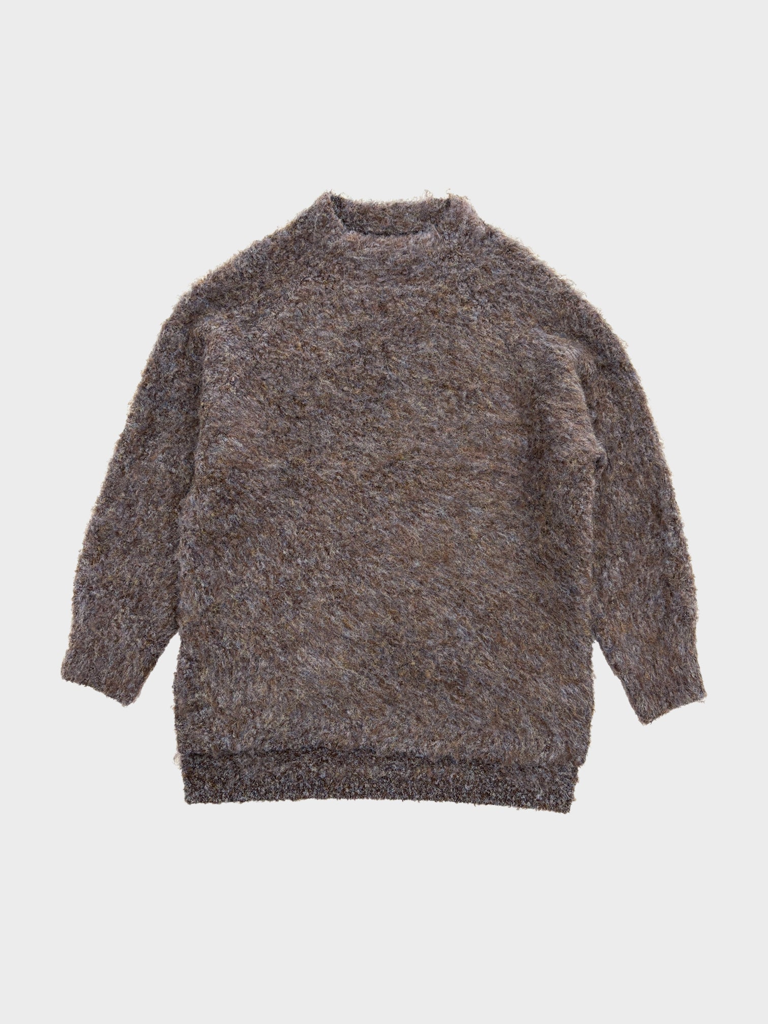 VOAAOV / FULLERS TEASEL BRUSHED KNIT CREW NECK (BROWN)