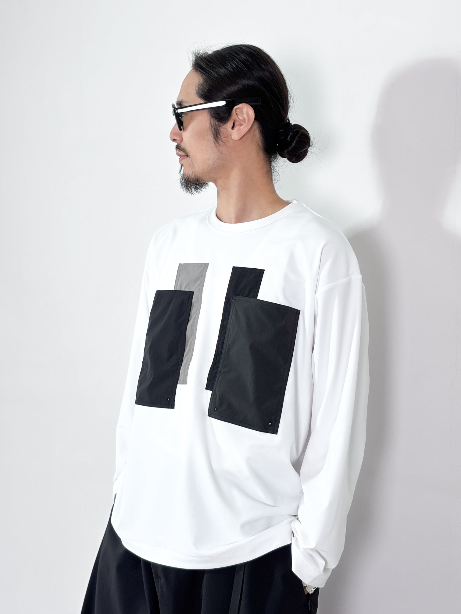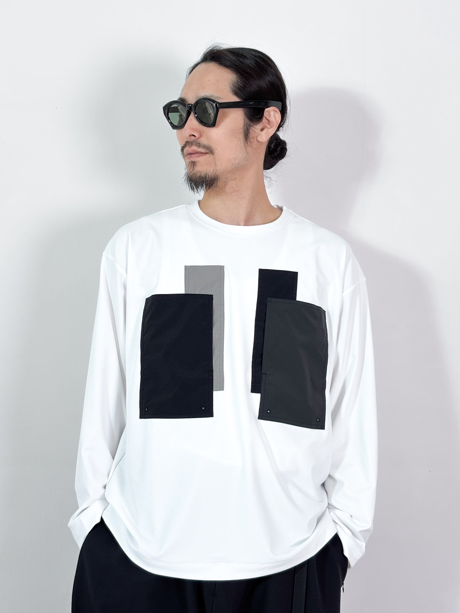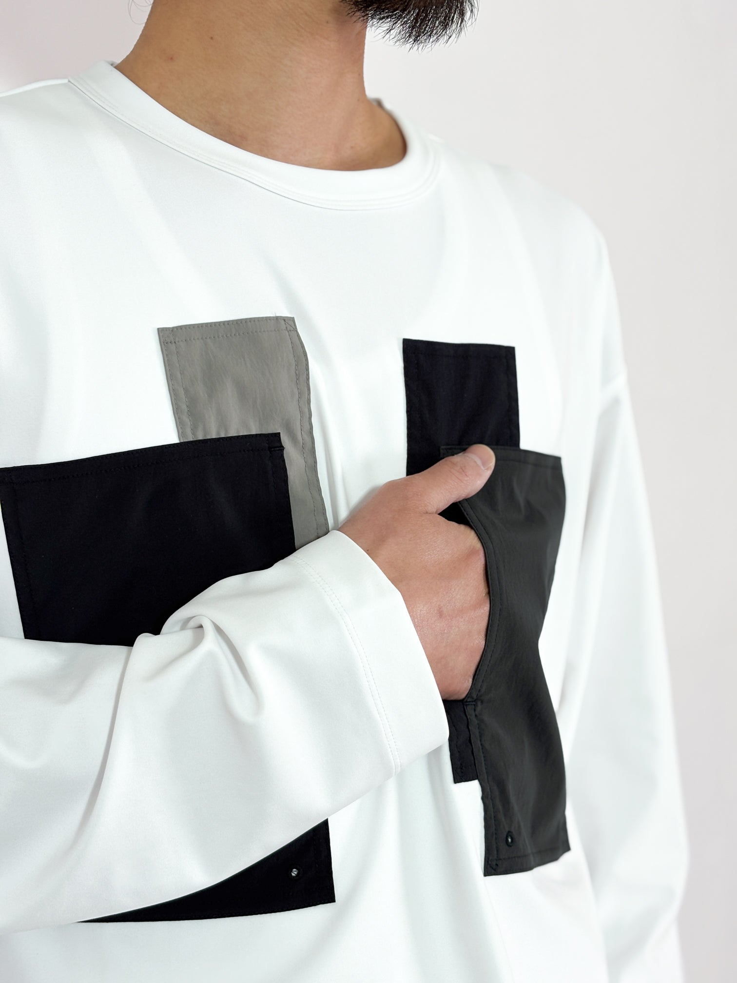 【4月25日(土)12:00販売開始】FUMITO GANRYU / PATCHWORK POCKET RASH GUARD LONG SLEEVE (WHITE×GRAY)