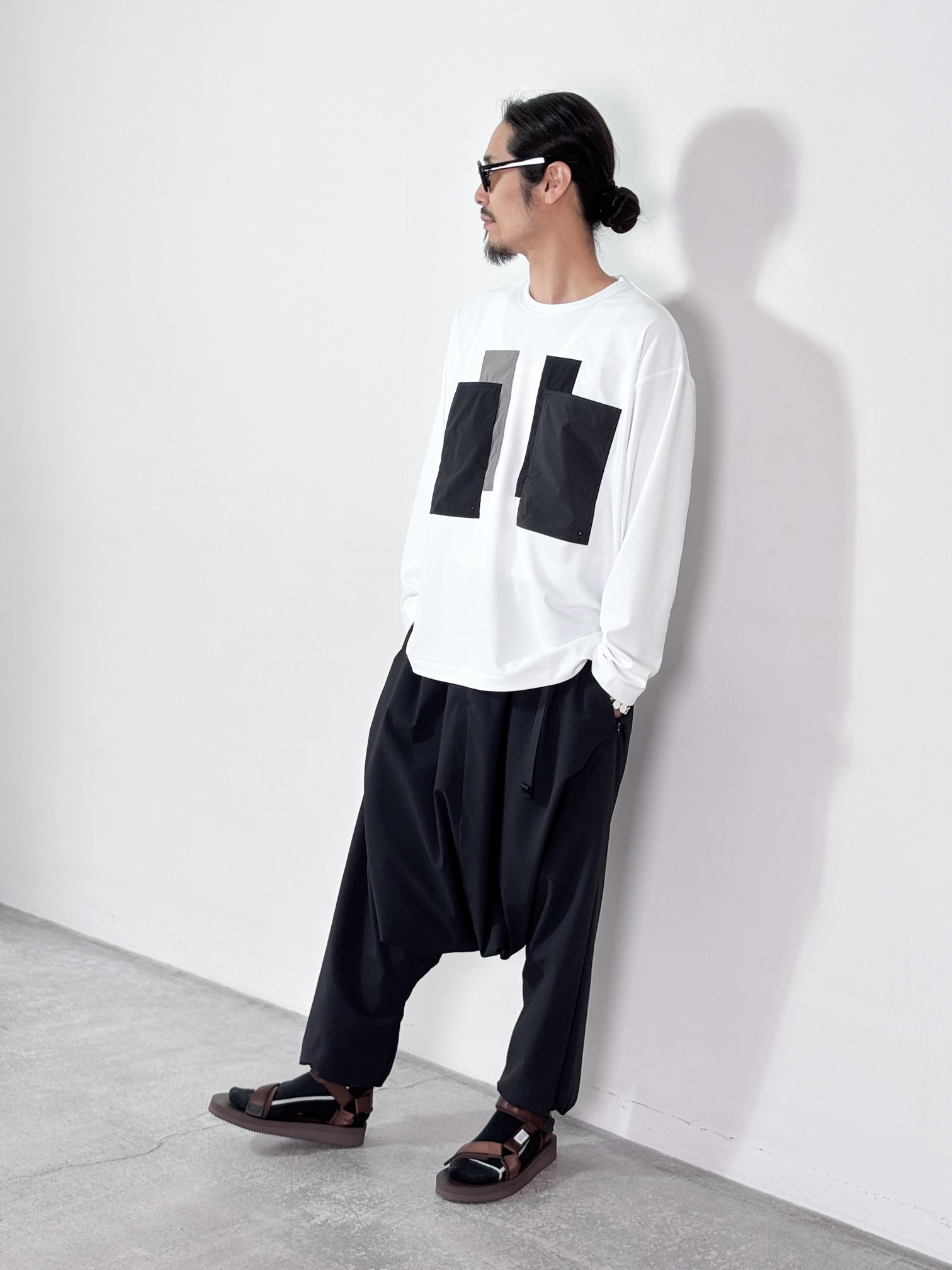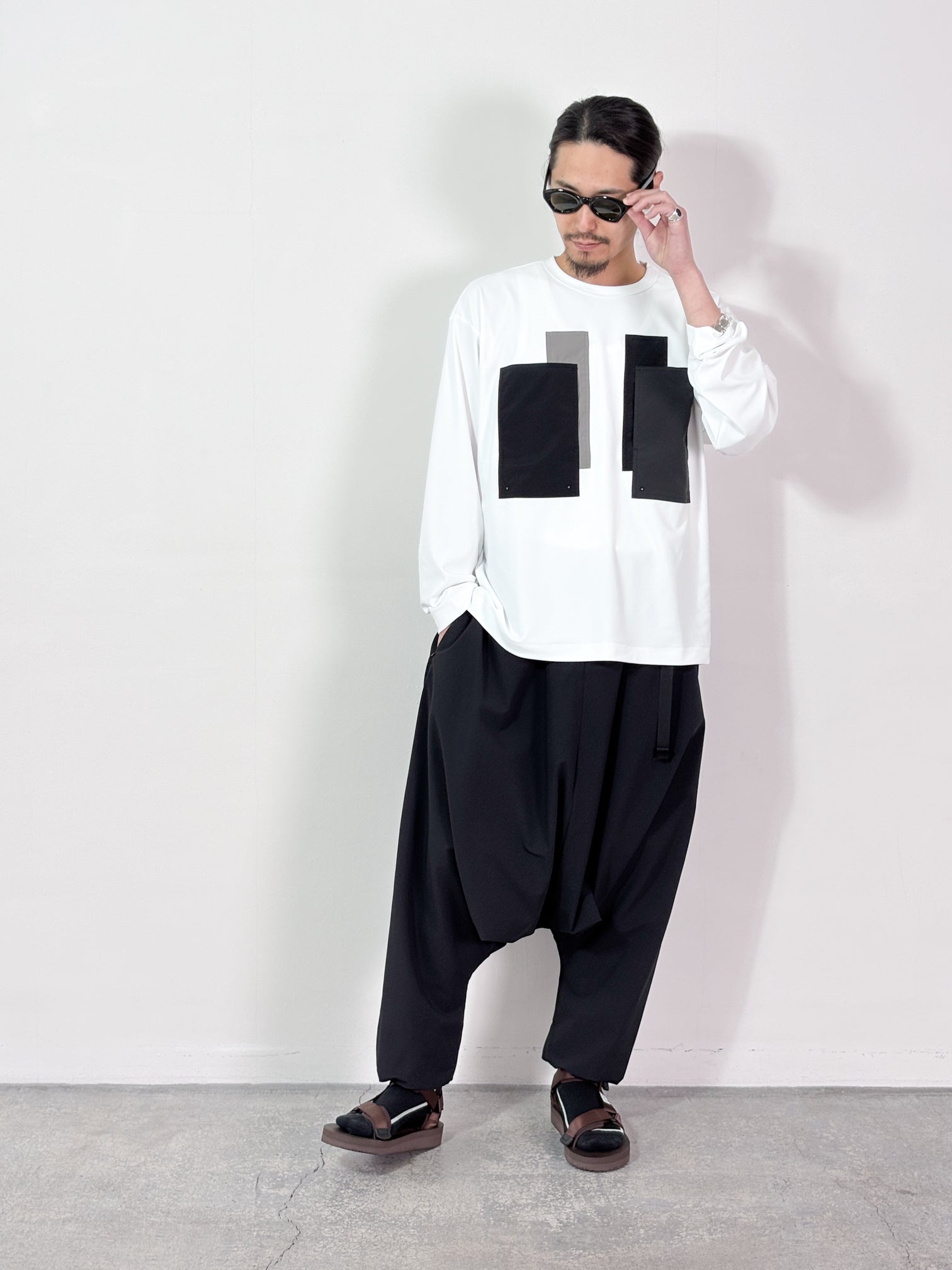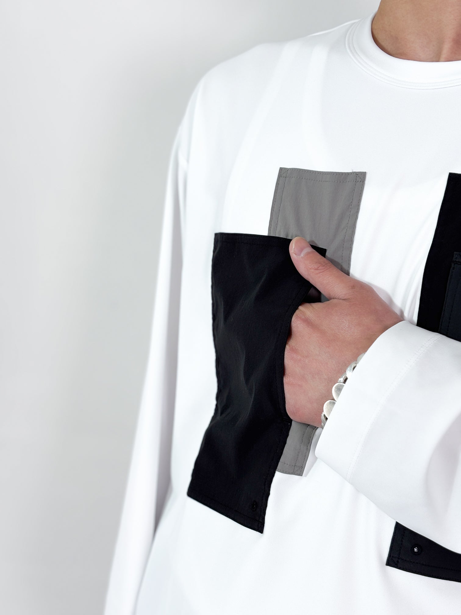 【4月25日(土)12:00販売開始】FUMITO GANRYU / PATCHWORK POCKET RASH GUARD LONG SLEEVE (WHITE×GRAY)