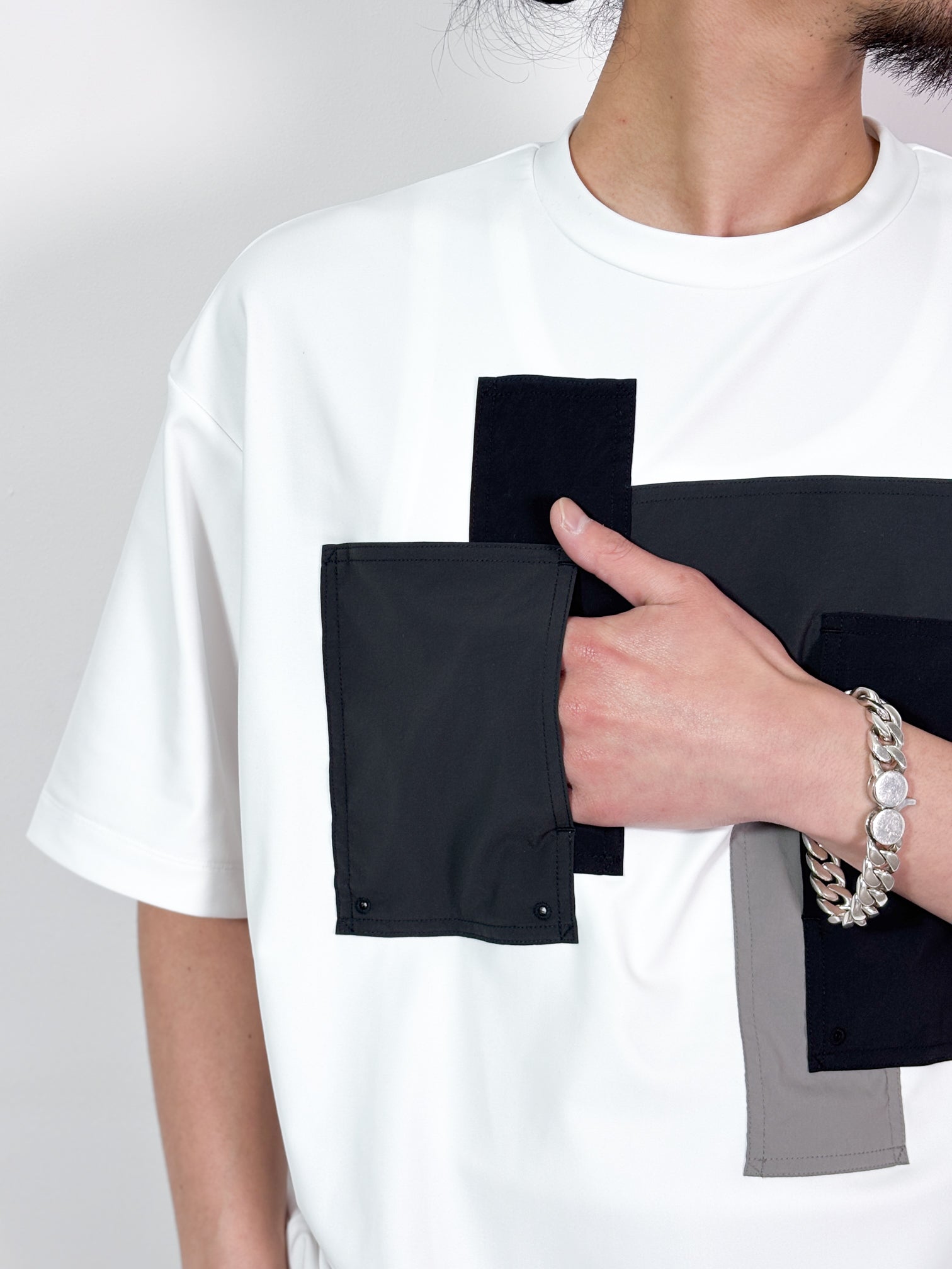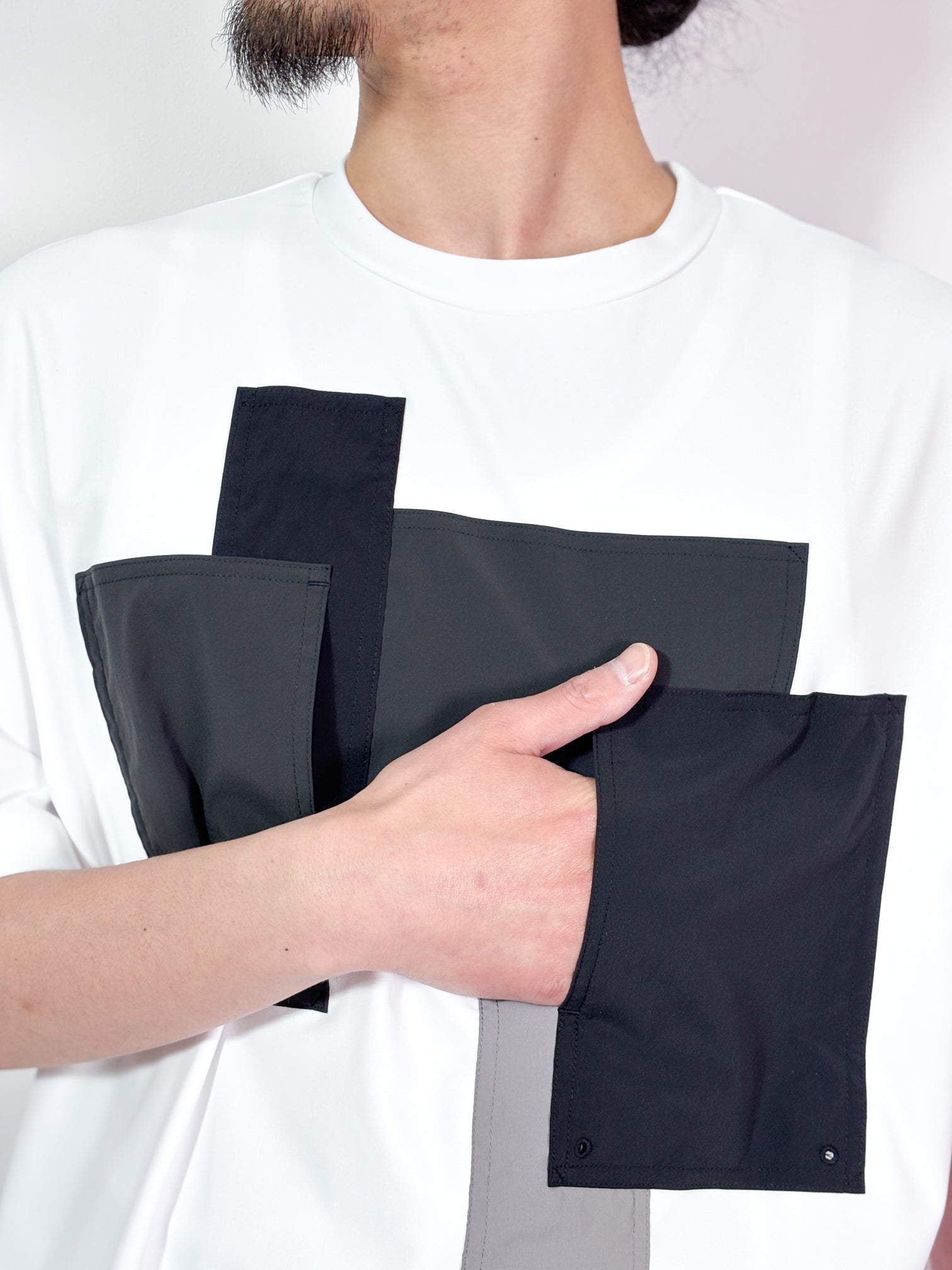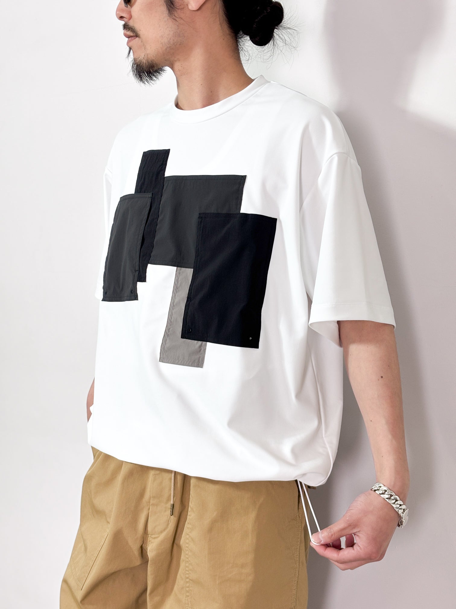 【4月25日(土)12:00販売開始】FUMITO GANRYU / PATCHWORK POCKET RASH GUARD SHORT SLEEVE (WHITE×GRAY)