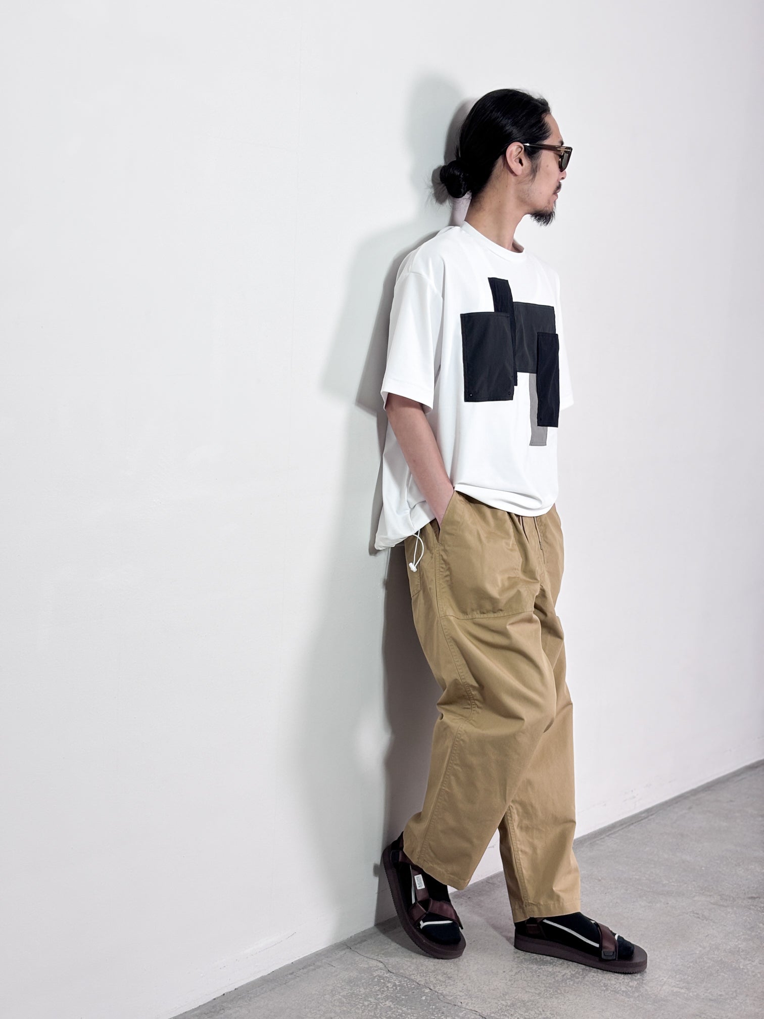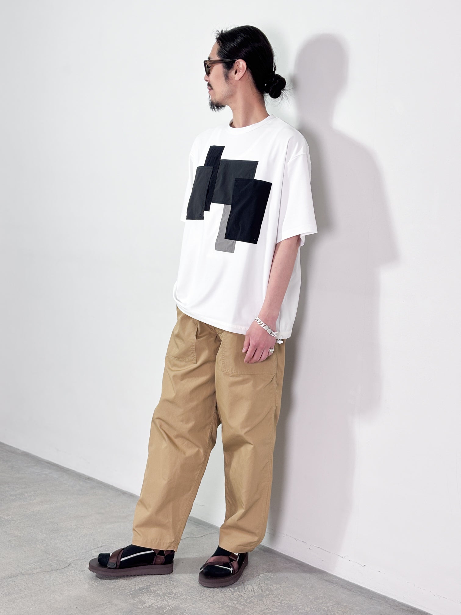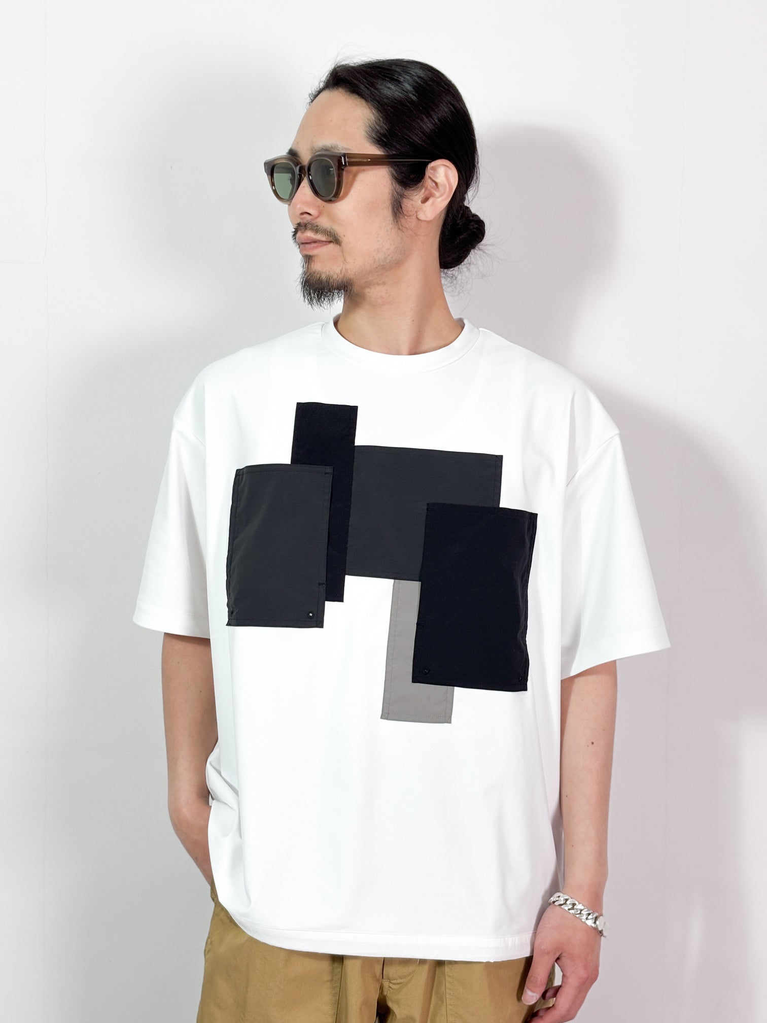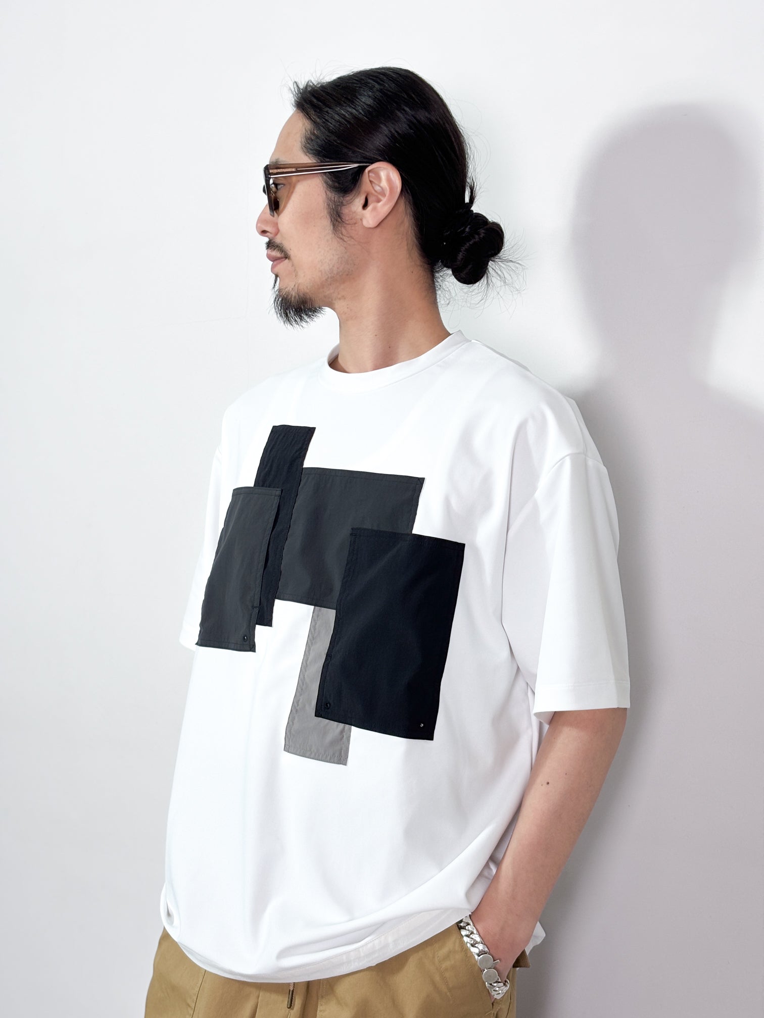 【4月25日(土)12:00販売開始】FUMITO GANRYU / PATCHWORK POCKET RASH GUARD SHORT SLEEVE (WHITE×GRAY)