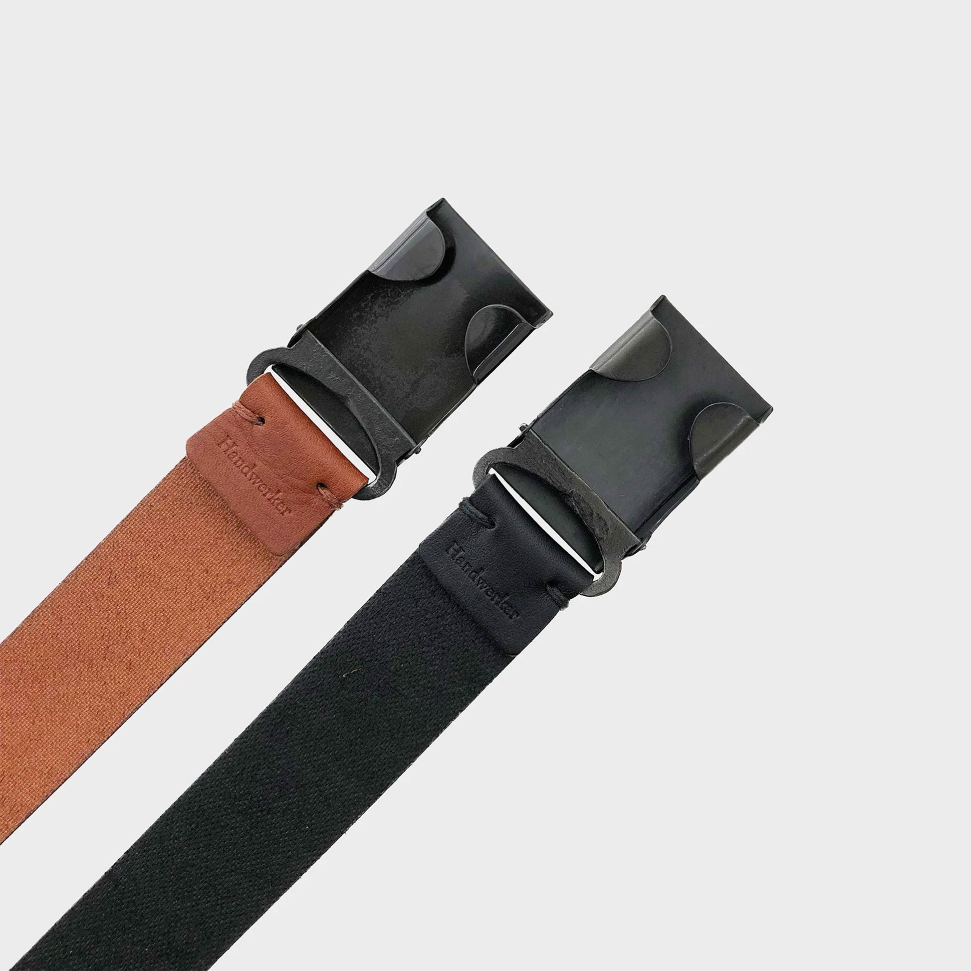 Hand werker定番のレザーベルトは、留める位置を選ばないGIベルトタイプ。