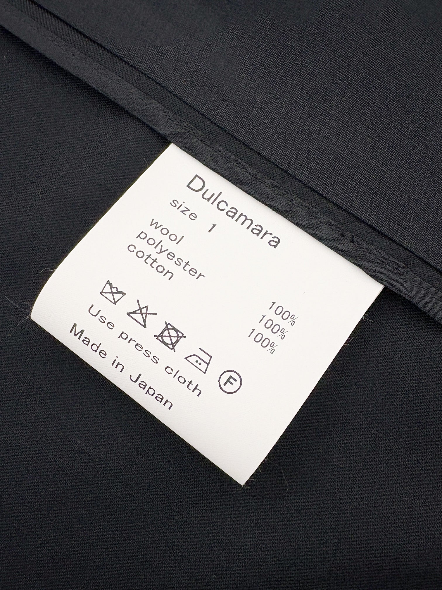 「Dulcamara」とはラテン語で「Dulcis」(甘い)と「Amarus」(苦い)をあわせた造語。 ブランド名はパウル・クレーの「インストラ・ドゥルカマラ」(甘く苦い島)から。 甘いも苦いも、柔らかいも固いも、女性も男性 も、子供も大人も、高級もボロも。。。。だけど、「いいものはいいし、わるいものはわるい」という意識だけは曲げない。 性別にとらわれない服創り、モノ創りを表現したいと考えています。