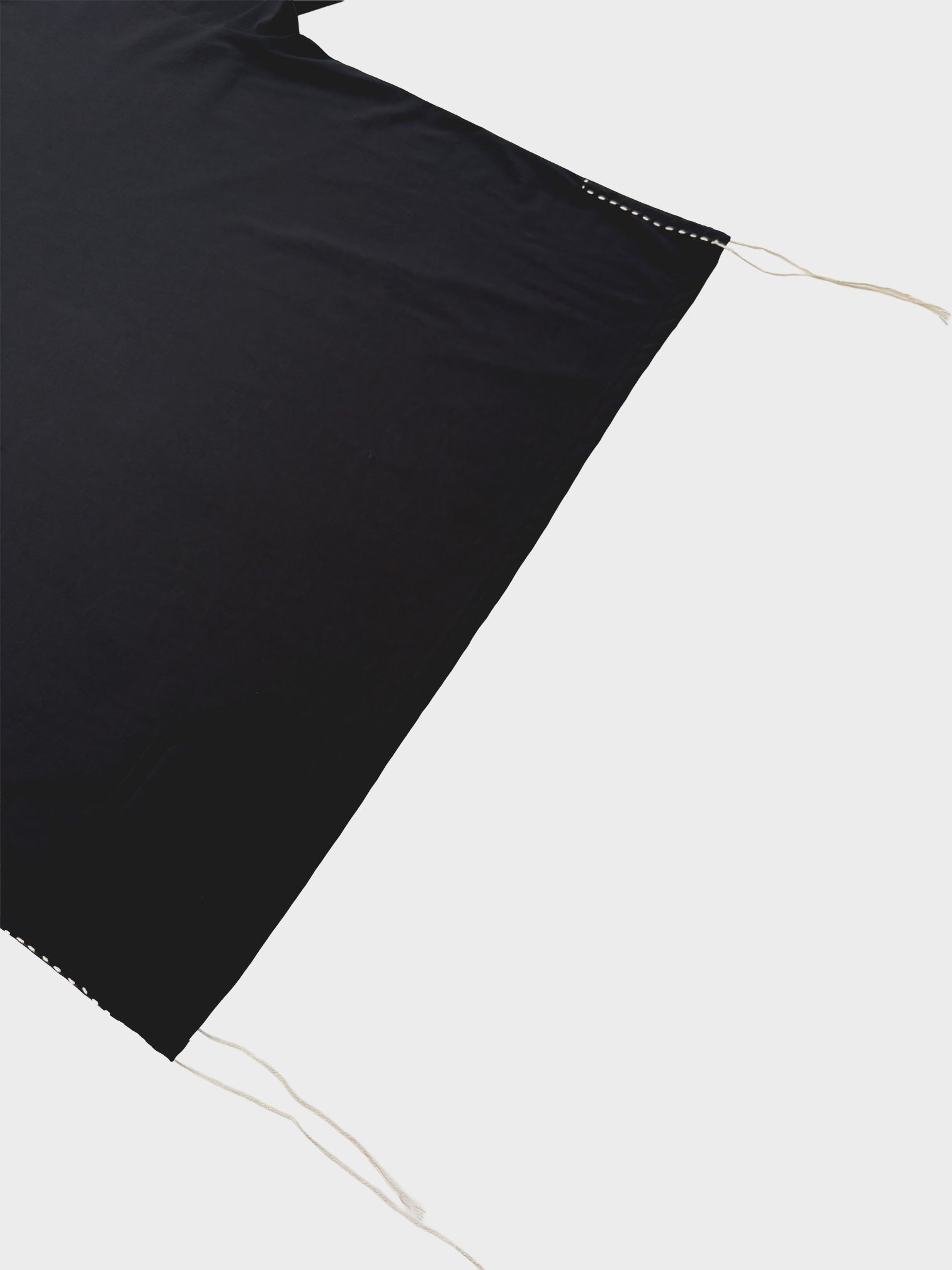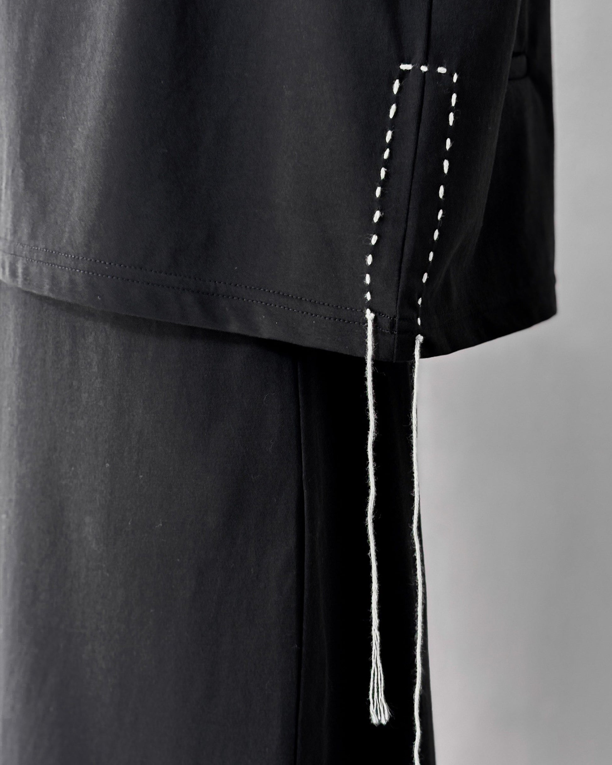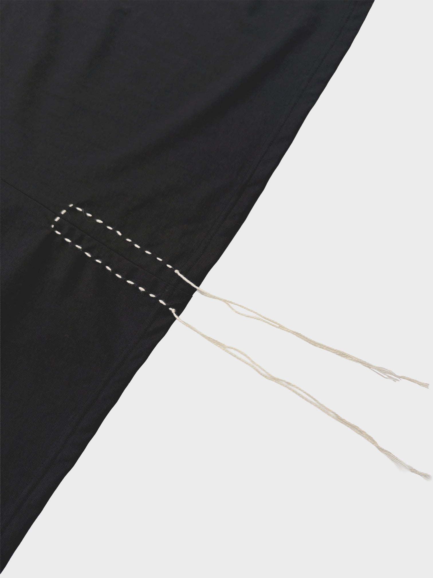 両サイドの裾部分にマチのように刺繍を走らせ、