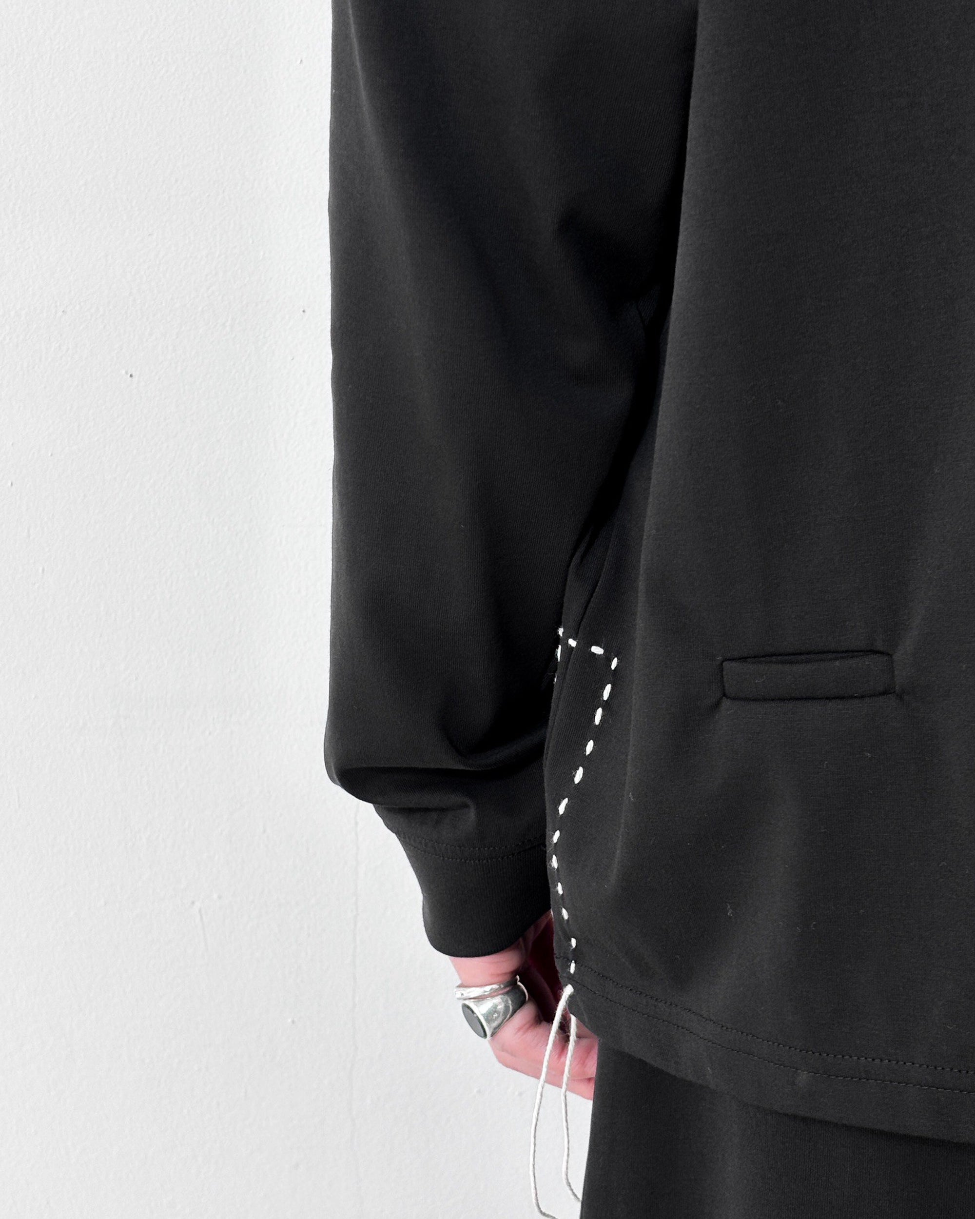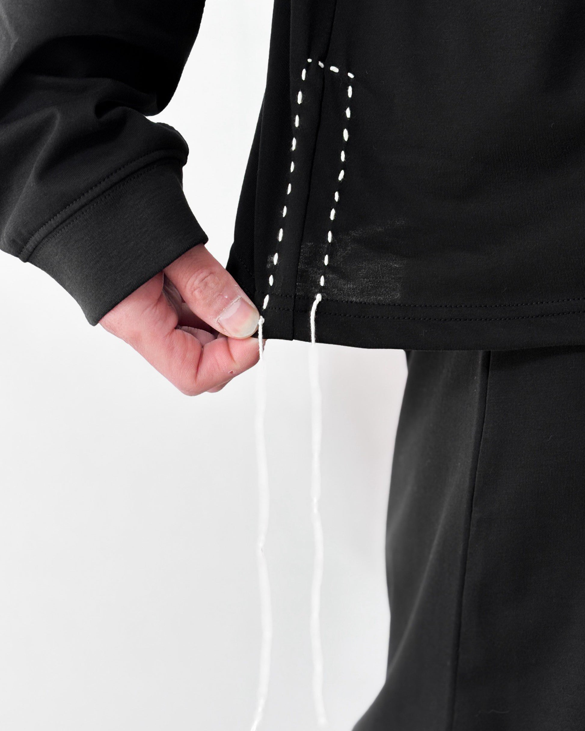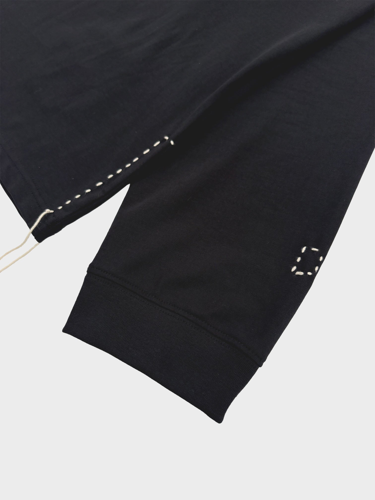 両サイドの裾部分にマチのように刺繍を走らせ、