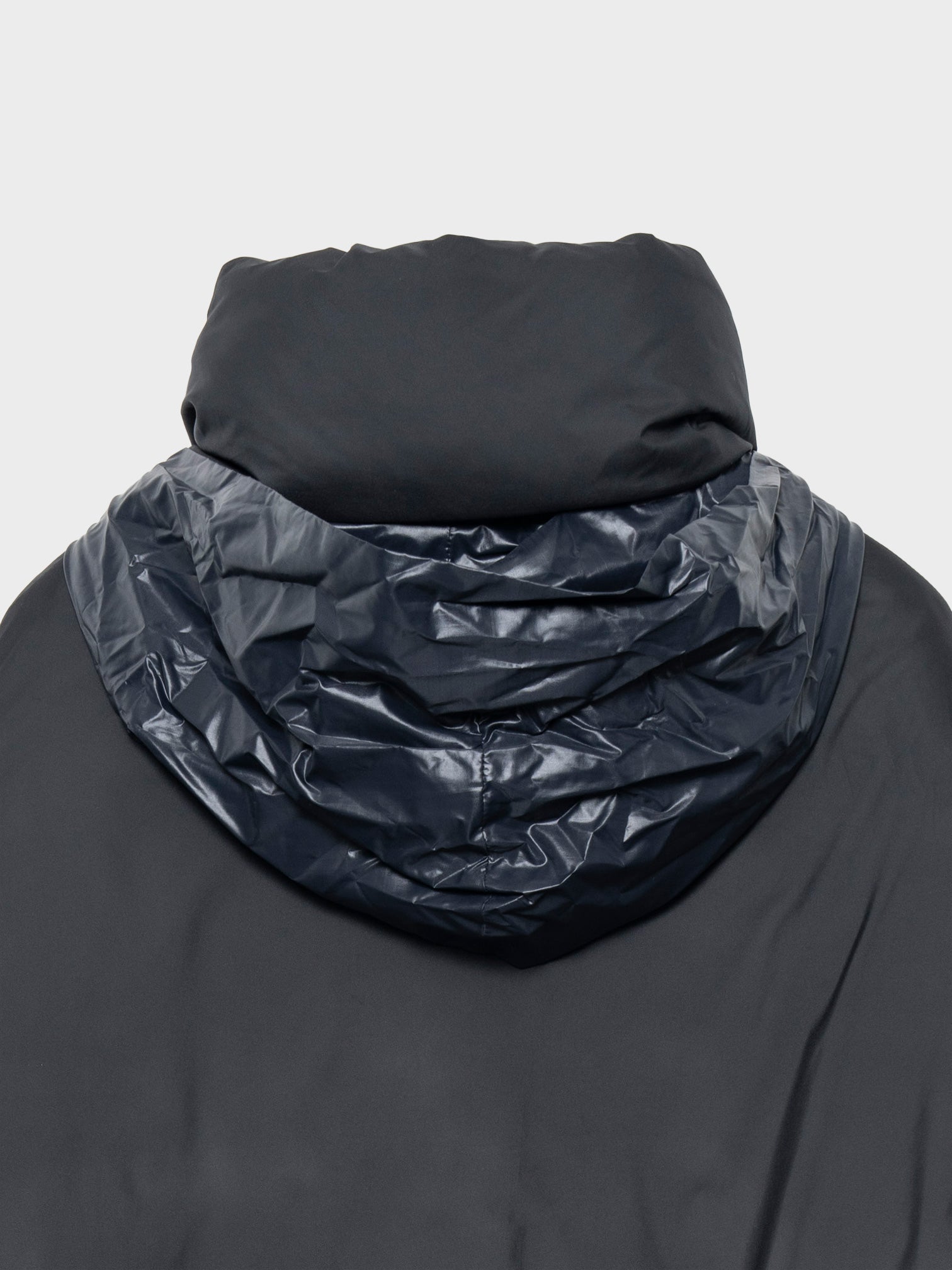 立ち襟部分にはフードが収納されており、ここでもデザインと機能性の両立を垣間見ることができます。
