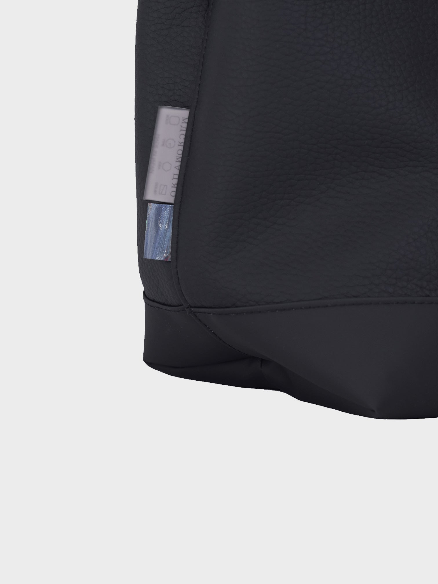 素材には、一見しただけではリアルレザーとの見分けがつかないほどリアルな合成皮革を使用しており、表面はシリコン加工されているので、堅牢度が高く、汚れもつきにくく、水も弾くため、ヘビーデューティにお使いいただけるバッグに仕上がりました。