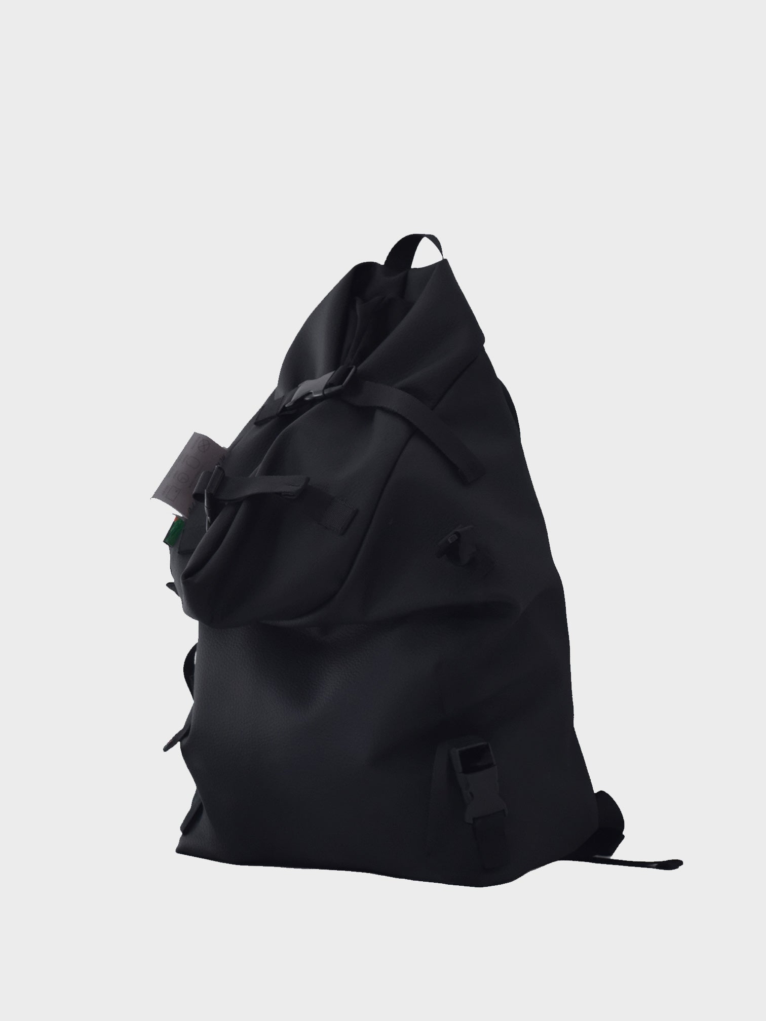 ピスネームにはmacromauroの代表作である、paintシリーズよりエナメルブラックレザーを使用。ブランドネームを見ずともどこのブランドかが一目でわかるよう、贅沢にも往年の名作生地を素材に用いています。またブランドタグに被せられるカバーは通常ホワイトクリアのPVC素材となりますが、このSUPER BLACKではブラッククリアのPVCが使われています。