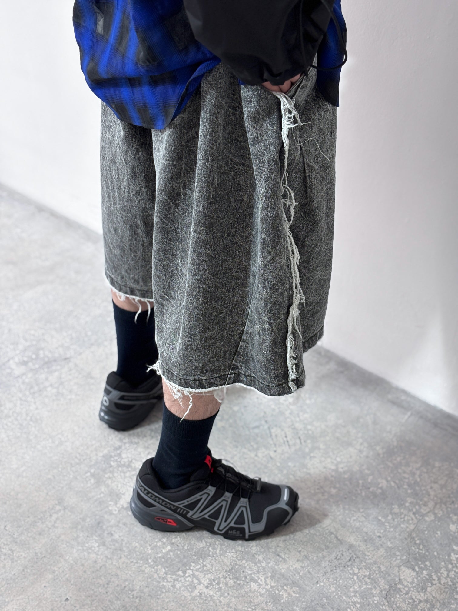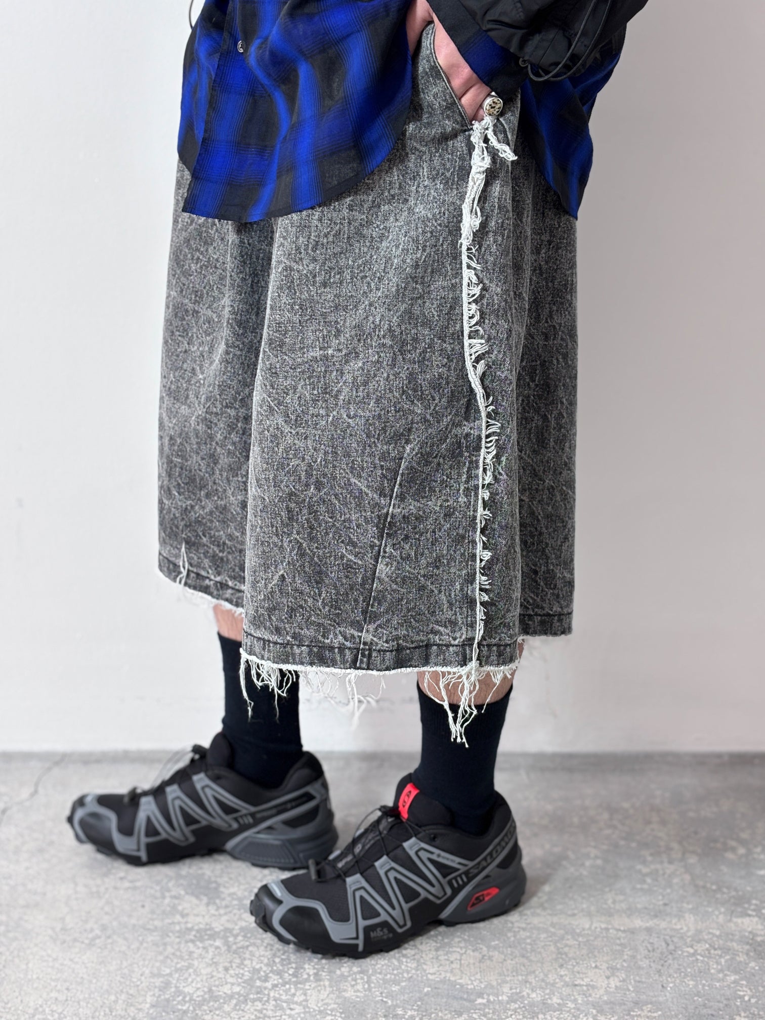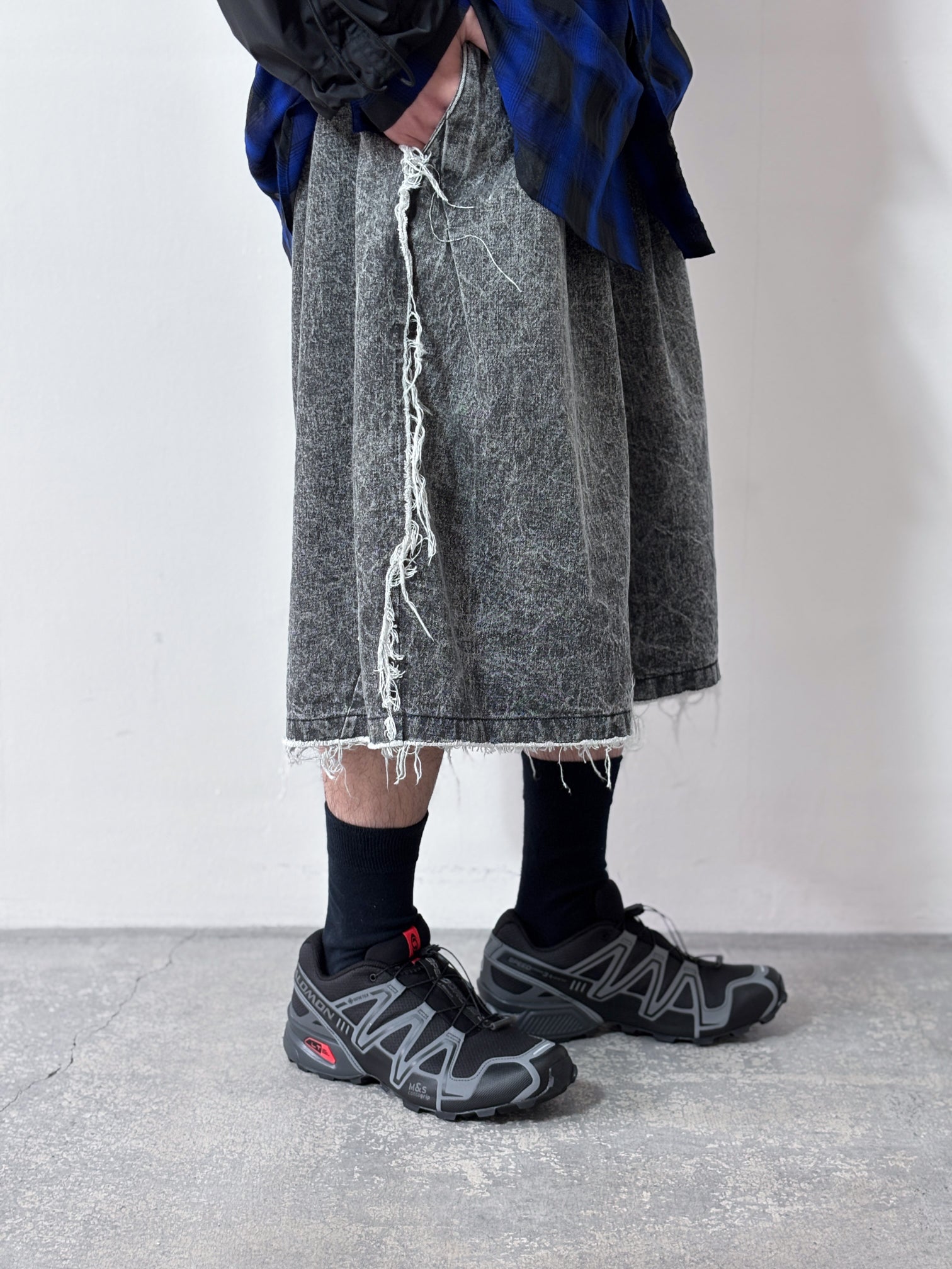 my beautiful landlet / PIGMENT PRINT WASHED DENIM SHORTS (BLACK)