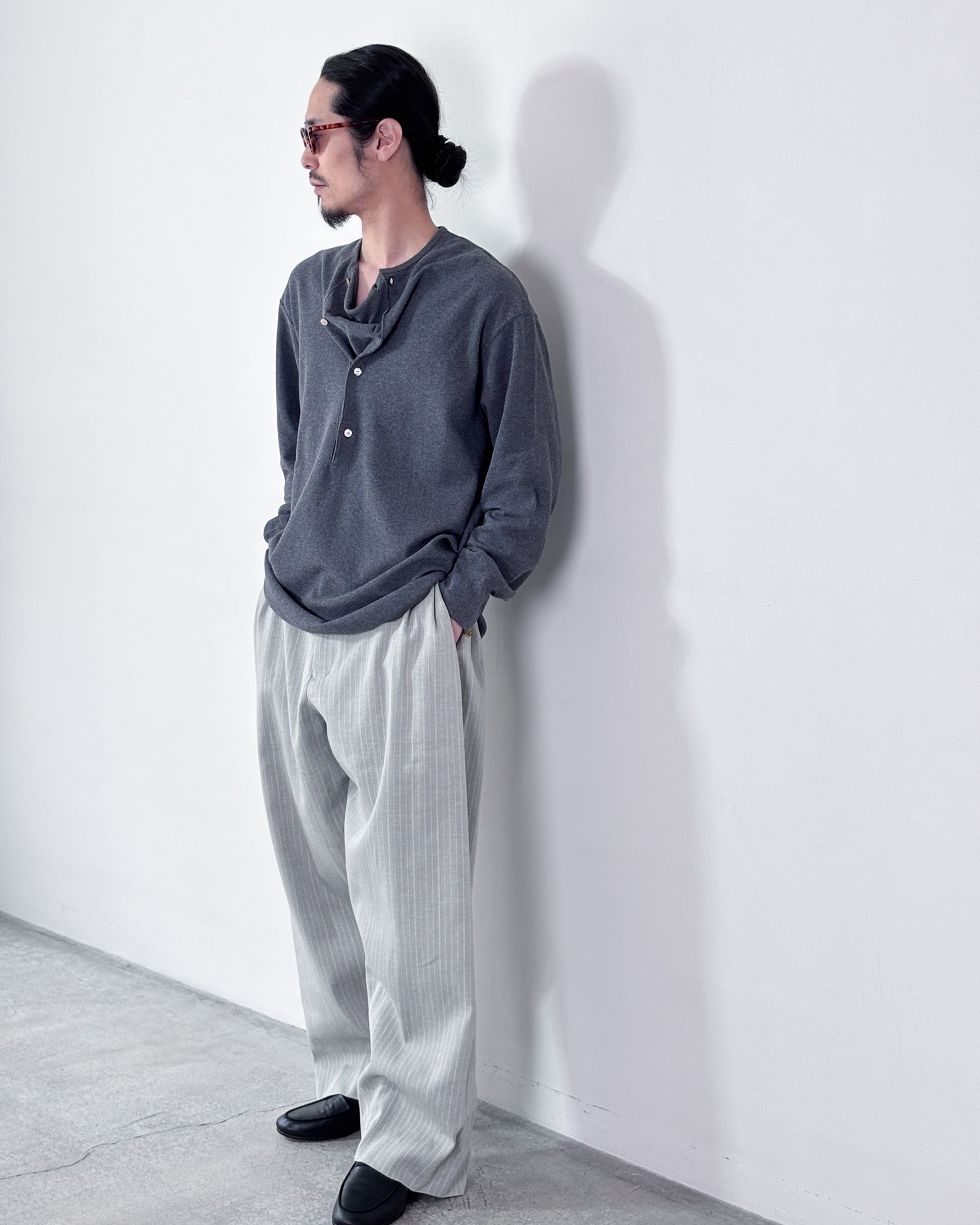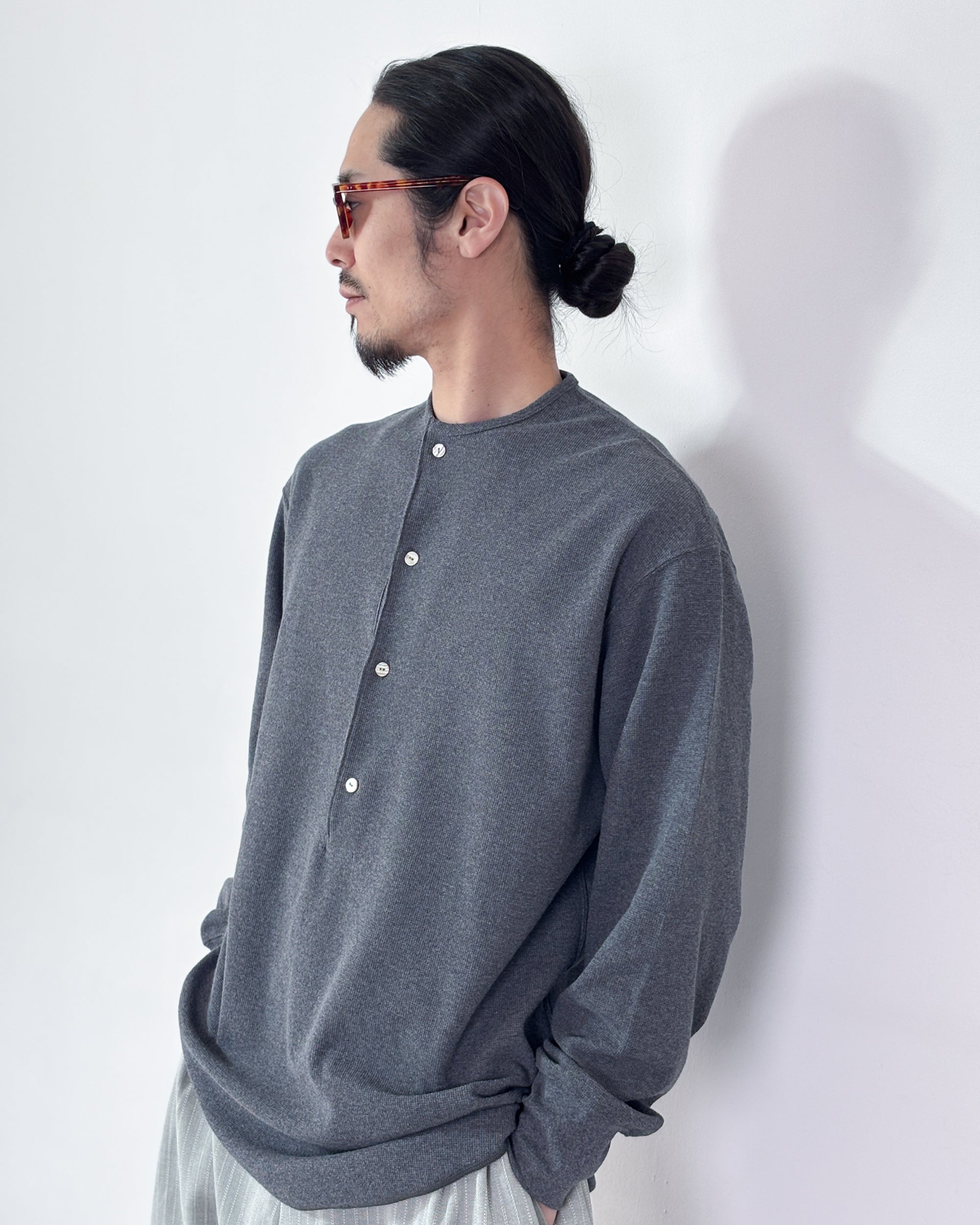 【4月18日(土)12:00販売開始】SOSHIOTSUKI / DRAPED PLACKET THERMAL TEE (CHARCOAL GREY)
