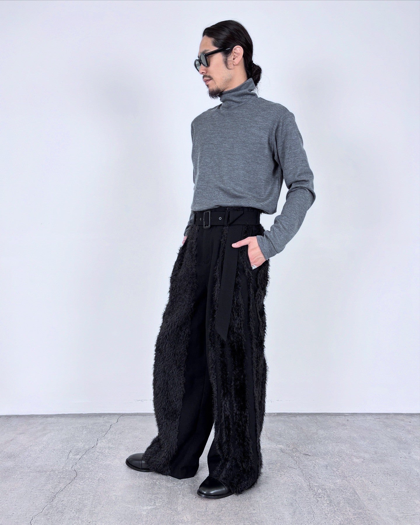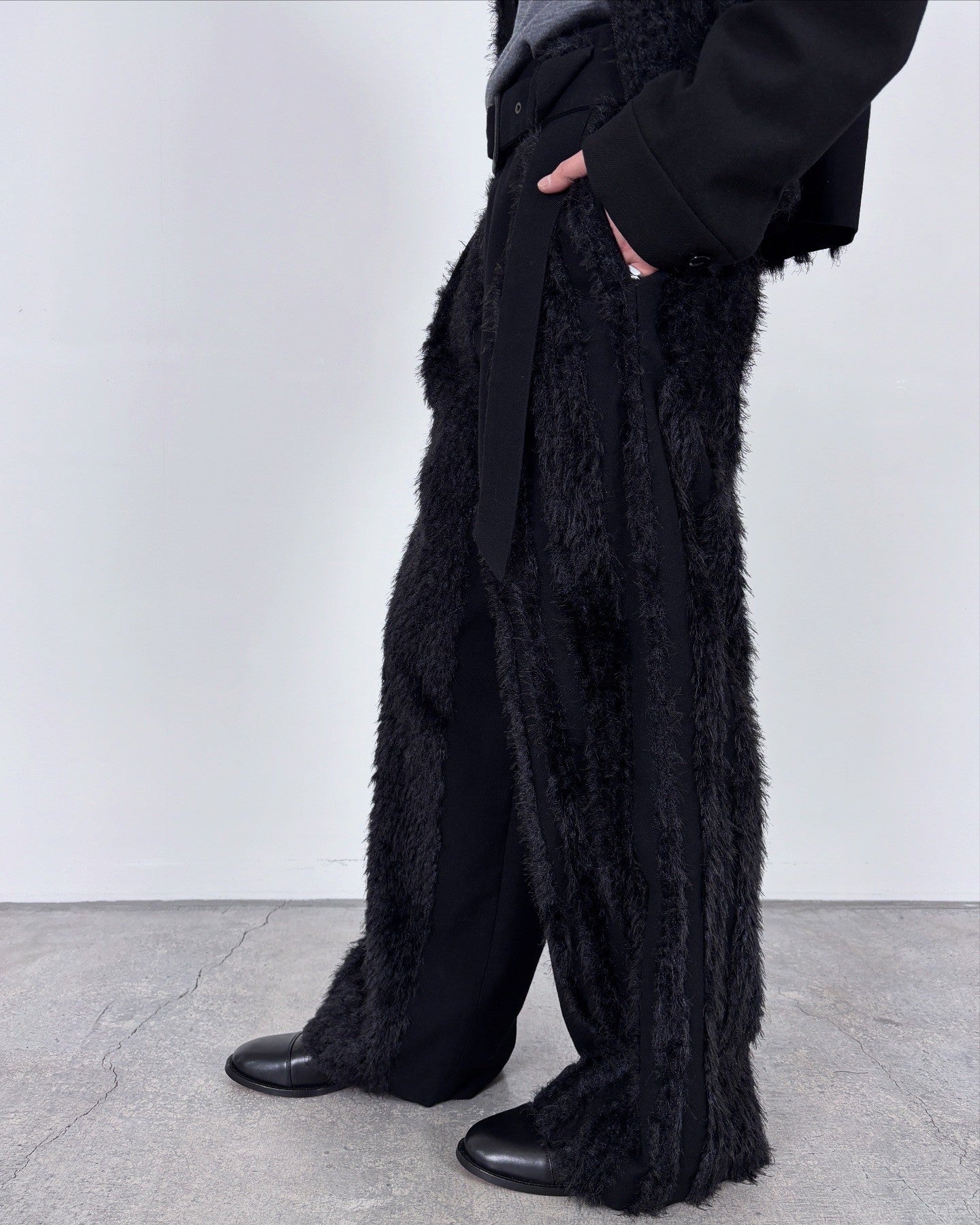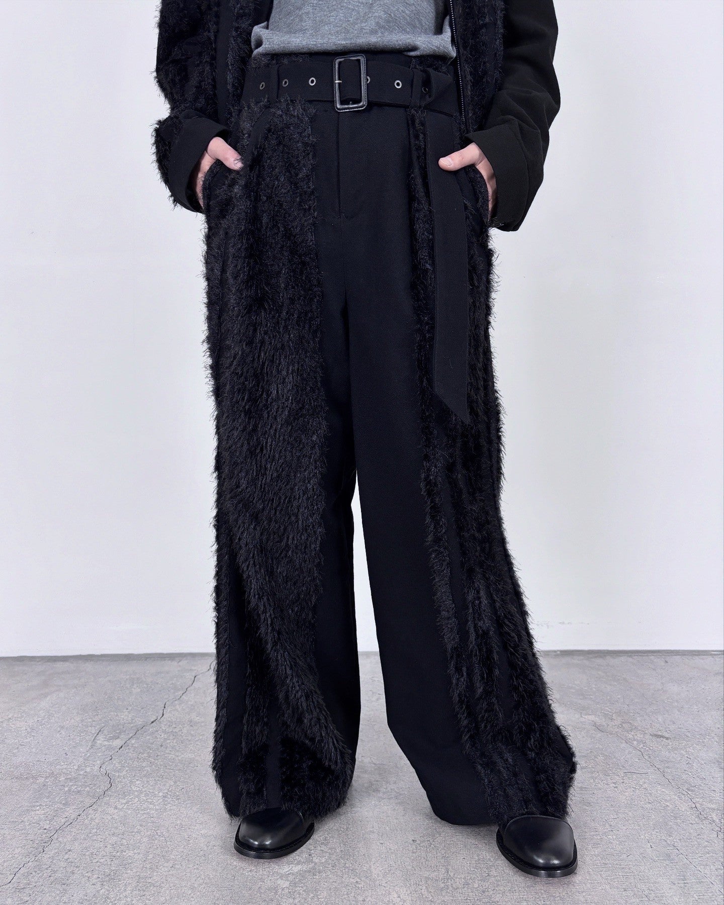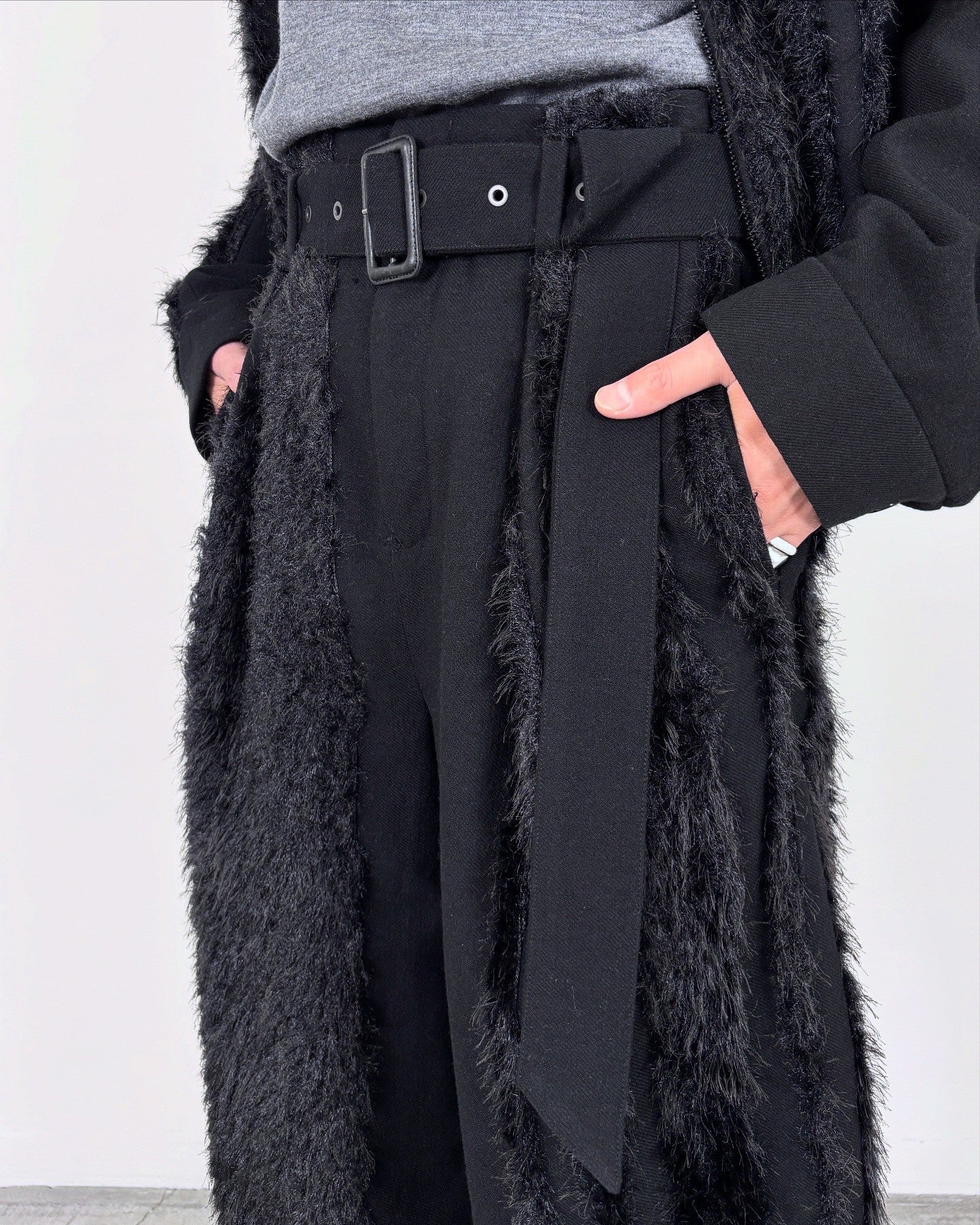 TAAKK / FUR TWEED BELT PANTS (BLACK)