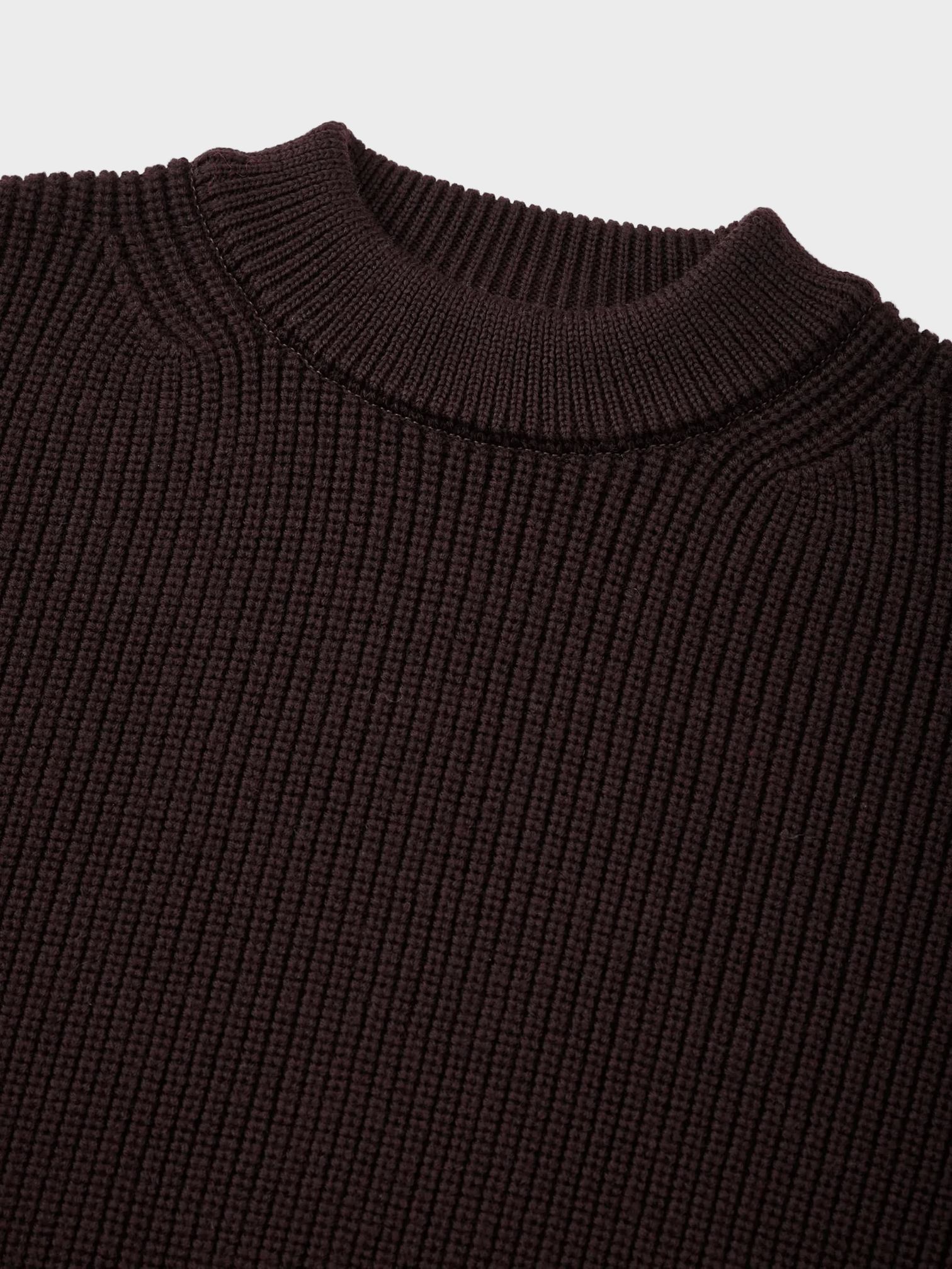 無駄を削ぎ落としたデザインと、安心感のある肉厚な畦編み(リブ編み)で仕立てました。
