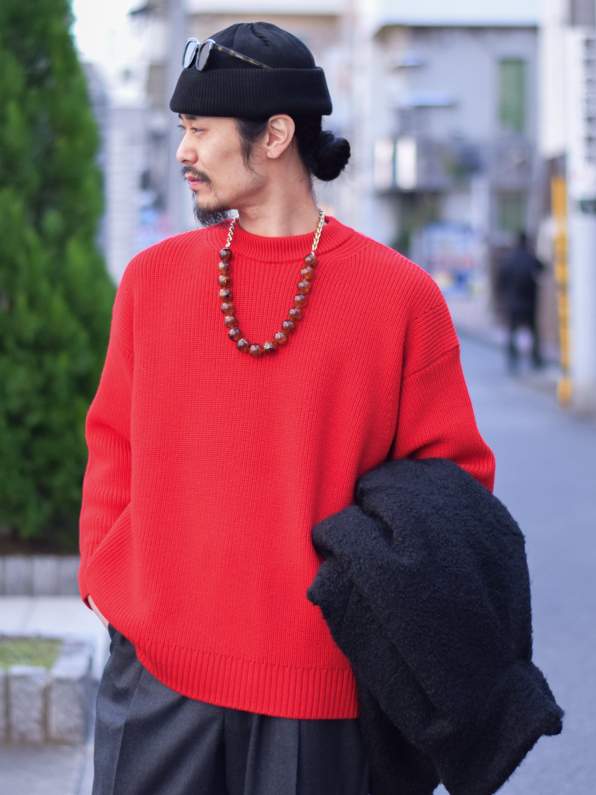 従来よりもさらに編み目を追求し、目の詰まった6PLY仕様にし、アウターとしても活躍できるほどの高い保温性を備えながら、締め付け感のないオーバーサイズシルエットで、着心地はあくまでリラックス感のある一着。