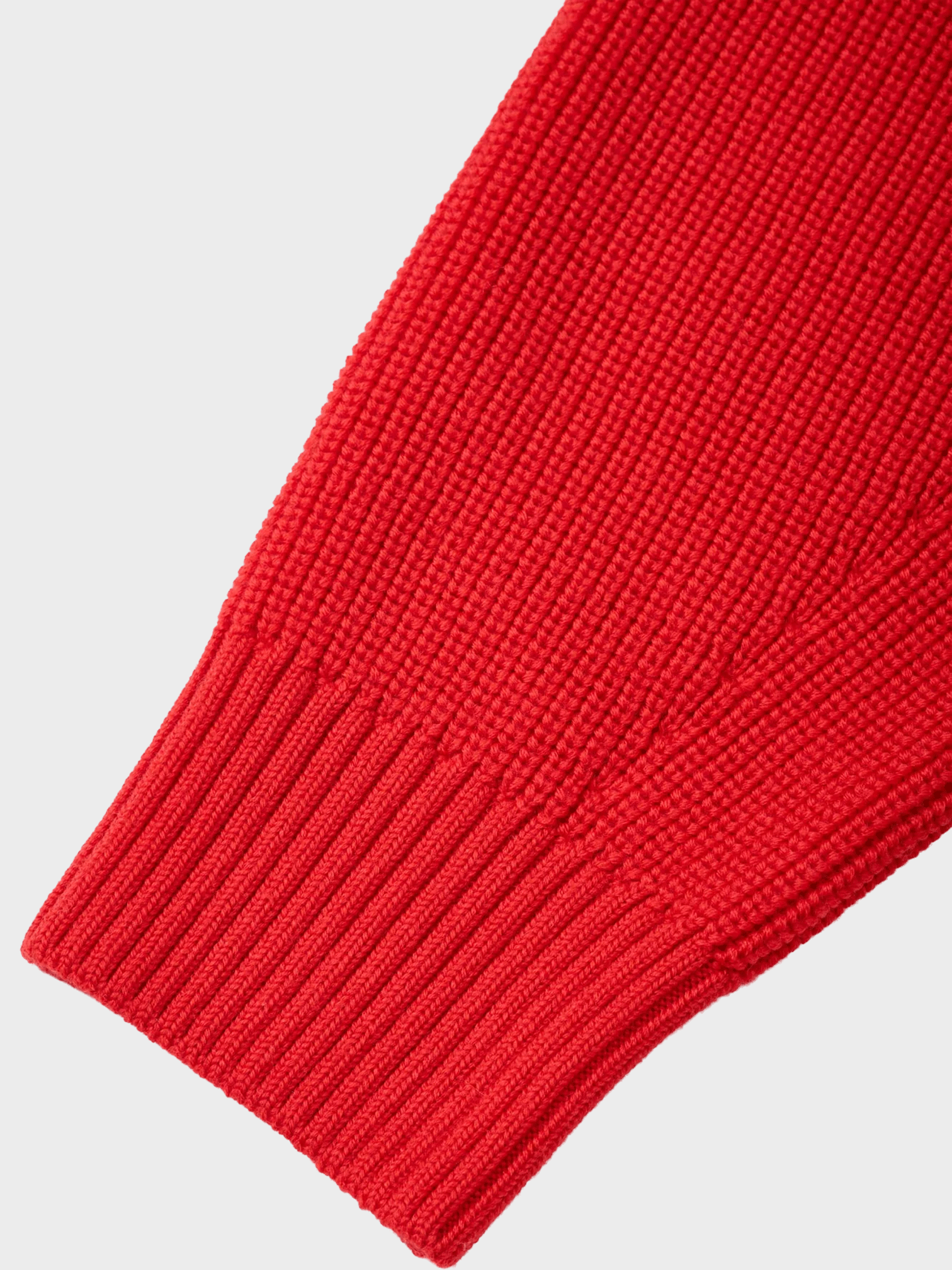 無駄を削ぎ落としたデザインと、安心感のある肉厚な畦編み(リブ編み)で仕立てました。