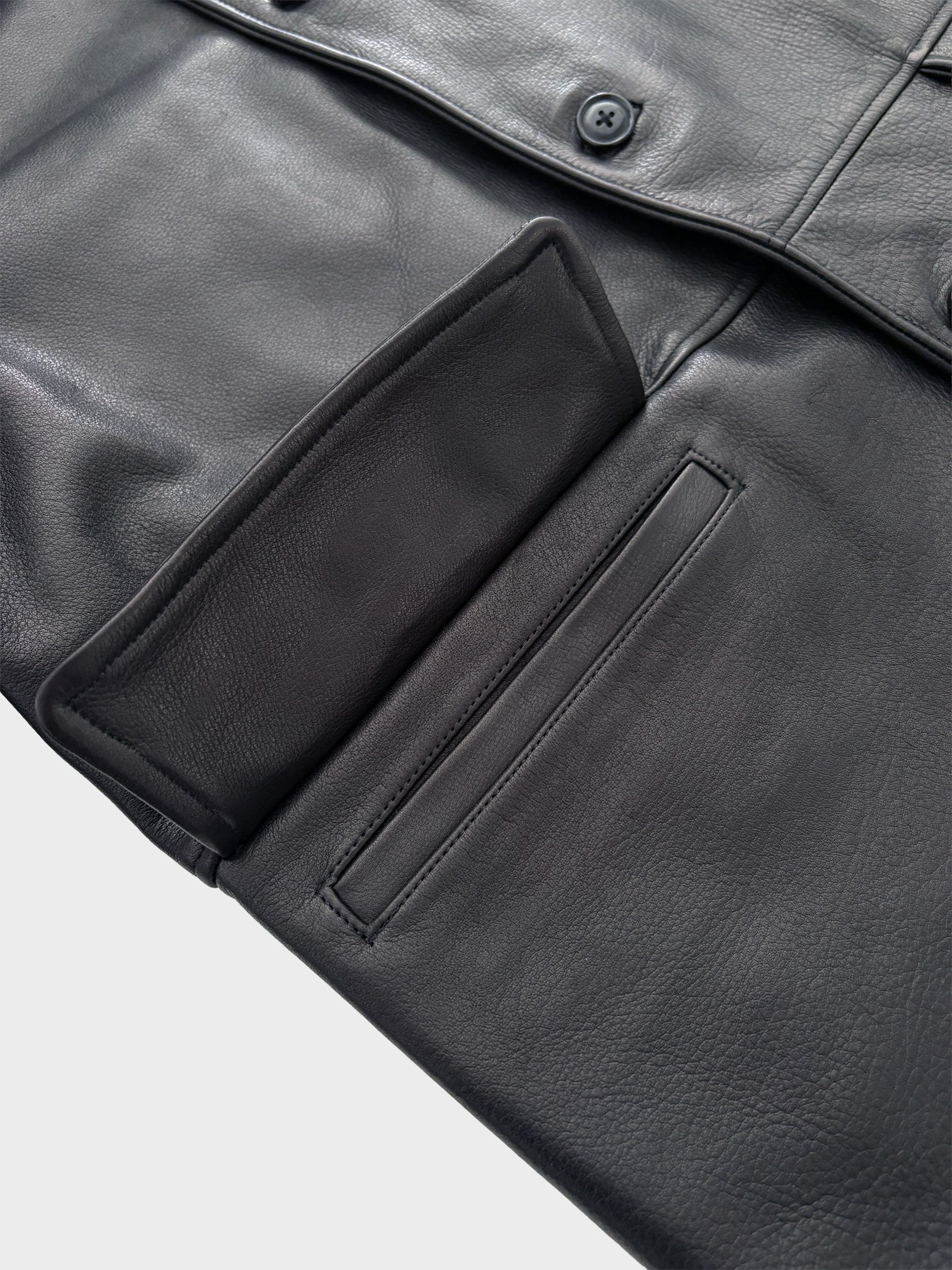 【2月14日(土)12:00販売開始】URU / LEATHER COVERALL JACKET (BLACK)