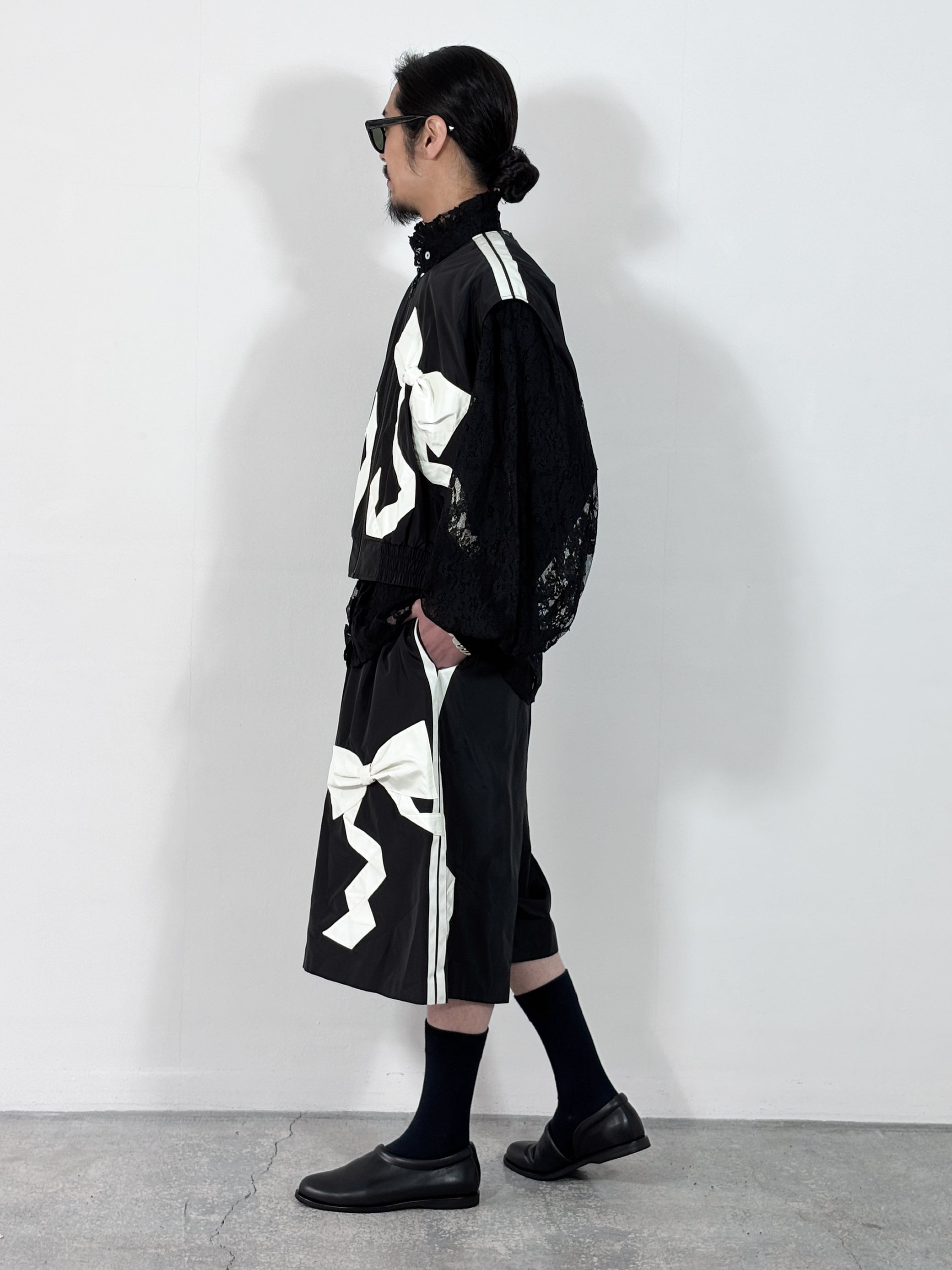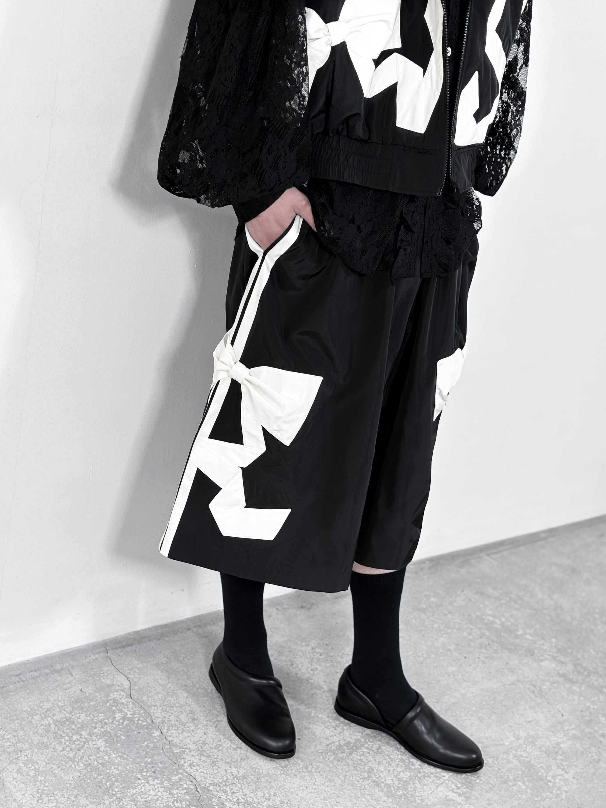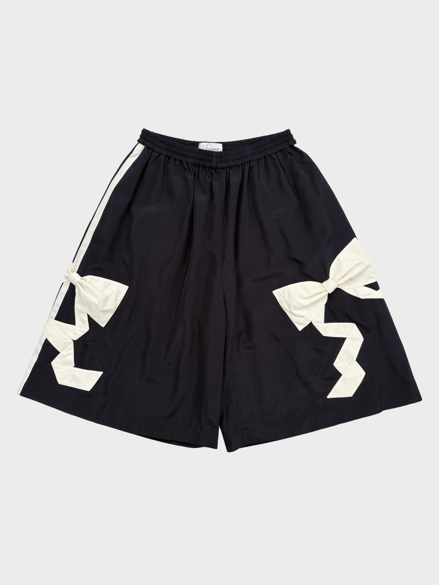 【3月20日(金)12:00販売開始】VIVIANO / RIBBON DETAIL SIDE LINE WIDE SHORTS (BLACK)