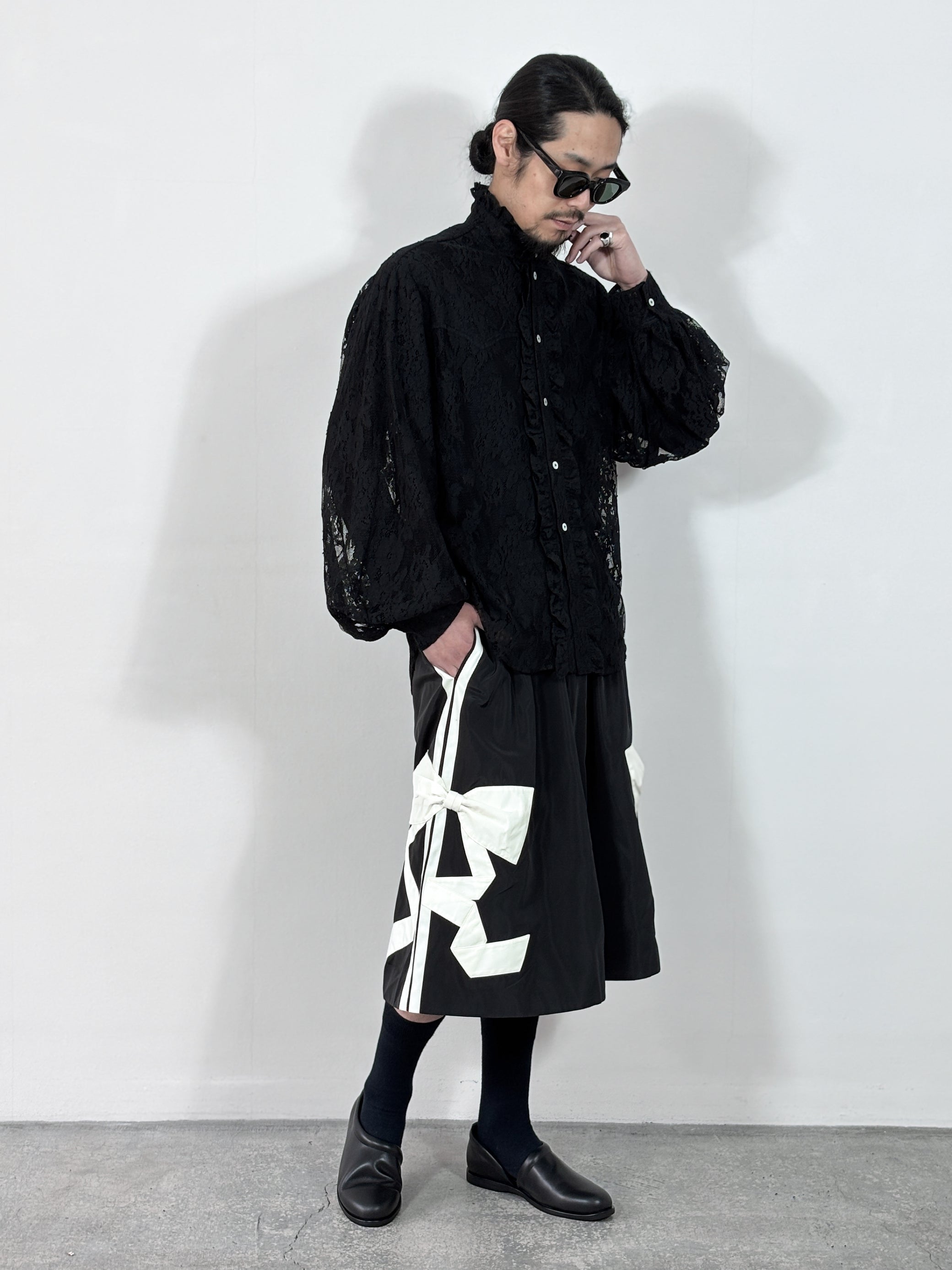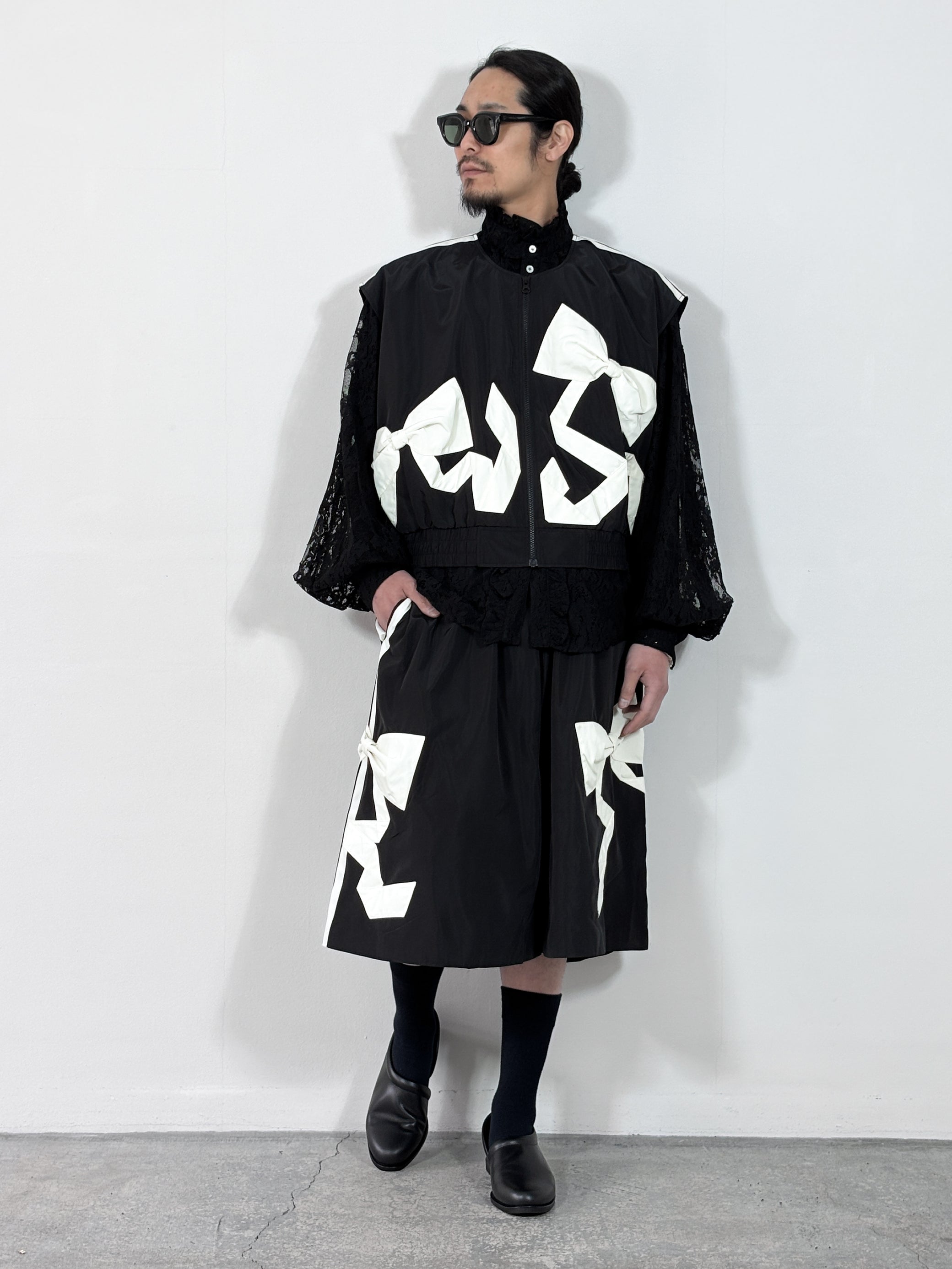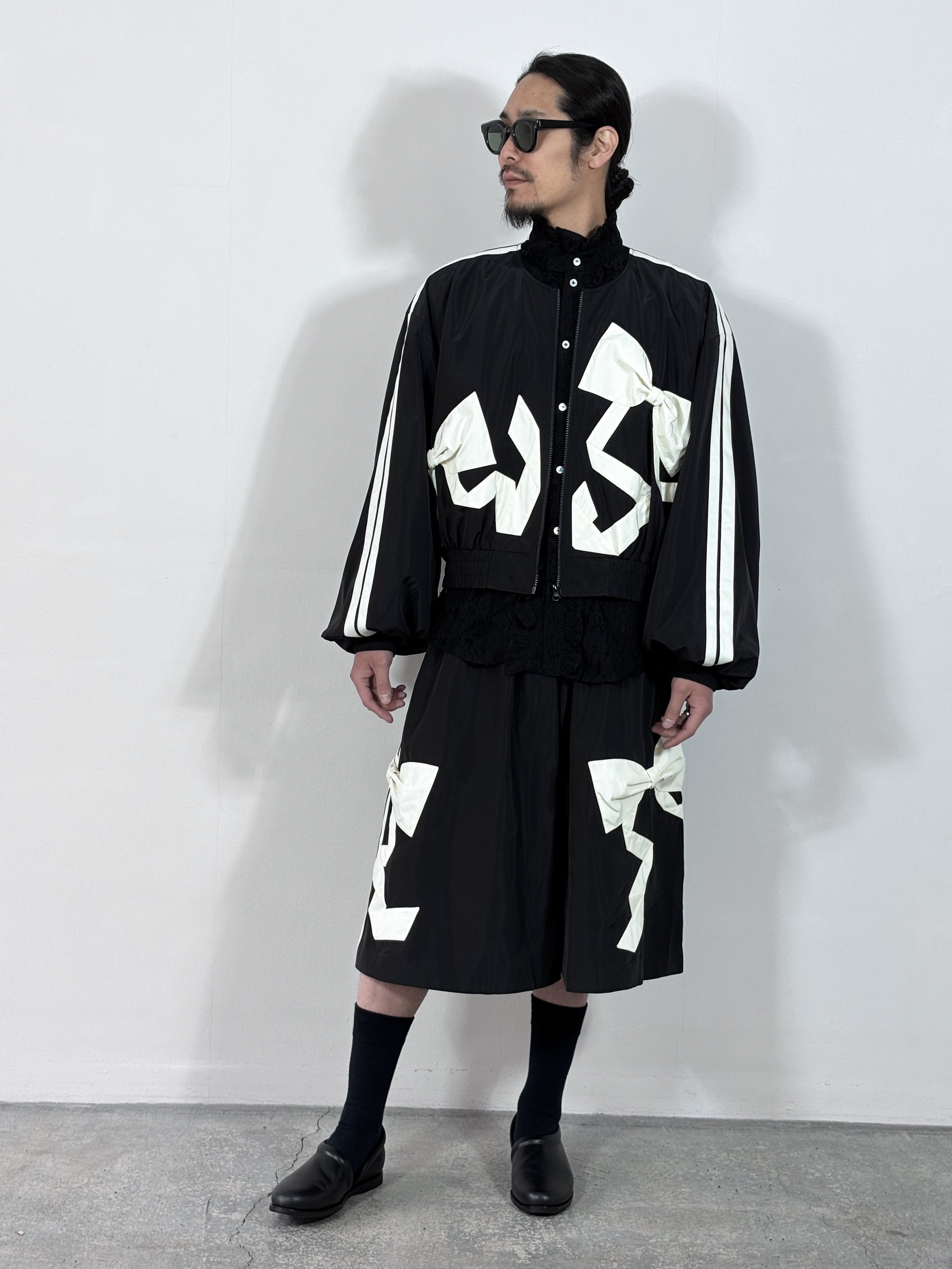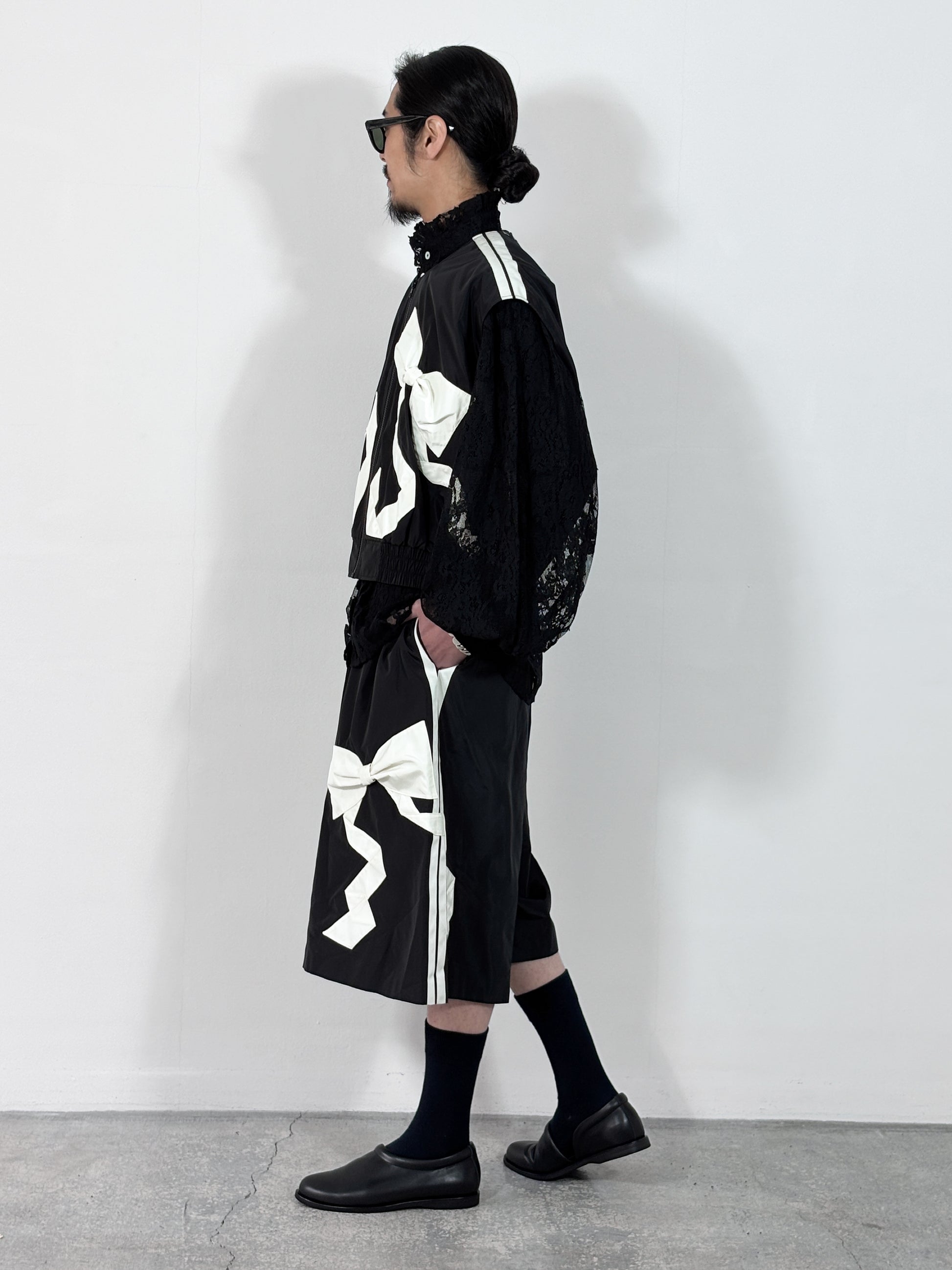 【3月20日(金)12:00販売開始】VIVIANO / RIBBON DETAIL SIDE LINE WIDE SHORTS (BLACK)