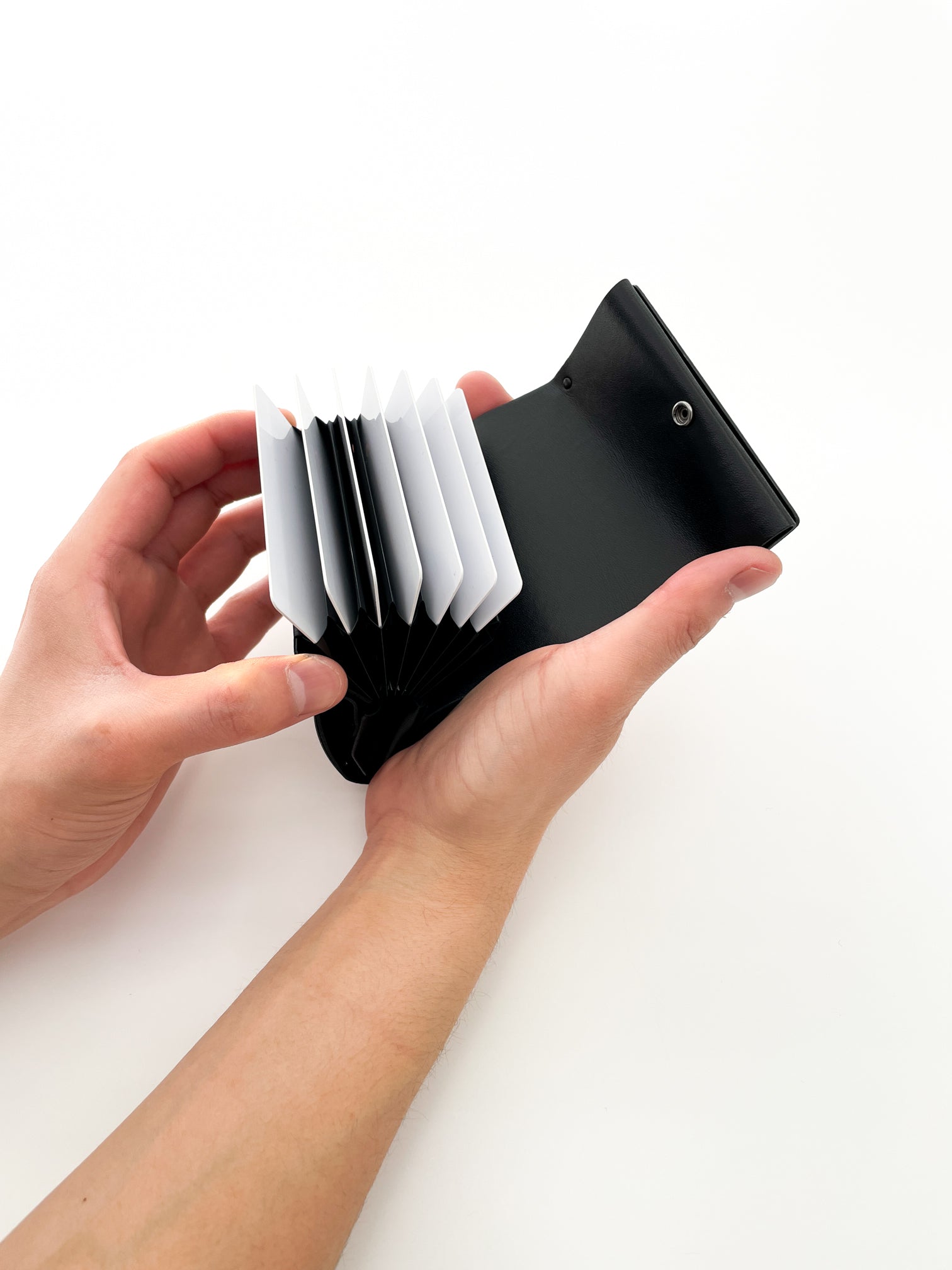 材质 高强度不锈钢 ■尺寸指南 高 9 厘米,宽 11 厘米,厚 3 厘米 最多可容纳 16 张卡片。