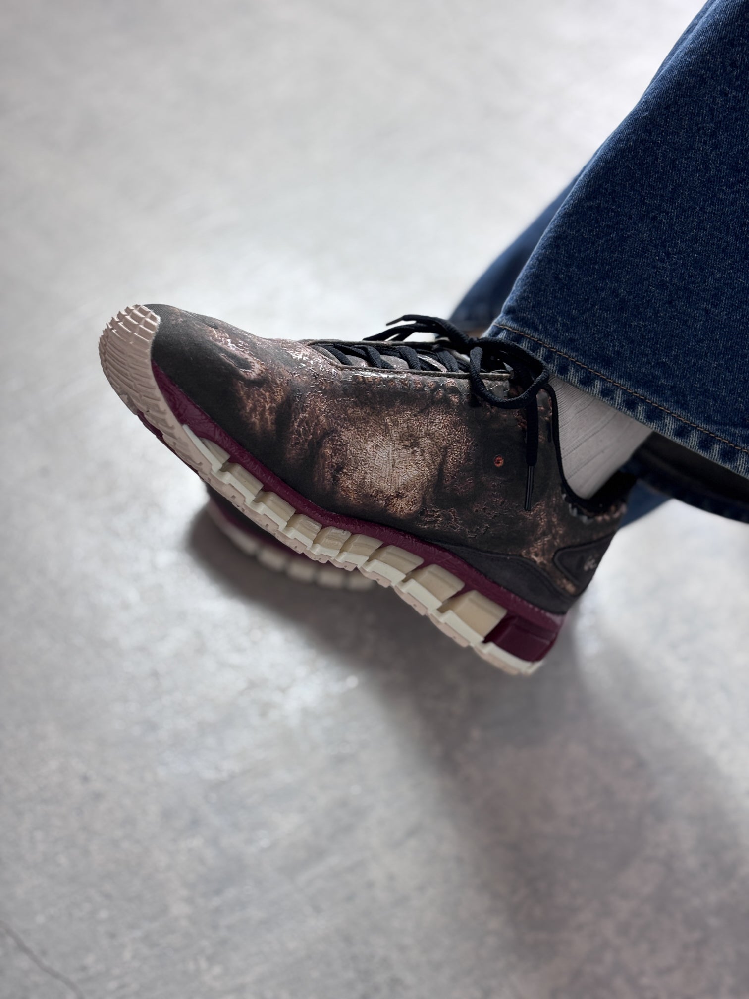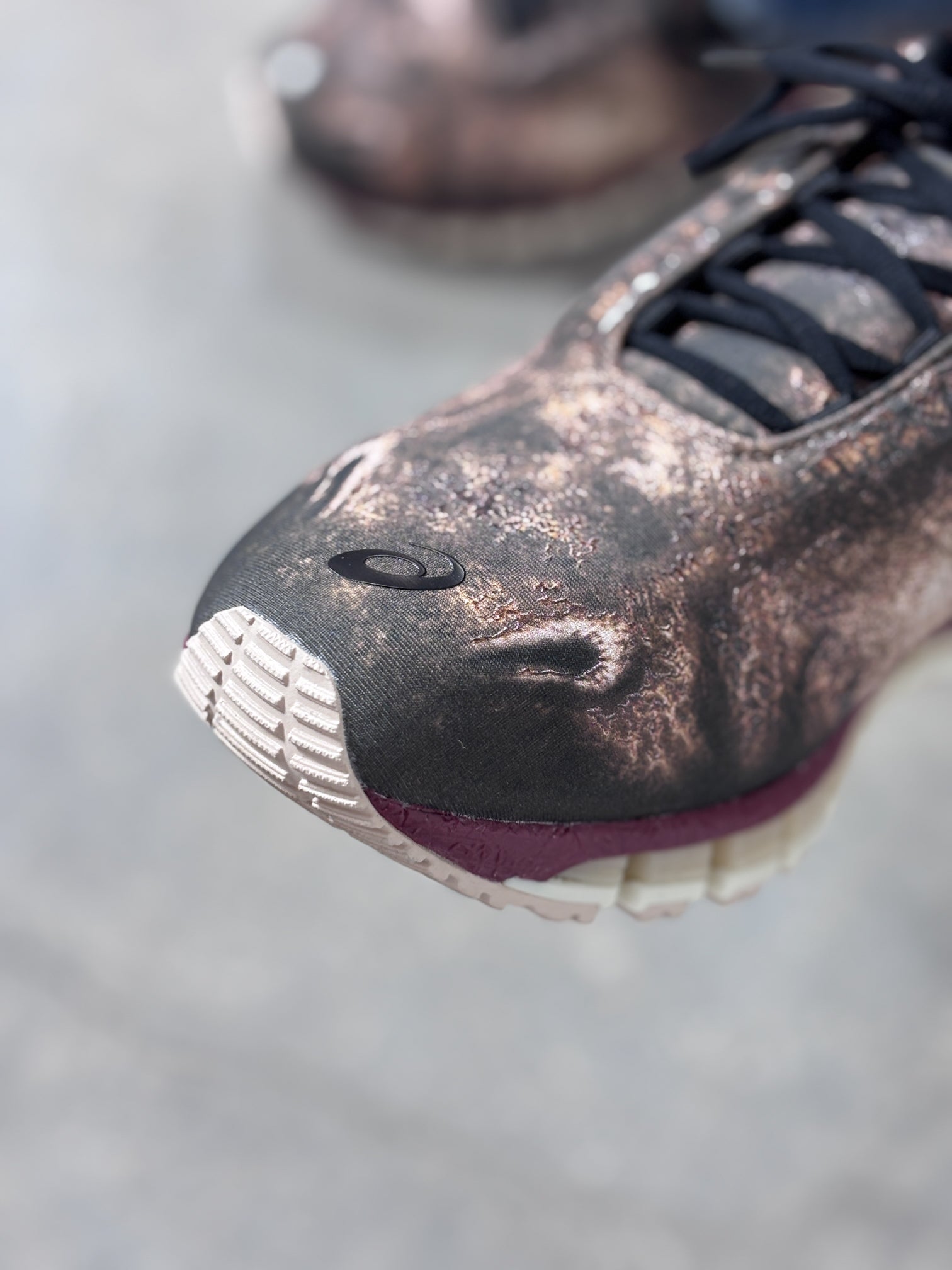 靴のアイレットとつま先部分に凹凸のある詳細が施され、